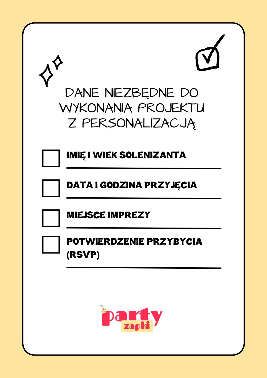 checklista dane do personalizacji zaproszenia