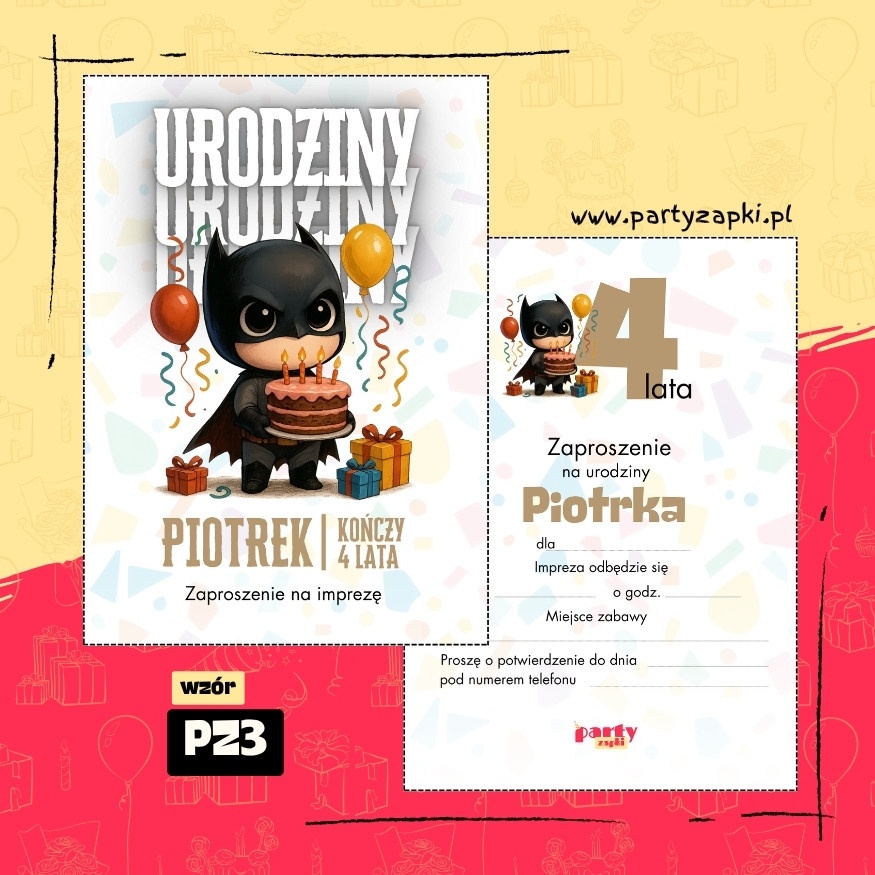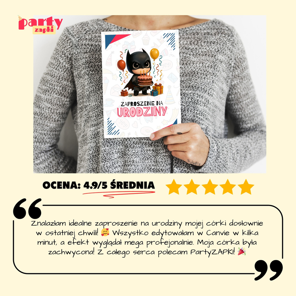 🛒 Zamów zaproszenie na urodziny do druku z Batmanem od PartyZAPKI już teraz i spraw, by Twoje dziecko poczuło się wyjątkowo na własnym przyjęciu.