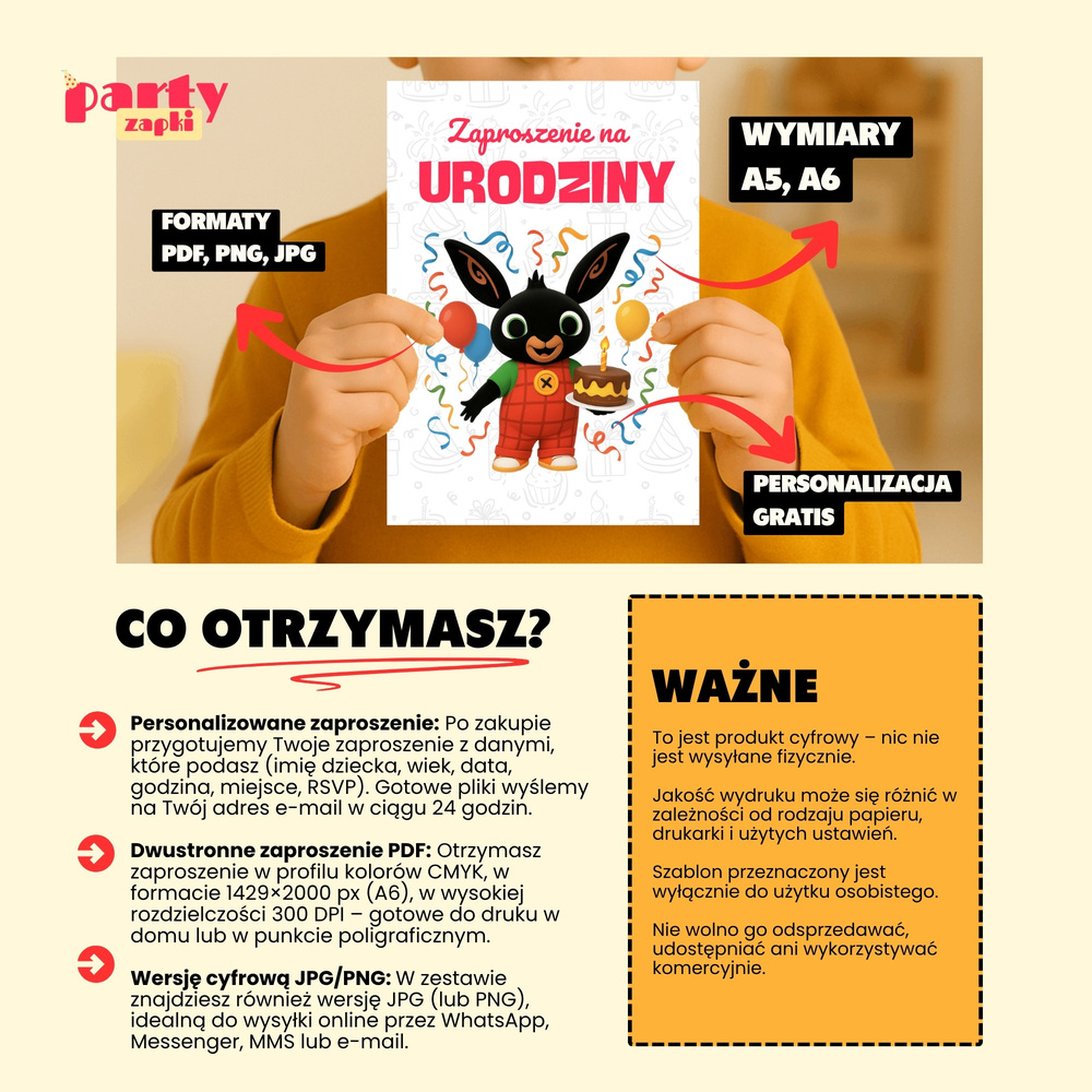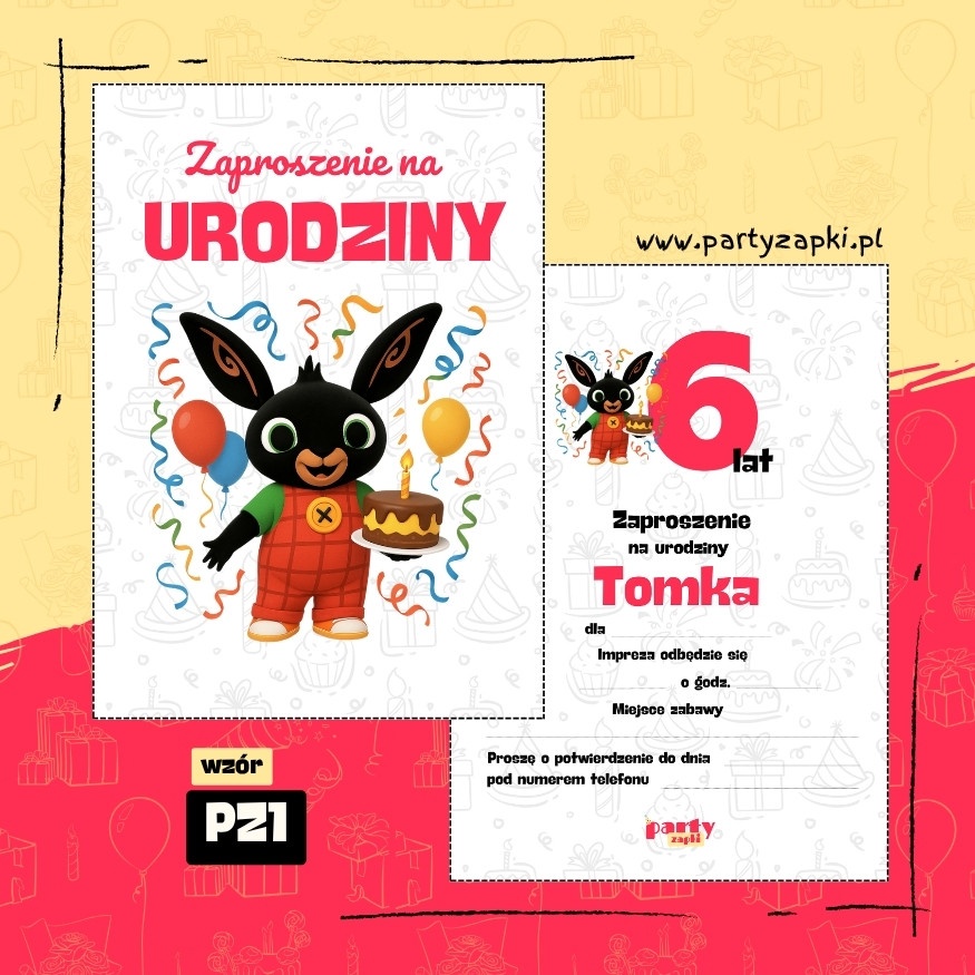 Zaproszenie urodzinowe Bing – dla maluchów, które kochają przygody uroczego króliczka