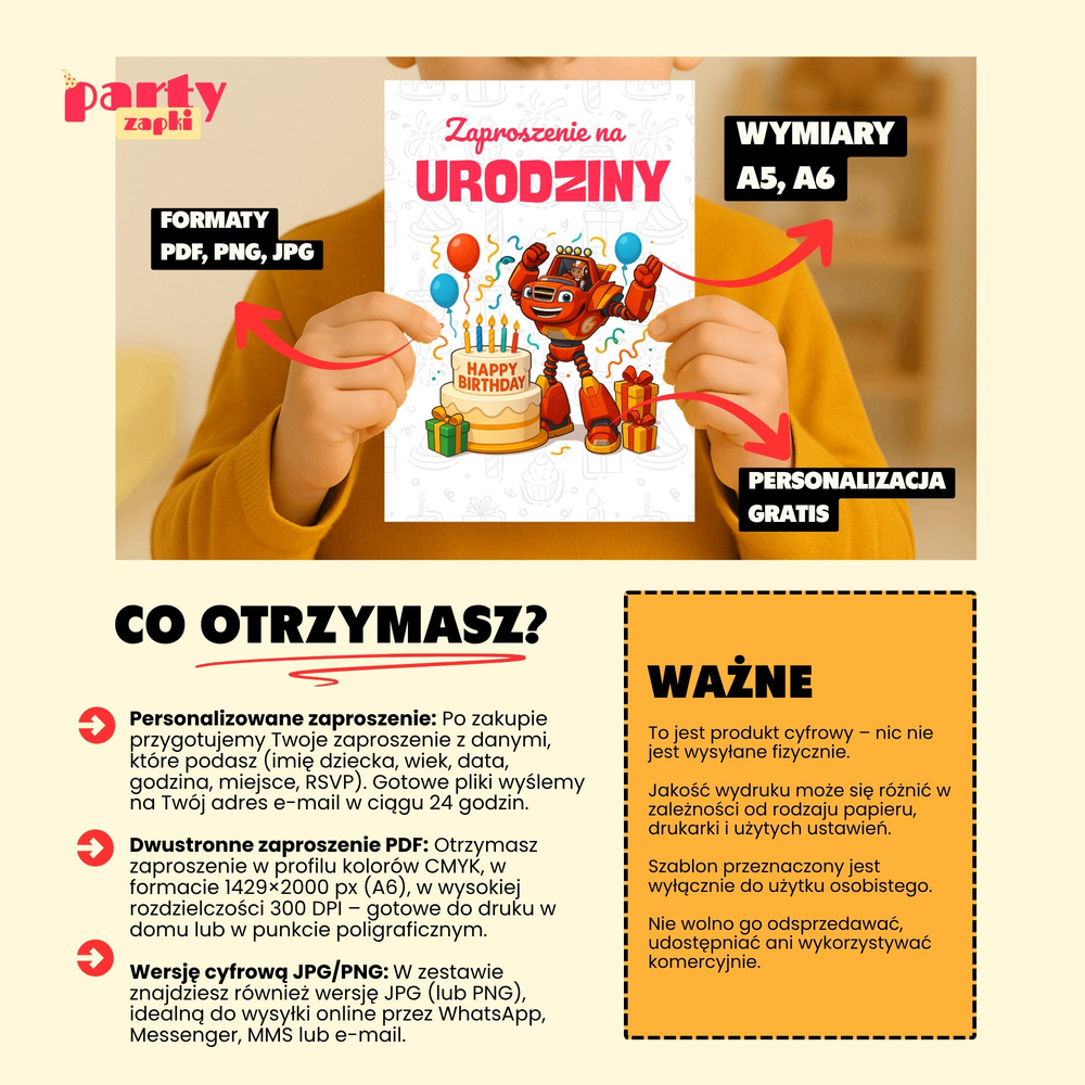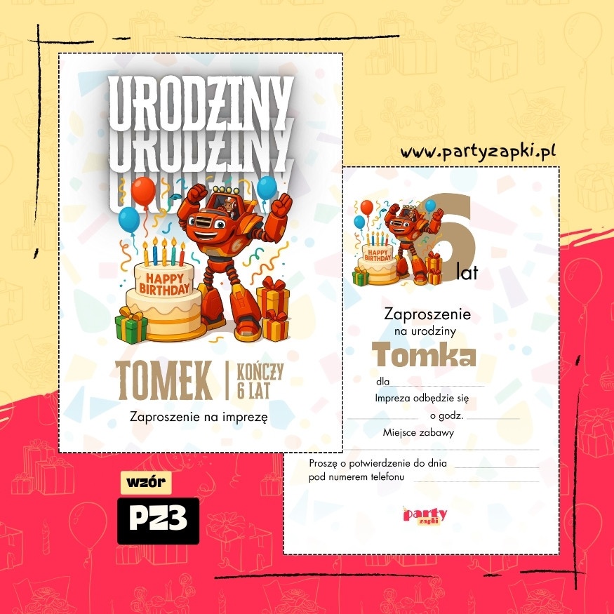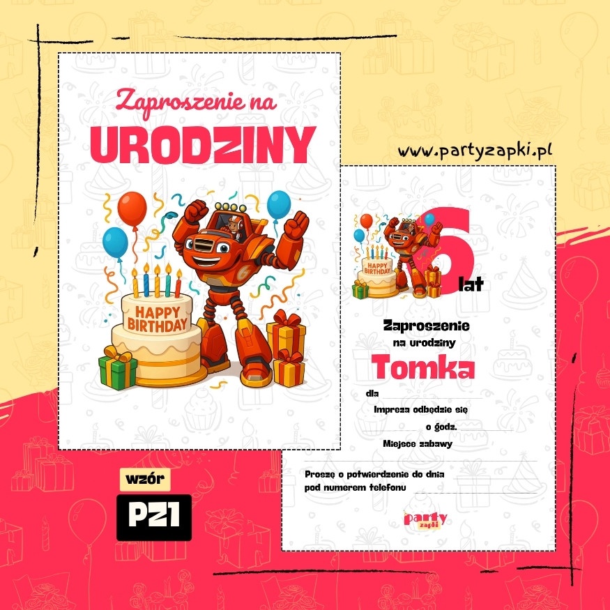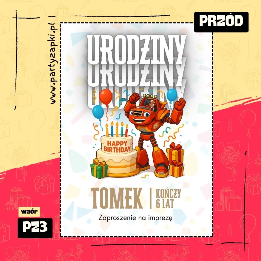 🛒 Zamów zaproszenie na urodziny do druku z Blaze’em od PartyZAPKI już teraz i spraw, by Twoje dziecko poczuło się wyjątkowo na własnym przyjęciu.