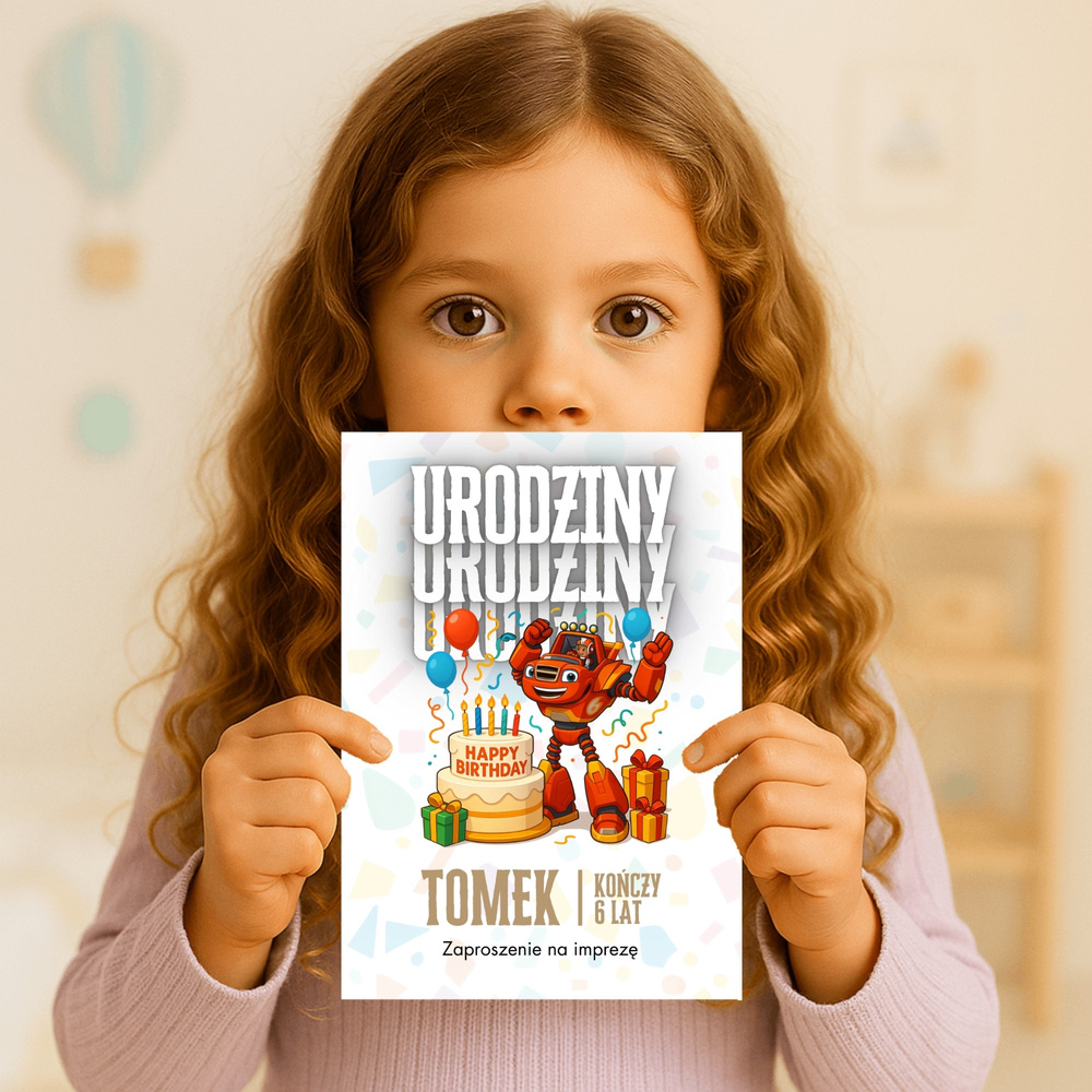 Jeśli Twoje dziecko z radością śledzi każdy odcinek bajki Blaze i Mega Maszyny, a w jego zabawkach dominują auta i potężne koła, to to zaproszenie sprawdzi się idealnie.