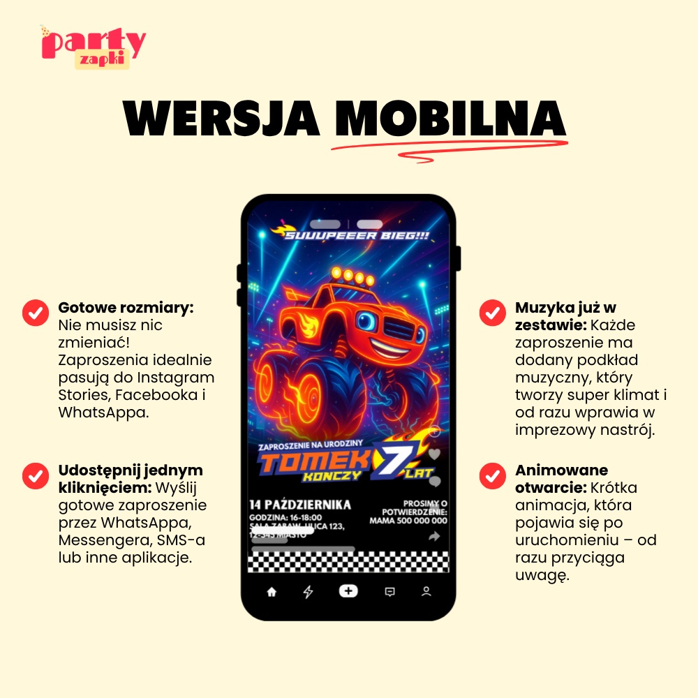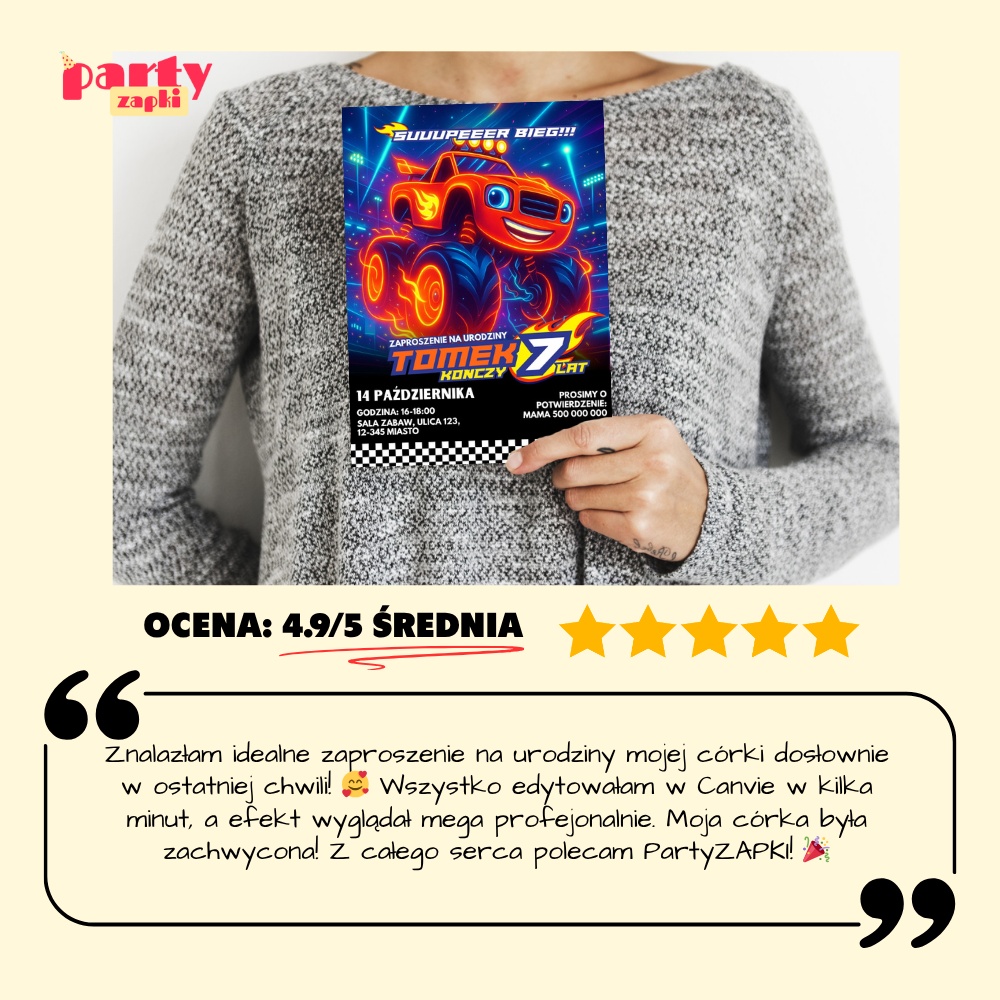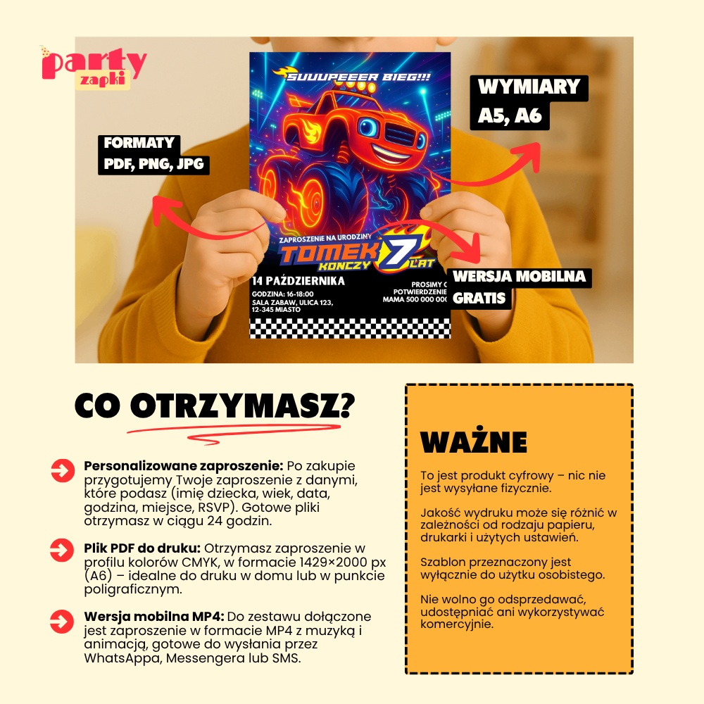 🛒 Zamów zaproszenie na urodziny do druku Blaze i Mega Maszyny od PartyZAPKI już teraz i spraw, by Twoje dziecko poczuło się wyjątkowo na własnym przyjęciu.