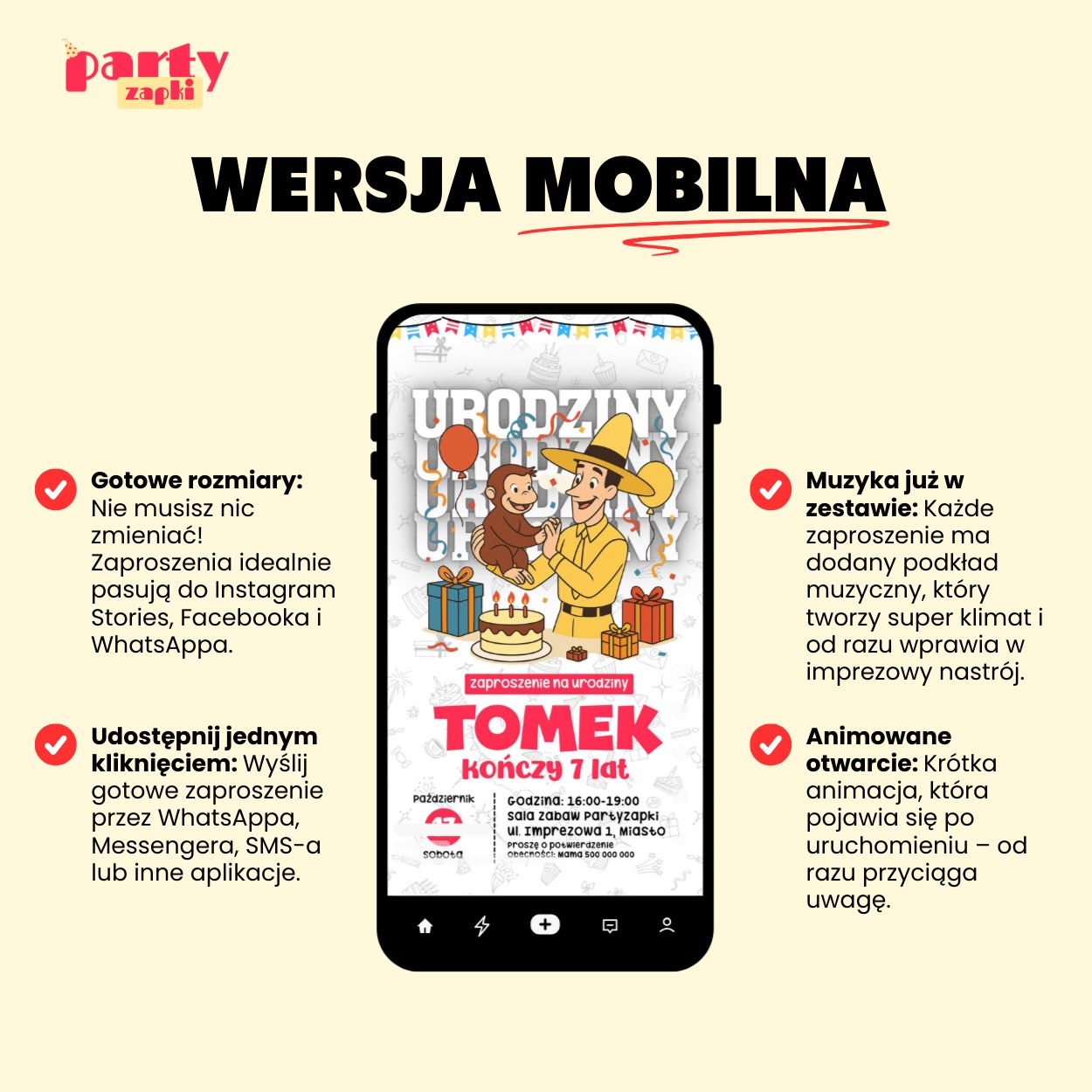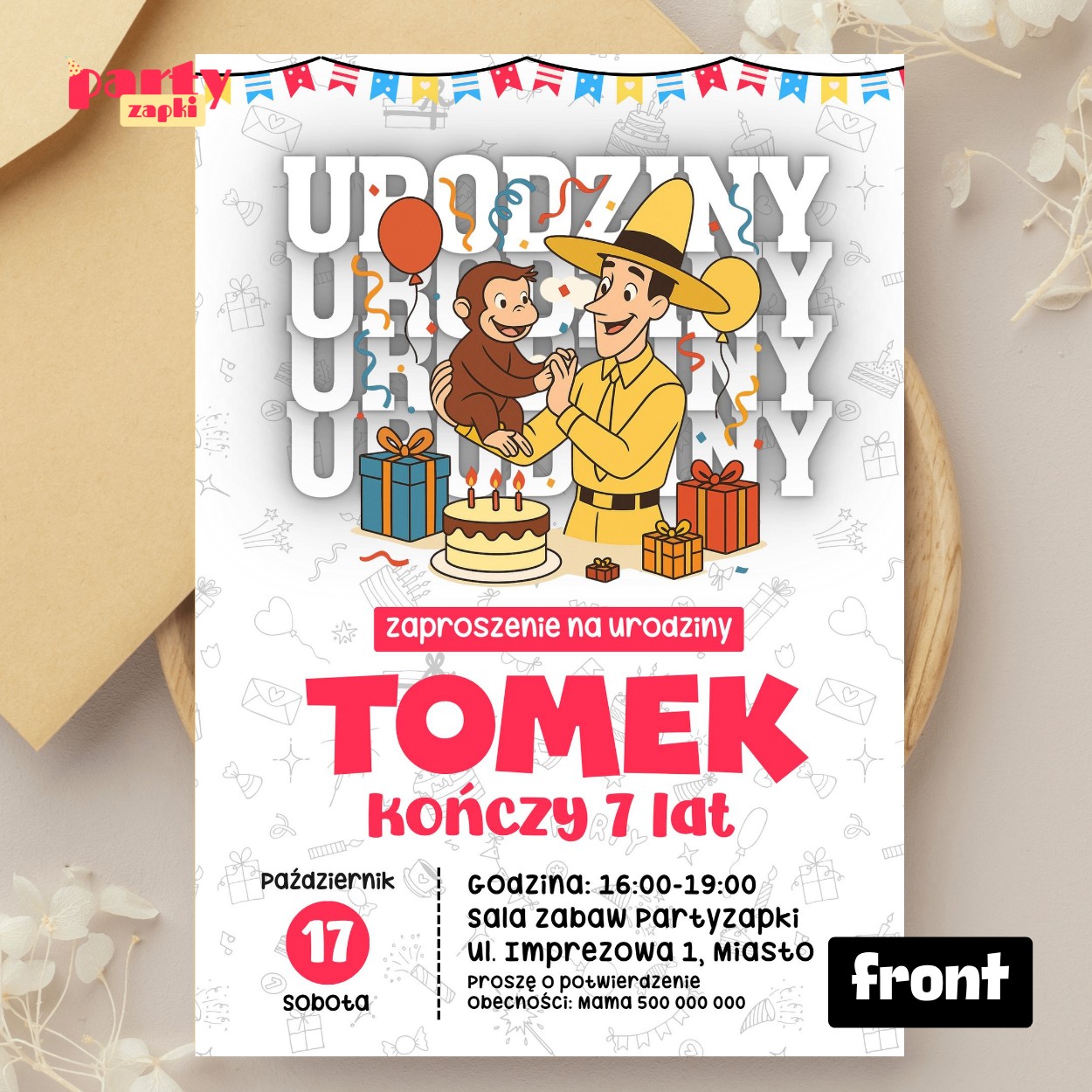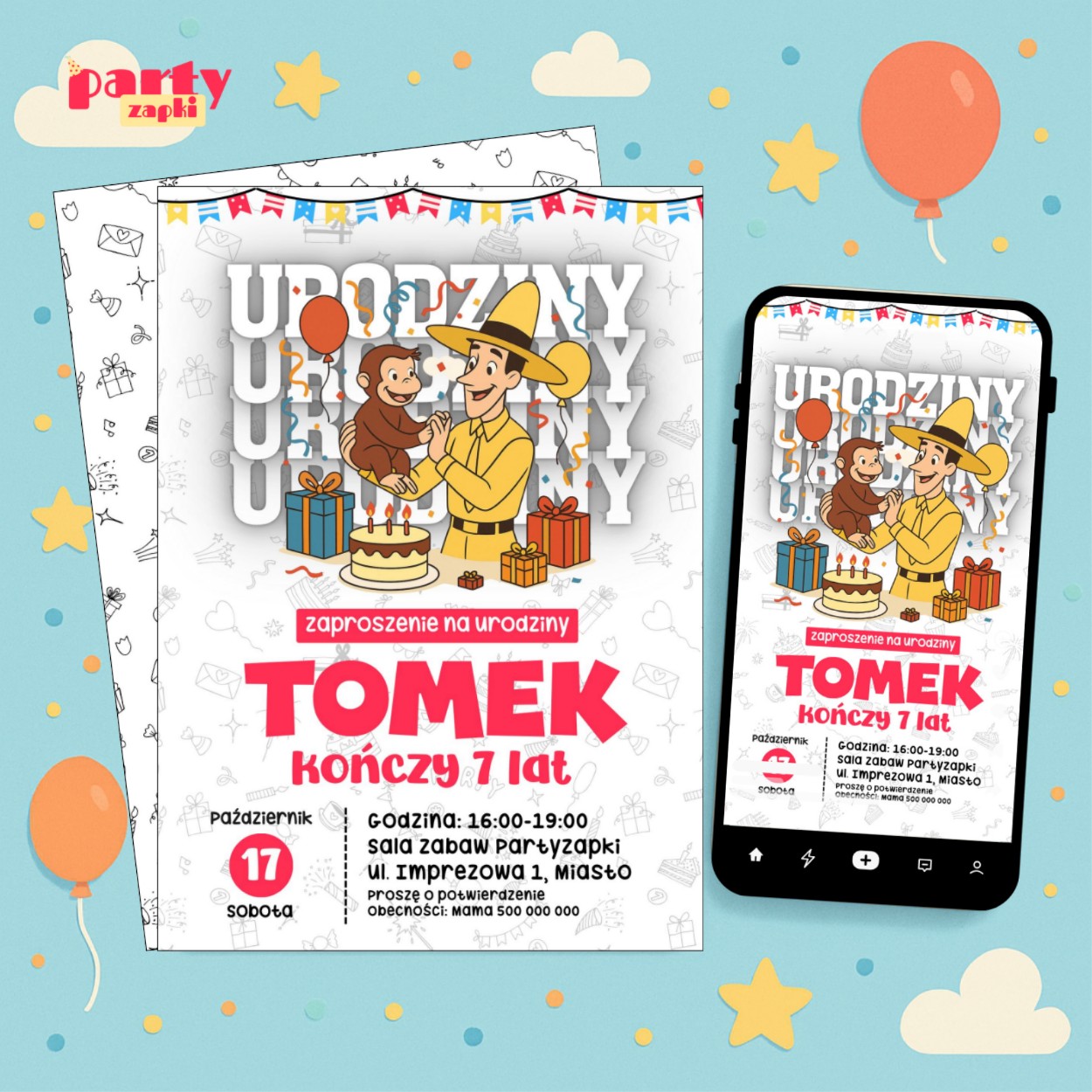 Zaproszenie na urodziny z motywem Ciekawskiego George’a to fantastyczny początek wielkiej przygody, która zachwyci wszystkich zaproszonych gości.
