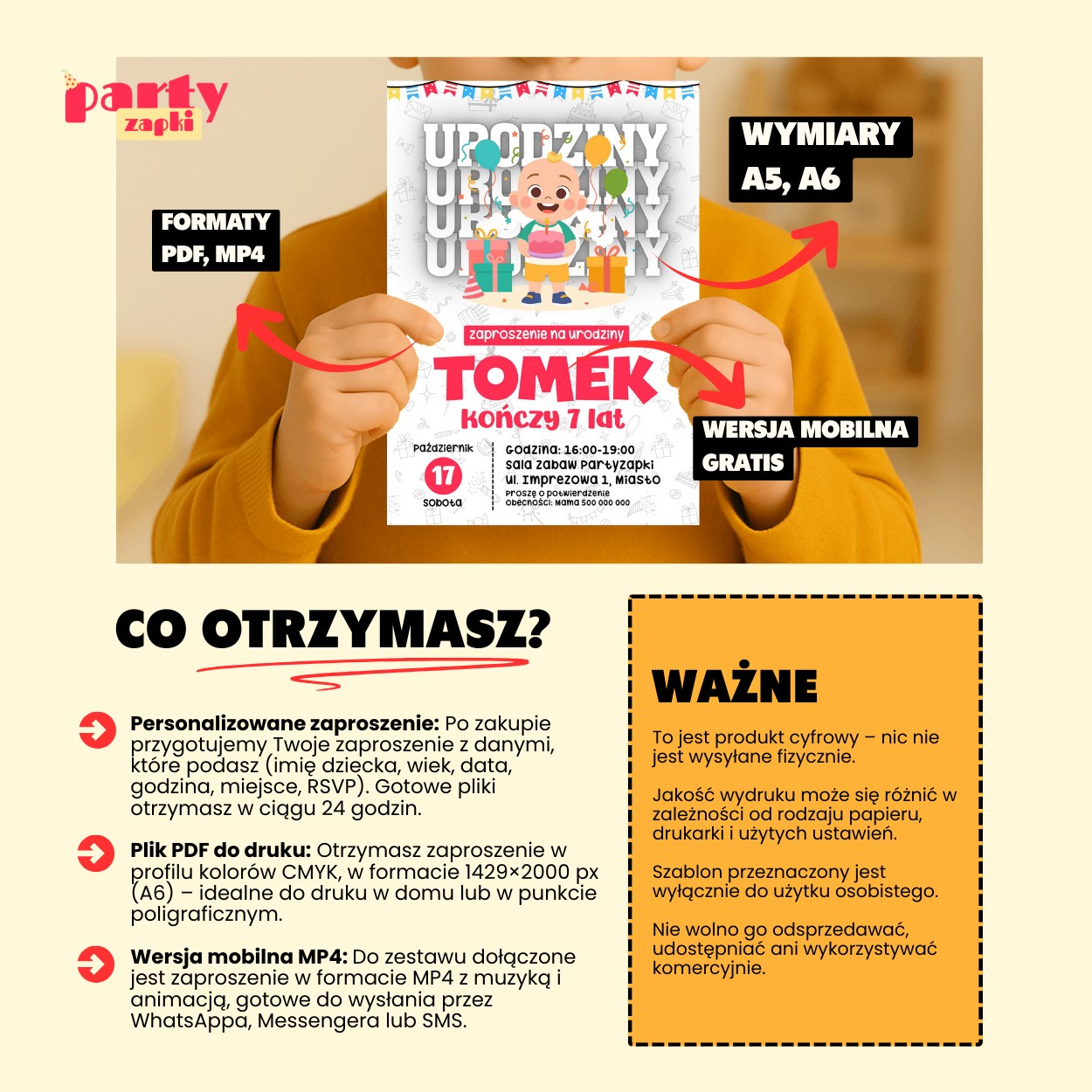 🛒 Zamów zaproszenie na urodziny od PartyZAPKI już teraz i spraw, by Twoje dziecko poczuło się wyjątkowo na własnym przyjęciu.