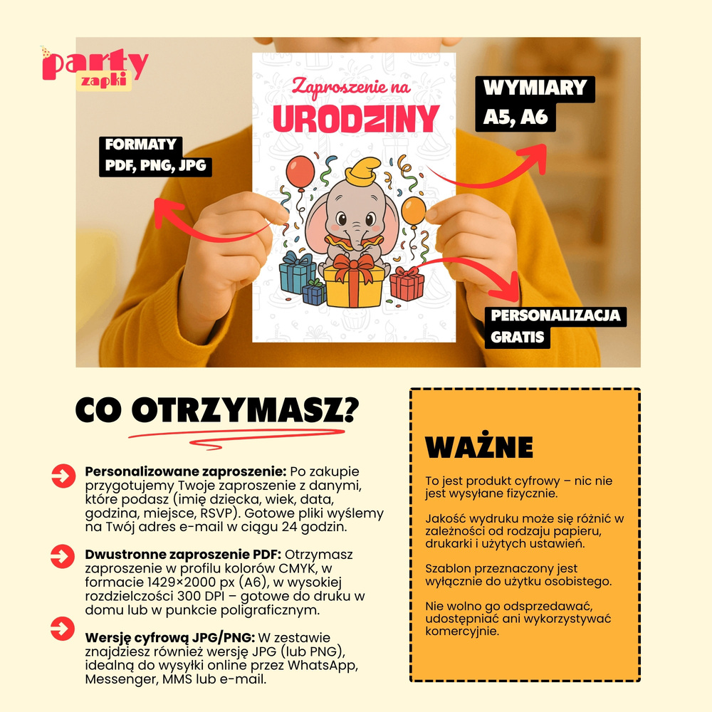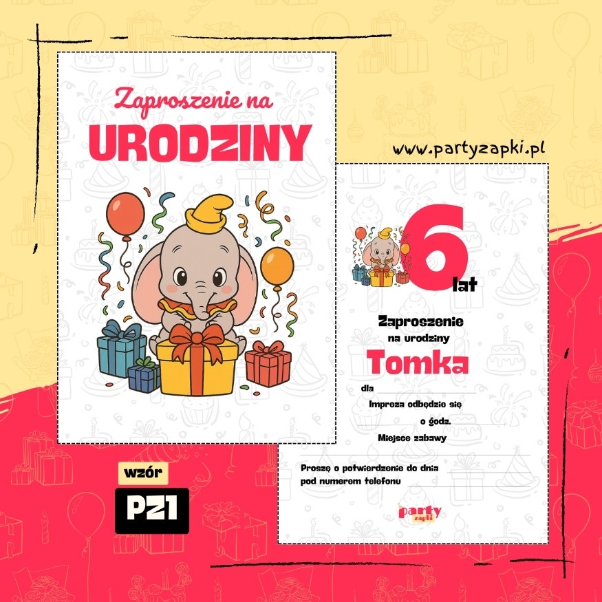🛒 Zamów zaproszenie na urodziny do druku z Dumbo od PartyZAPKI już teraz i spraw, by Twoje dziecko poczuło się wyjątkowo na własnym przyjęciu.