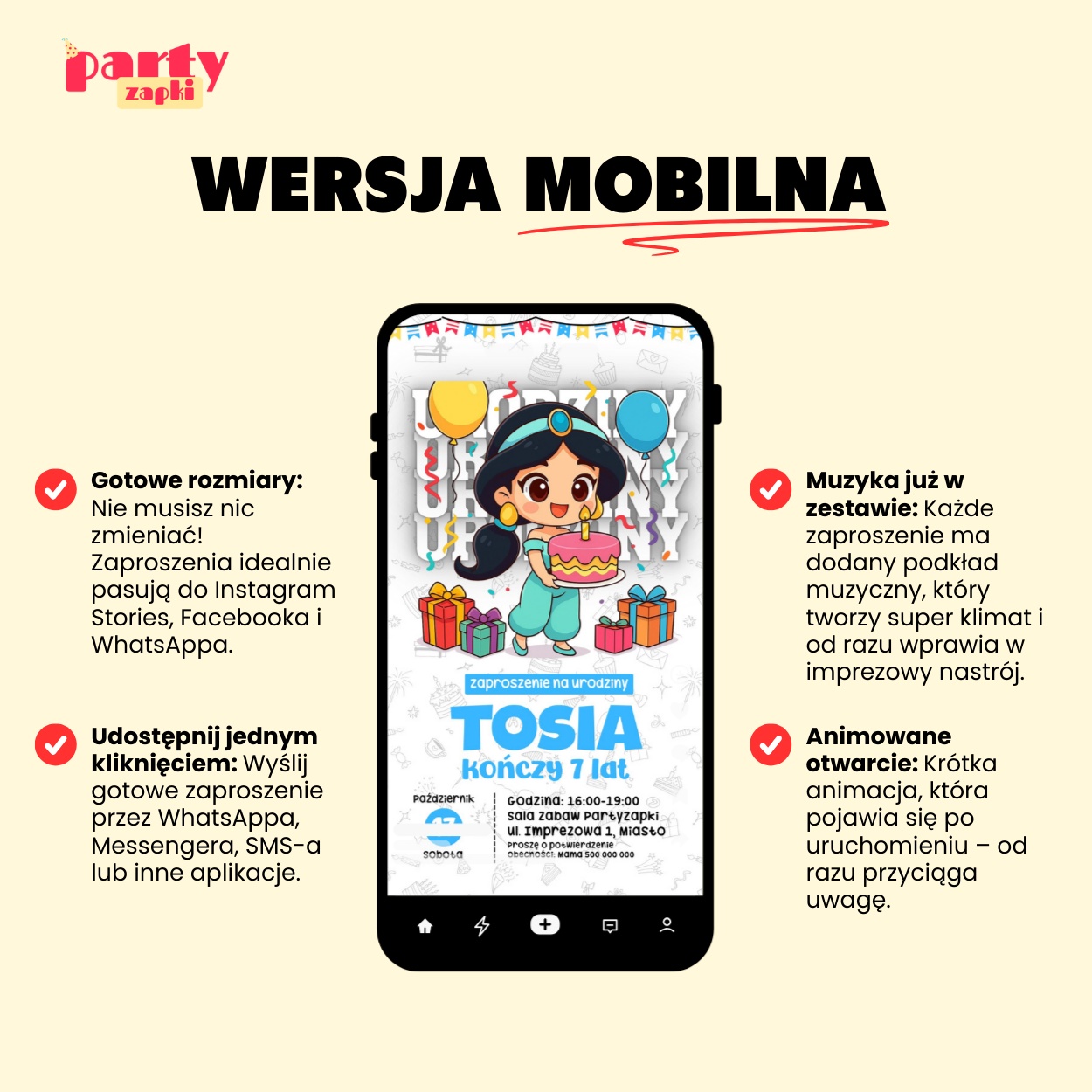 Czym wyróżnia się wersja mobilna tego zaproszenia