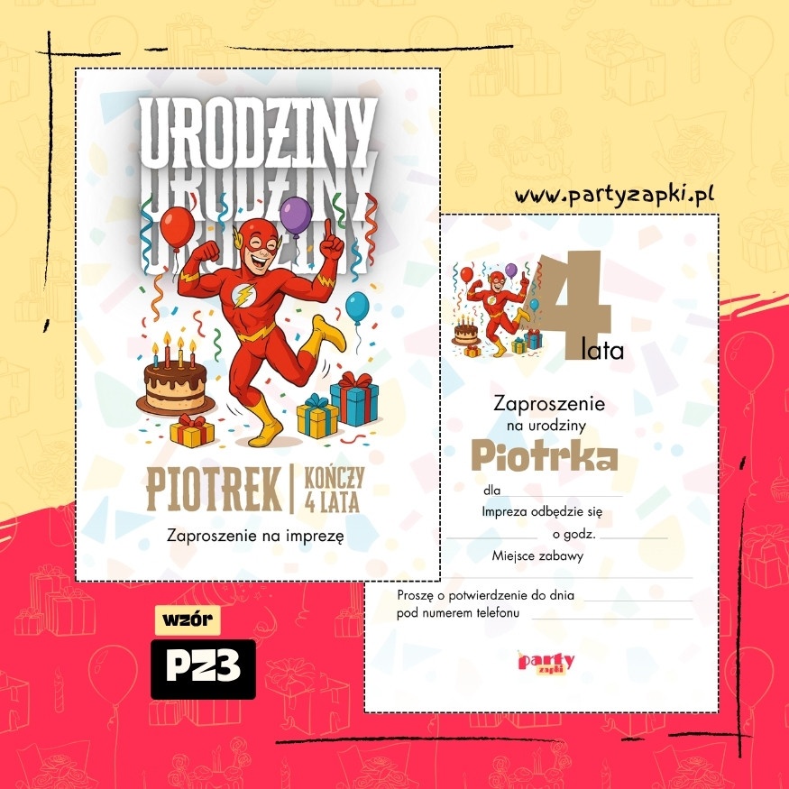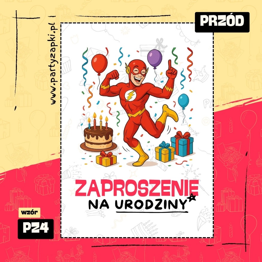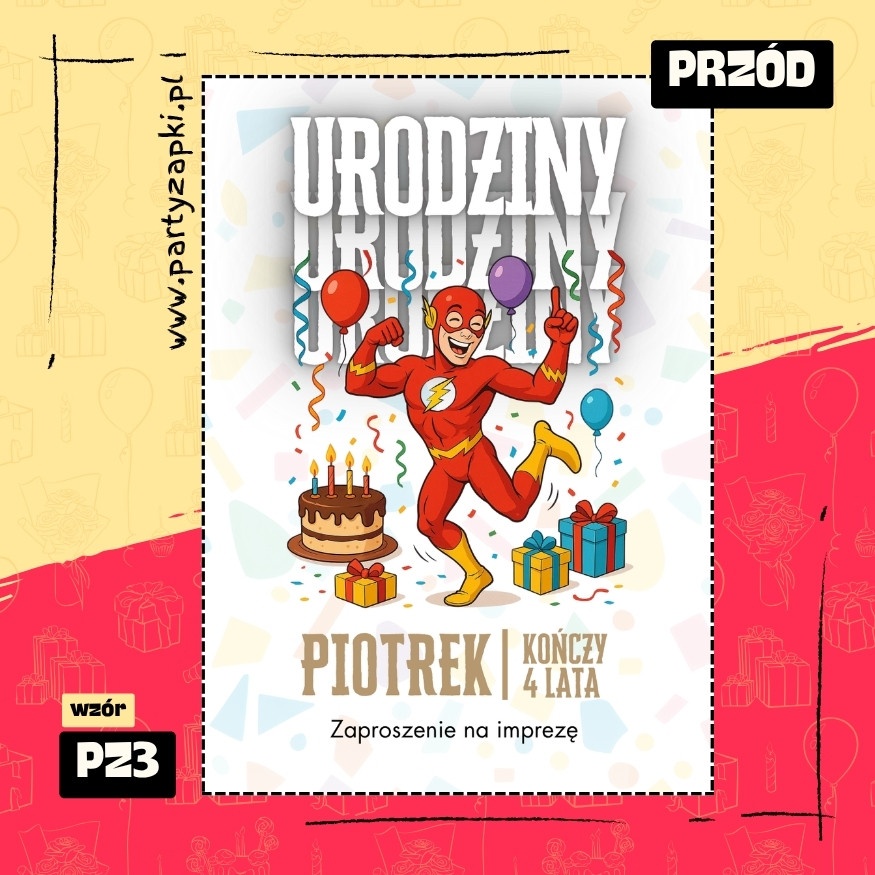 🛒 Zamów zaproszenie na urodziny do druku z Flashem od PartyZAPKI już teraz i spraw, by Twoje dziecko poczuło się wyjątkowo na własnym przyjęciu.