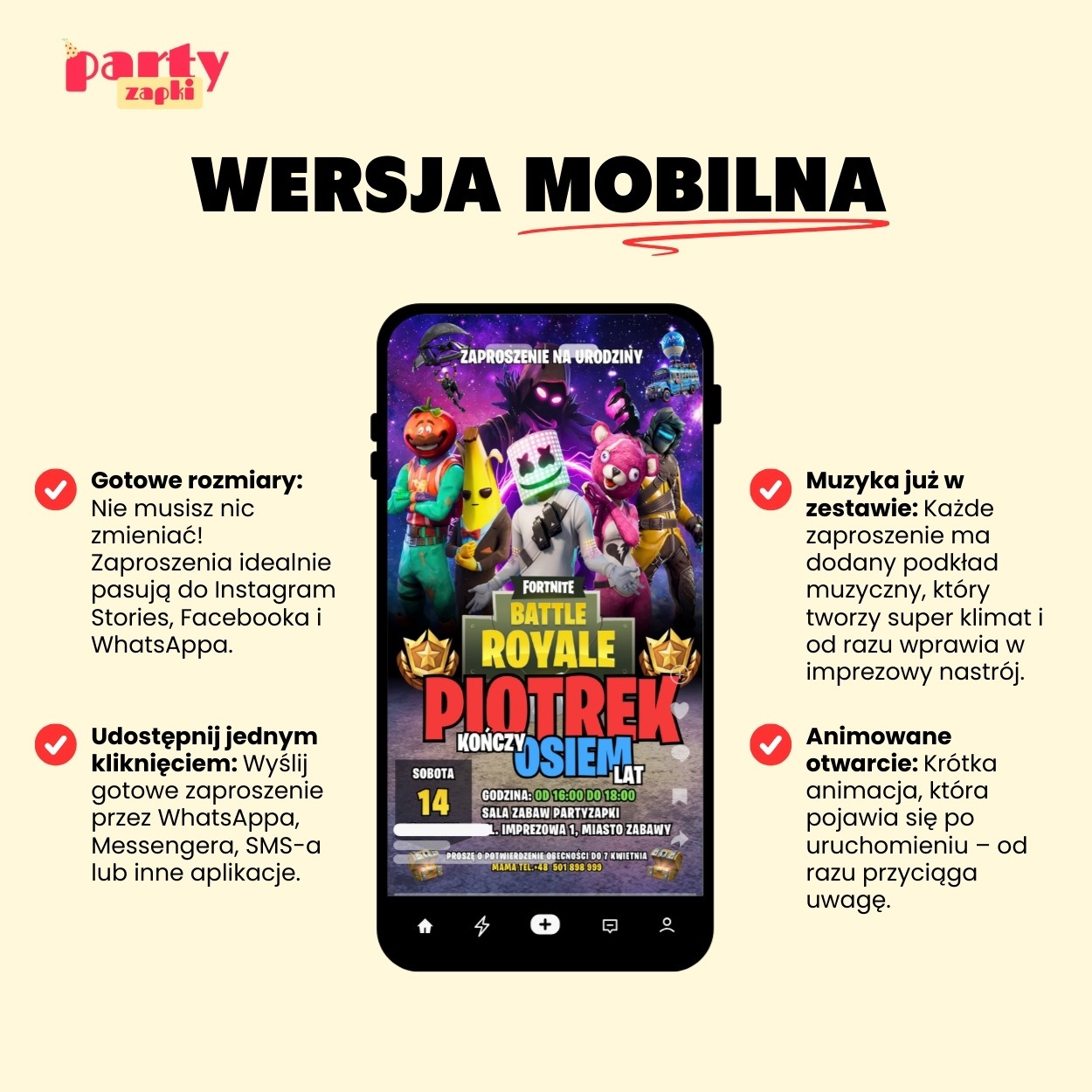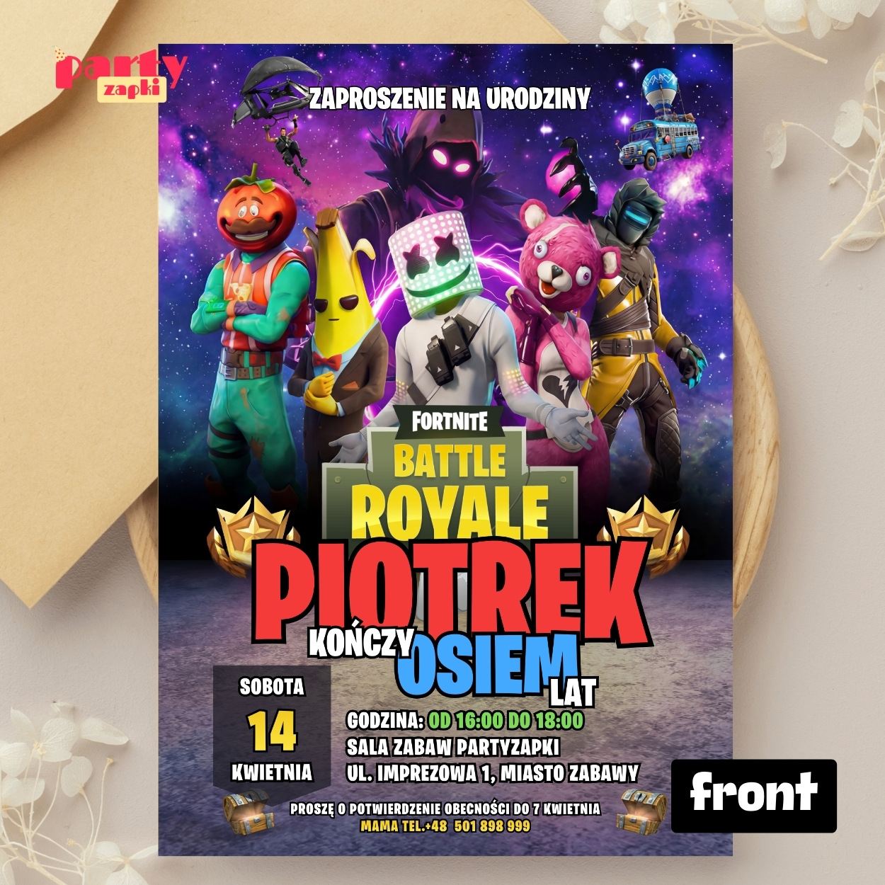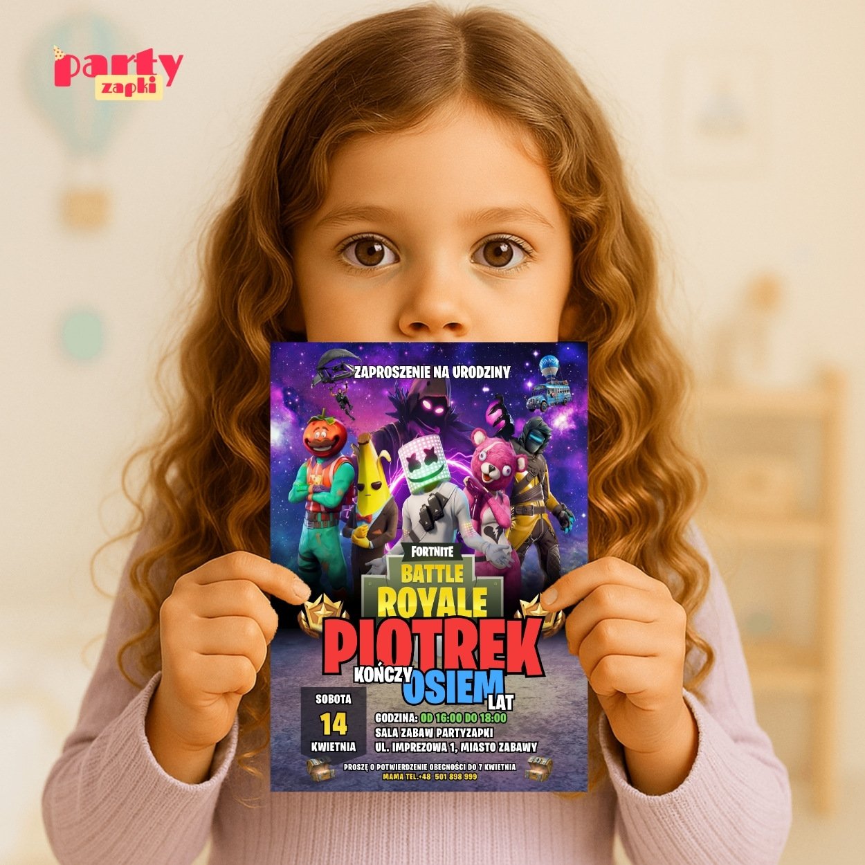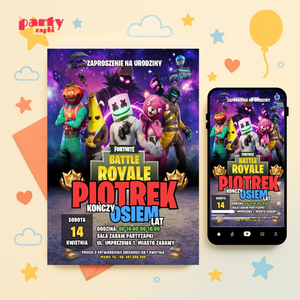 Nowoczesne zaproszenie na urodziny z motywem Fortnite to doskonały sposób, aby zapowiedzieć nadchodzące wydarzenie w gamingowym stylu.