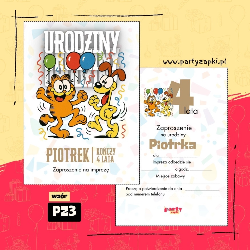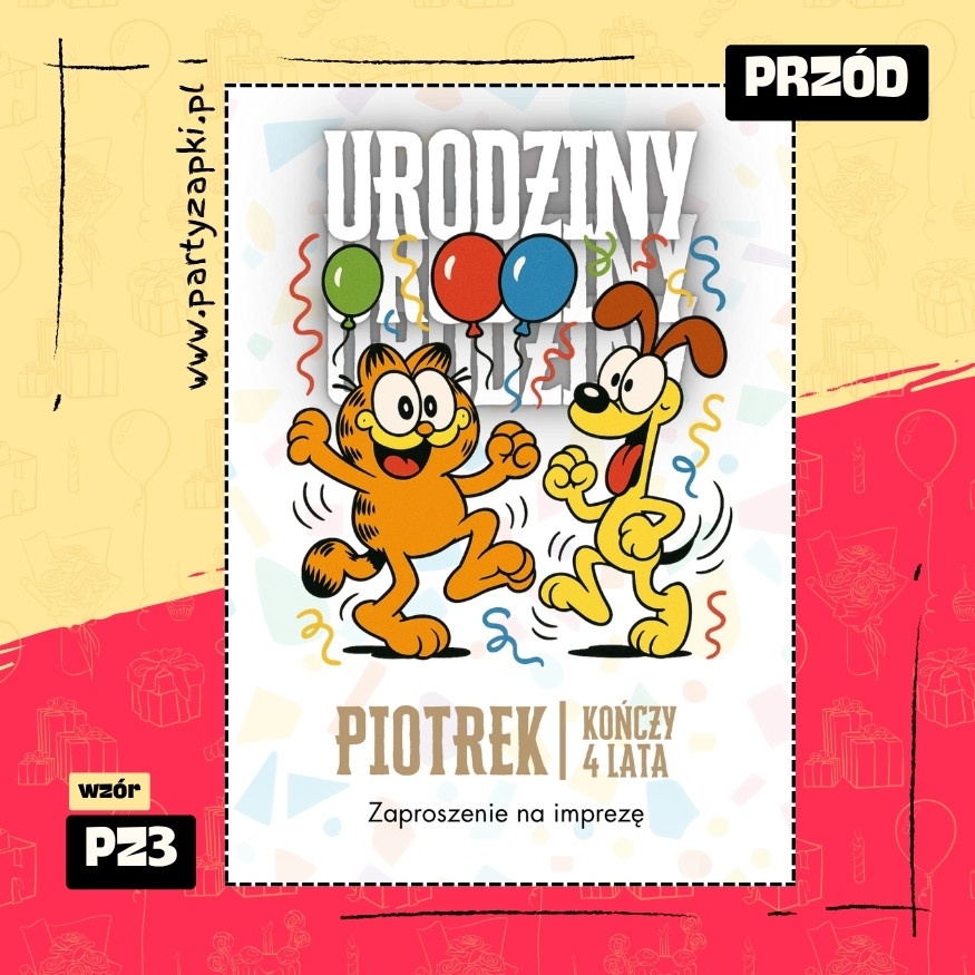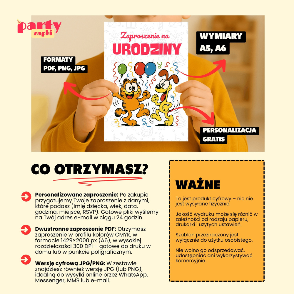 🛒 Zamów zaproszenie na urodziny do druku z kotem Garfieldem od PartyZAPKI już teraz i spraw, by Twoje dziecko poczuło się wyjątkowo na własnym przyjęciu.
