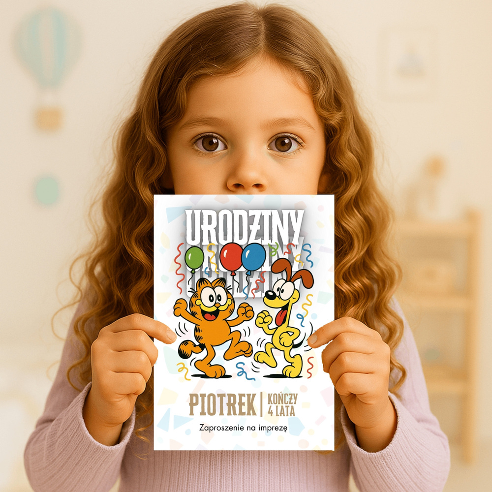 Zaproszenie urodzinowe Garfield – dla fanów humoru i dobrego jedzenia