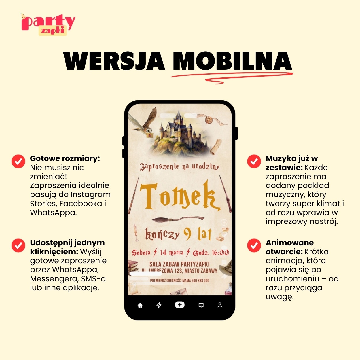 Zobacz przykładową animację dla zaproszenia urodzinowego Harry Potter
