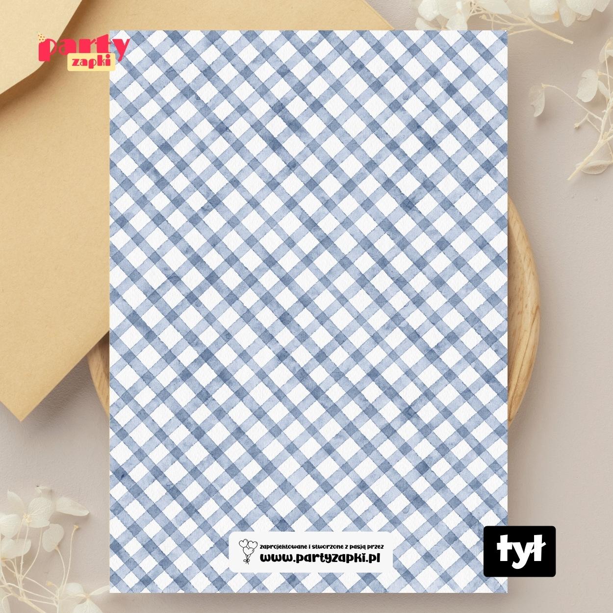 Jest to projekt dwustronny, który w pełni personalizujemy, umieszczając na nim wszystkie kluczowe informacje o przyjęciu: imię i wiek solenizanta, datę, godzinę, adres oraz dowolne dodatkowe informacje (np. RSVP).