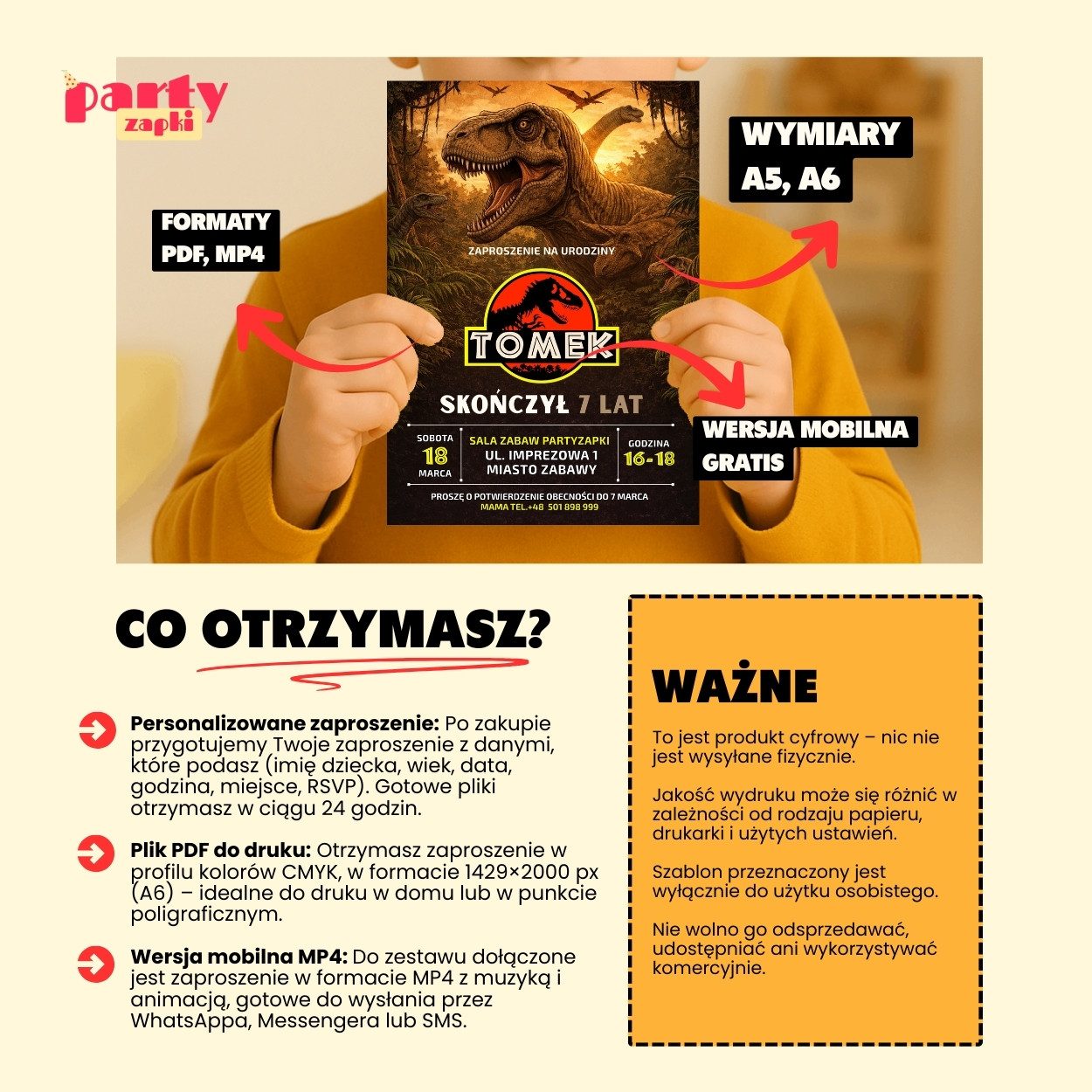 Wyjątkowe zaproszenie na urodziny z motywem Jurassic World to idealny wstęp do niesamowitej przygody pośród prehistorycznych gigantów.