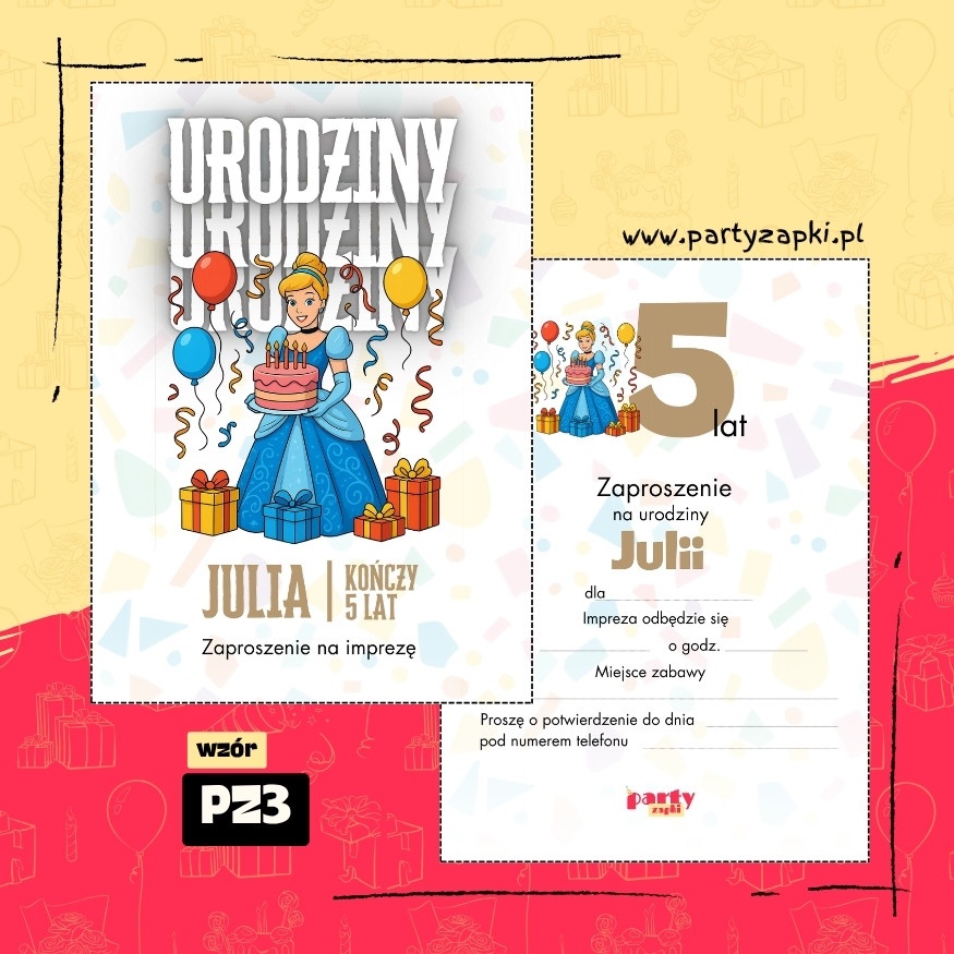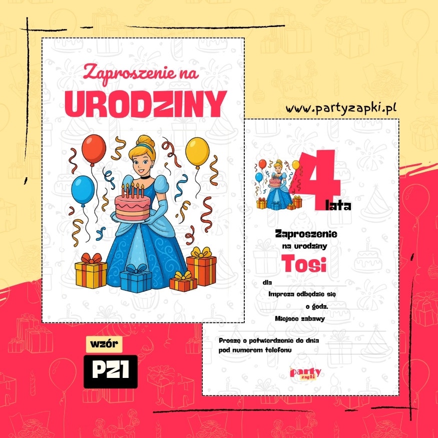🛒 Zamów zaproszenie na urodziny do druku z Kopciuszkiem od PartyZAPKI już teraz i spraw, by Twoje dziecko poczuło się wyjątkowo na własnym przyjęciu.