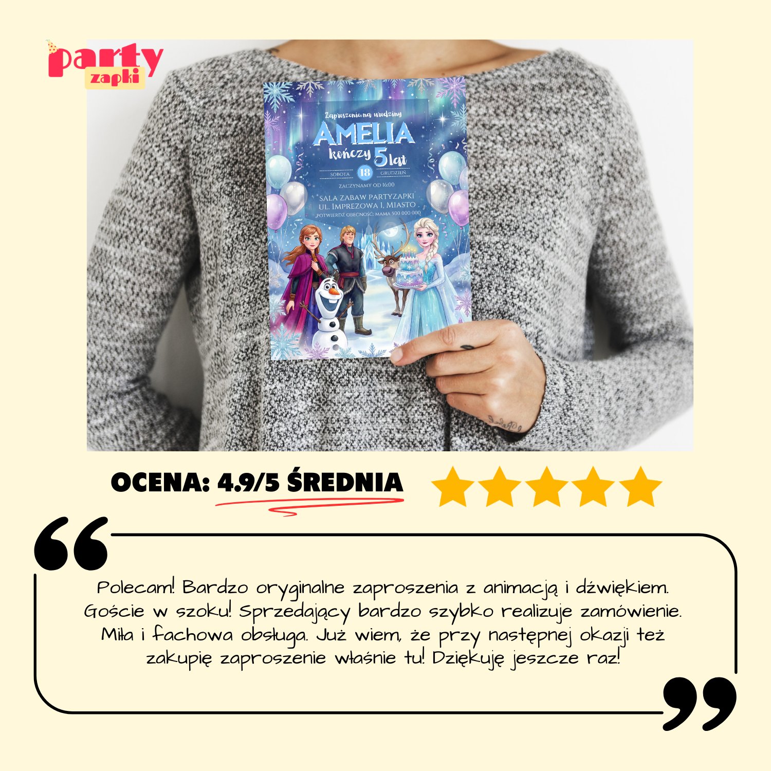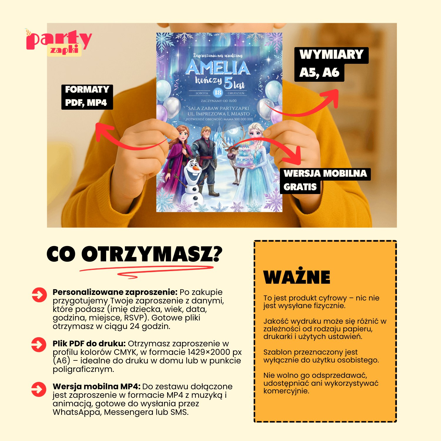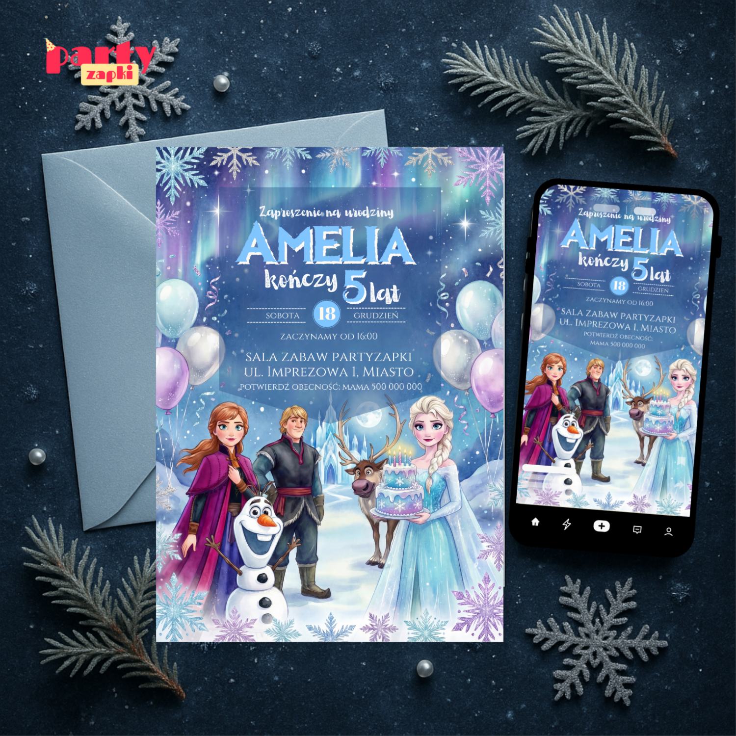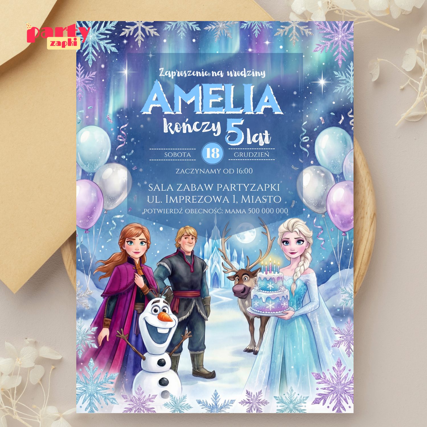 🛒 Zamów zaproszenie na urodziny do druku Kraina Lodu od PartyZAPKI już teraz i spraw, by Twoje dziecko poczuło się wyjątkowo na własnym przyjęciu.