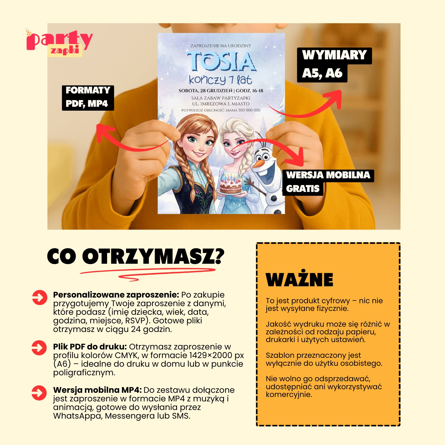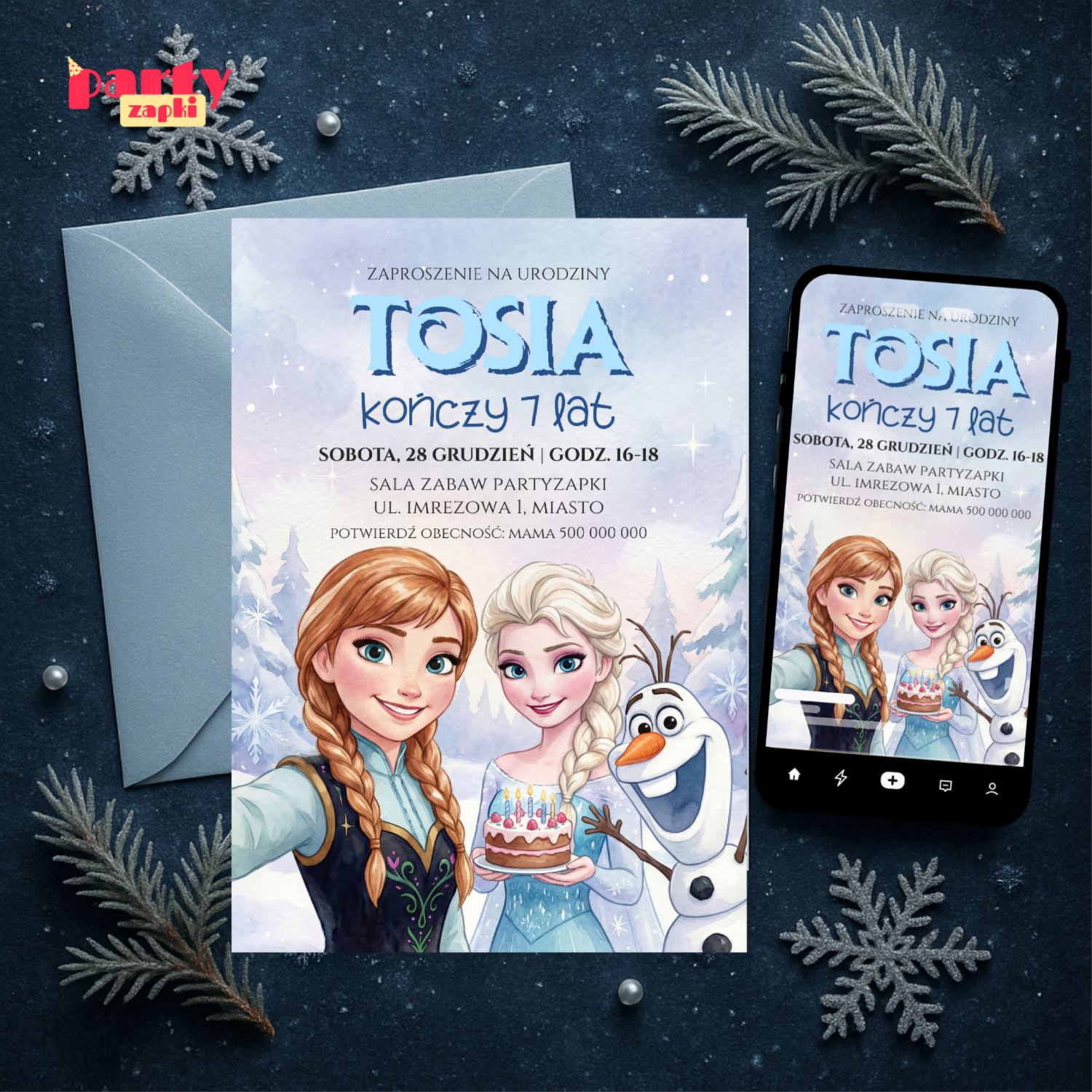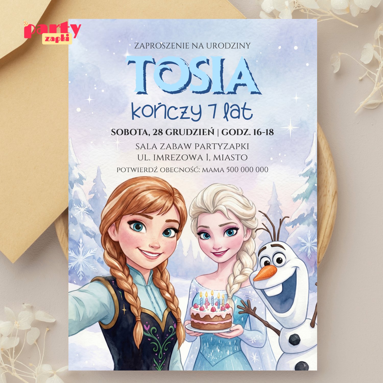 🛒 Zamów zaproszenie na urodziny do druku Kraina Lodu od PartyZAPKI już teraz i spraw, by Twoje dziecko poczuło się wyjątkowo na własnym przyjęciu.