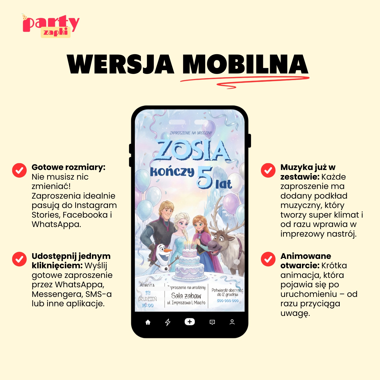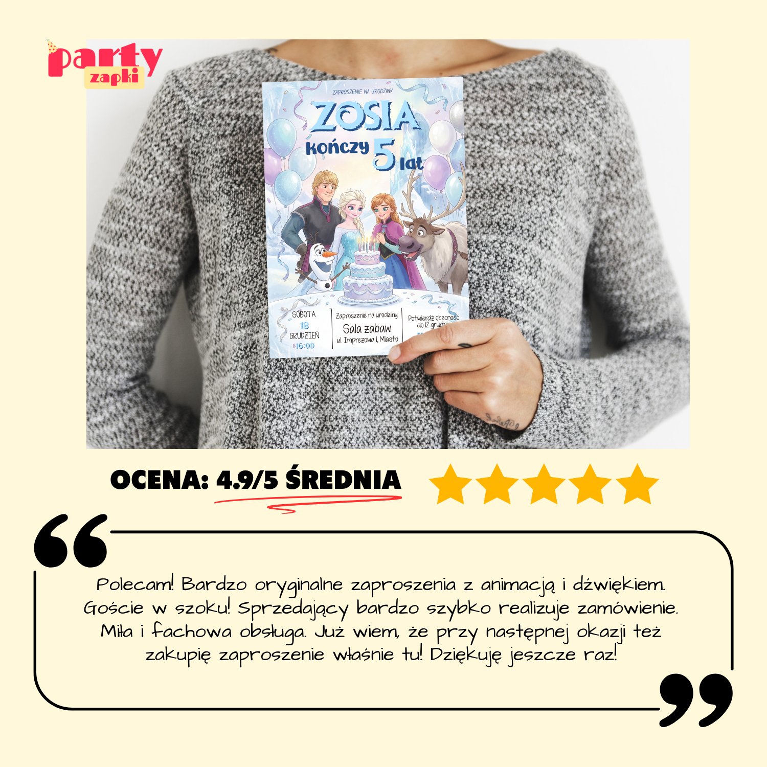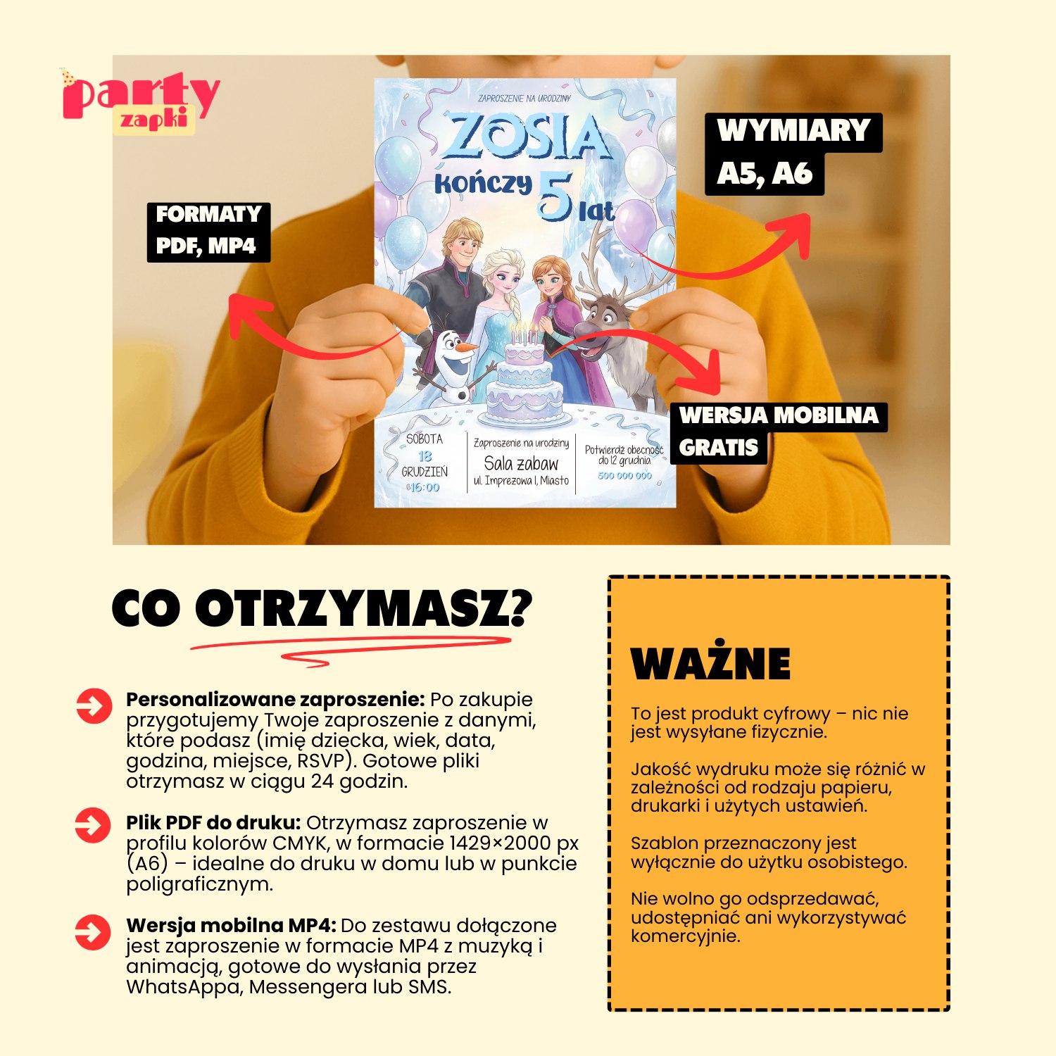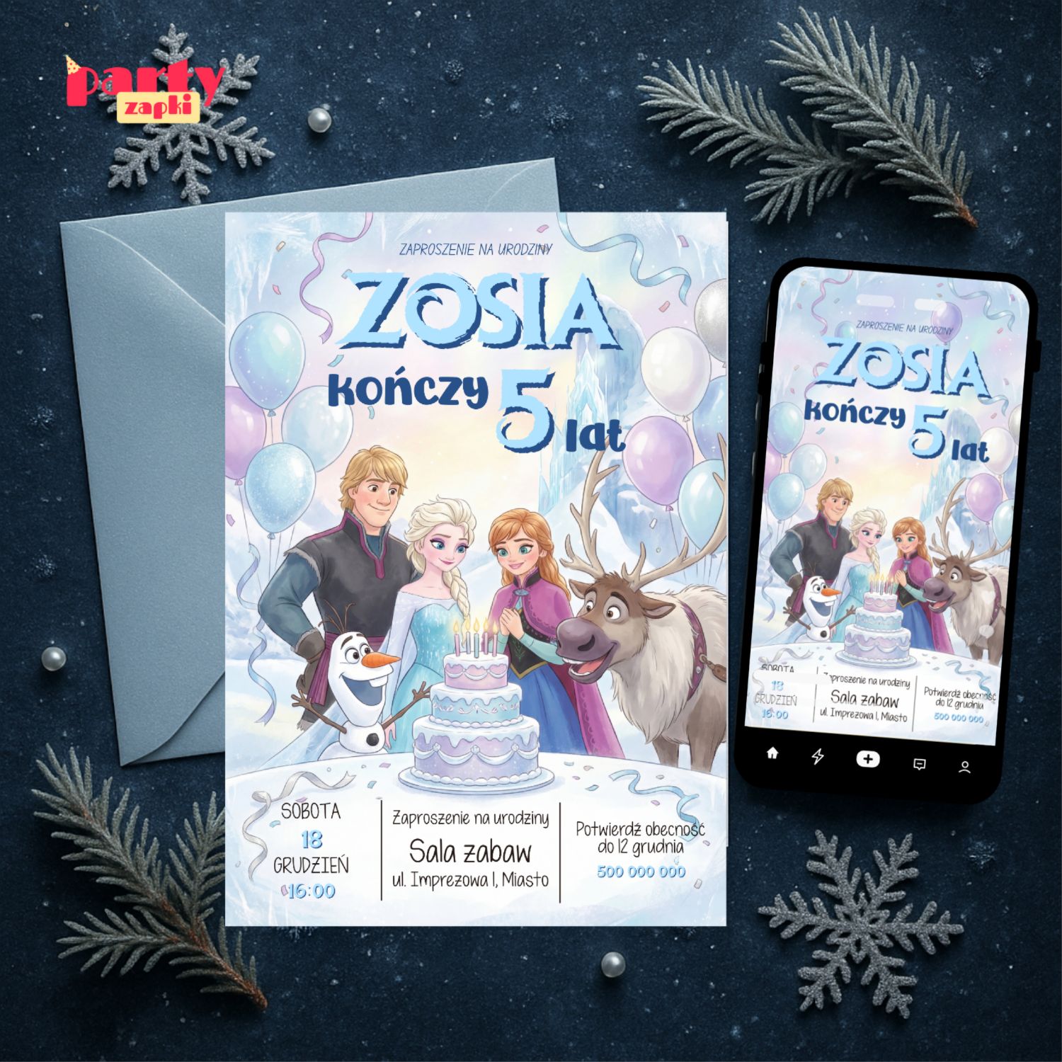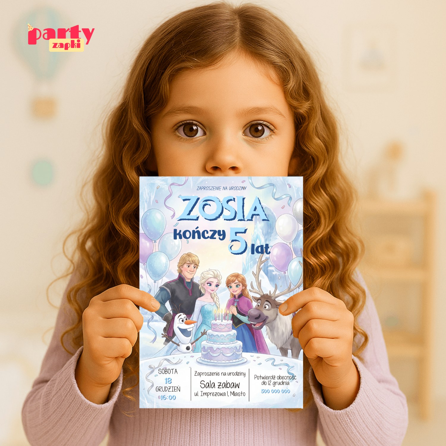 🛒 Zamów zaproszenie na urodziny do druku Kraina Lodu od PartyZAPKI już teraz i spraw, by Twoje dziecko poczuło się wyjątkowo na własnym przyjęciu.