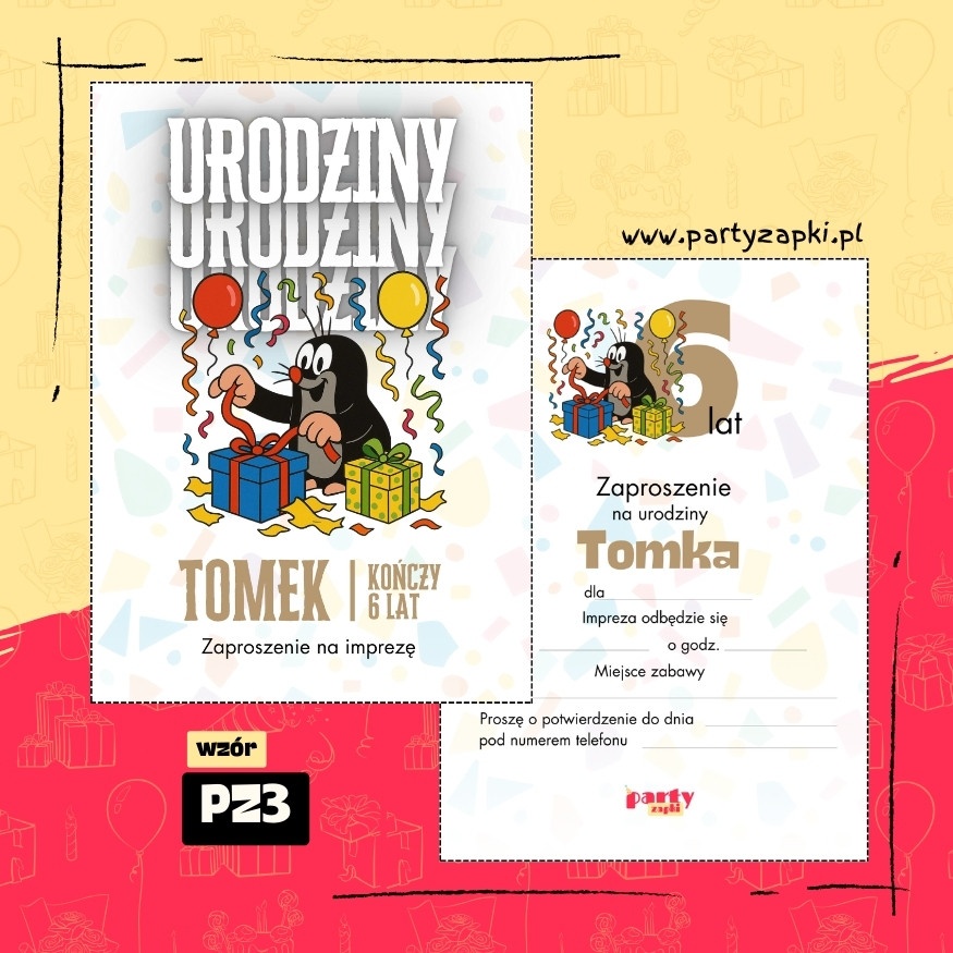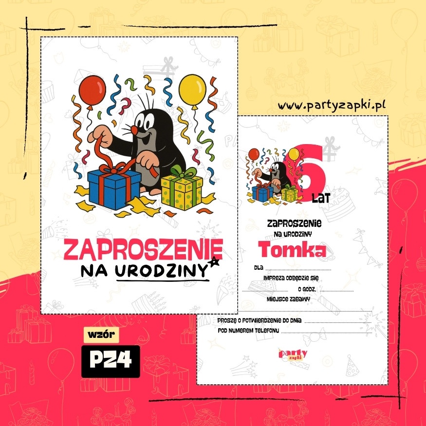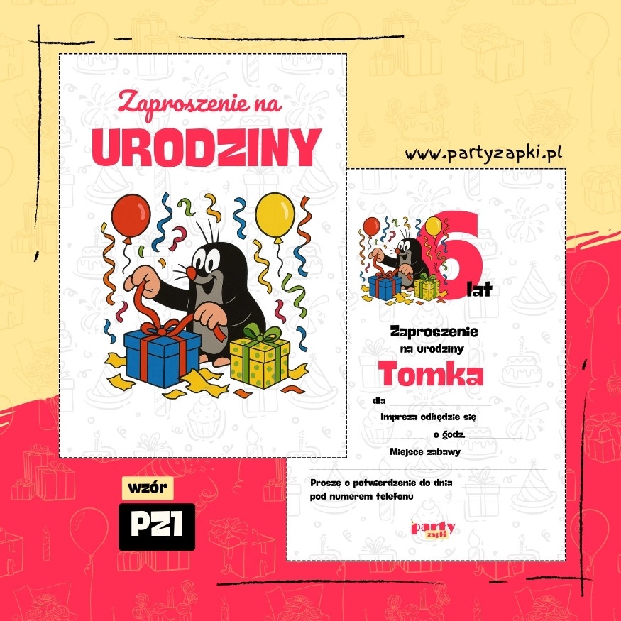 🛒 Zamów zaproszenie na urodziny do druku z Krecikiem od PartyZAPKI już teraz i spraw, by Twoje dziecko poczuło się wyjątkowo na własnym przyjęciu.