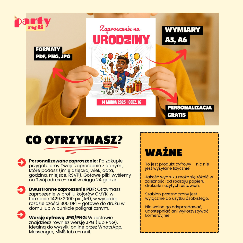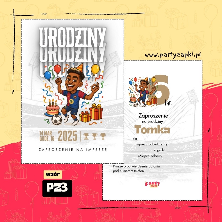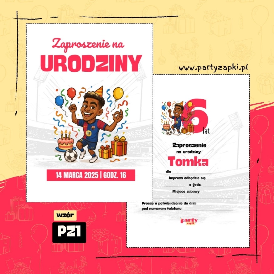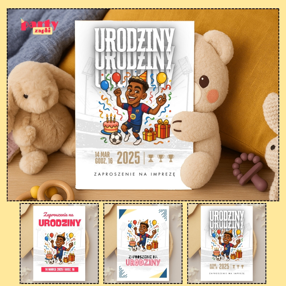 🛒 Zamów zaproszenie na urodziny do druku z Lamine Yamalem od PartyZAPKI już teraz i spraw, by Twoje dziecko poczuło się wyjątkowo na własnym przyjęciu.
