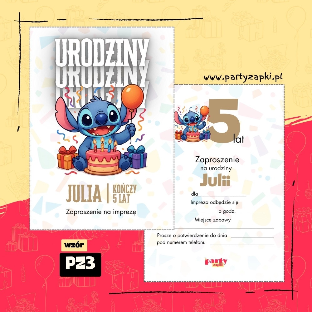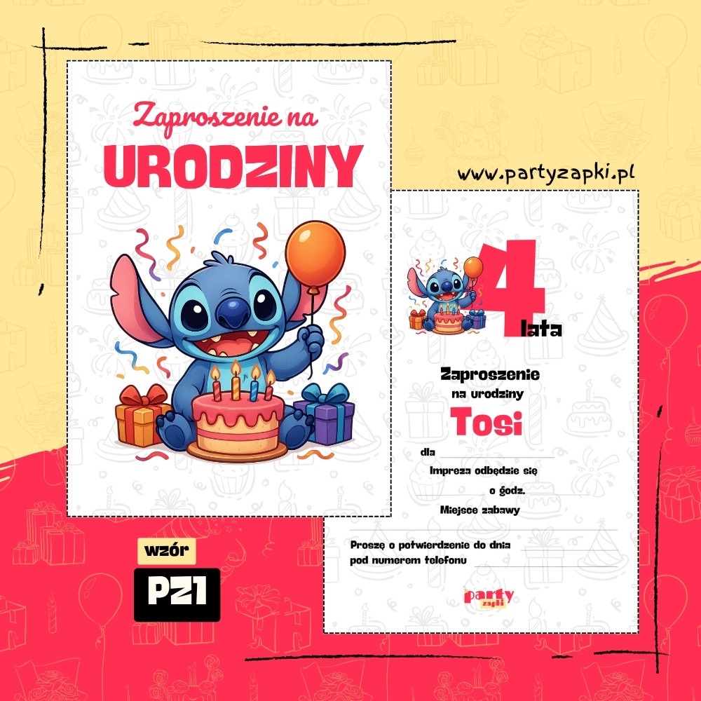 🛒 Zamów zaproszenie na urodziny do druku ze Stitchem od PartyZAPKI już teraz i spraw, by Twoje dziecko poczuło się wyjątkowo na własnym przyjęciu.