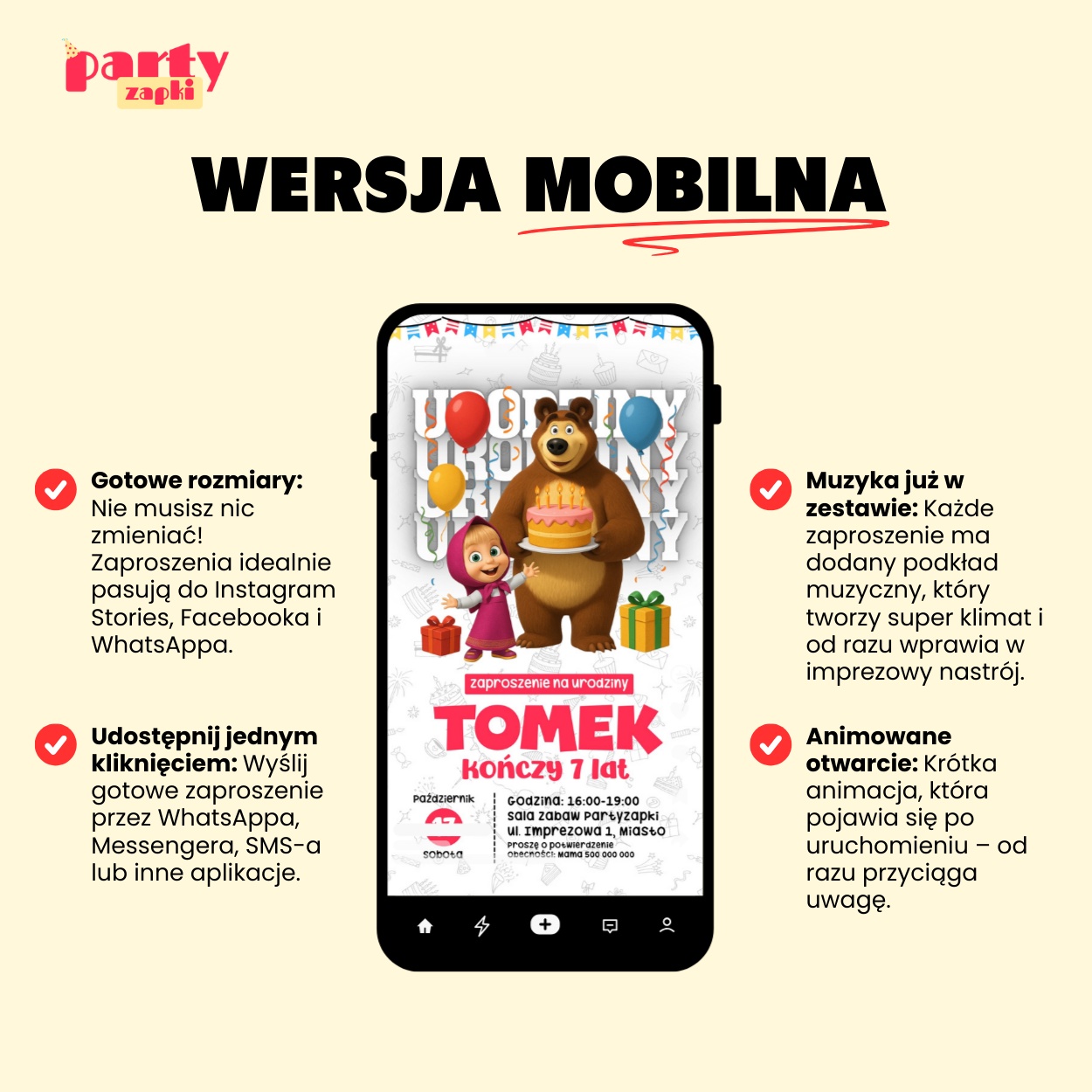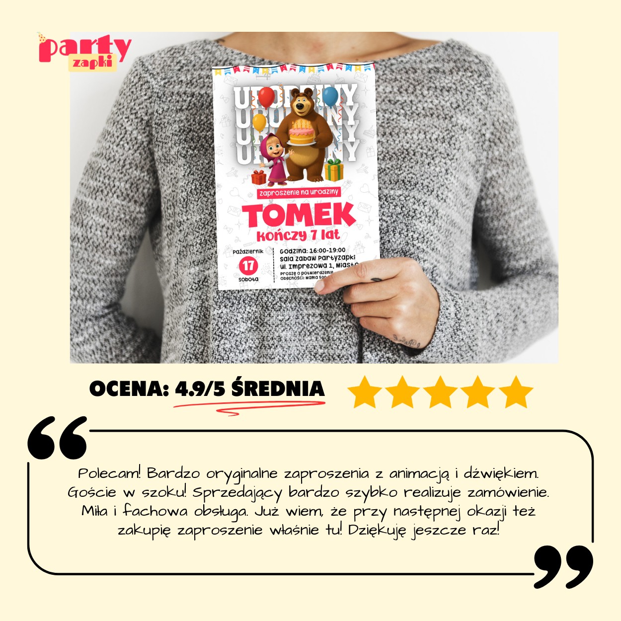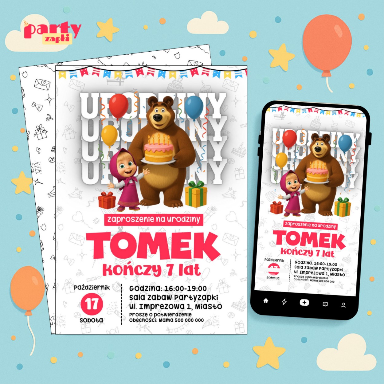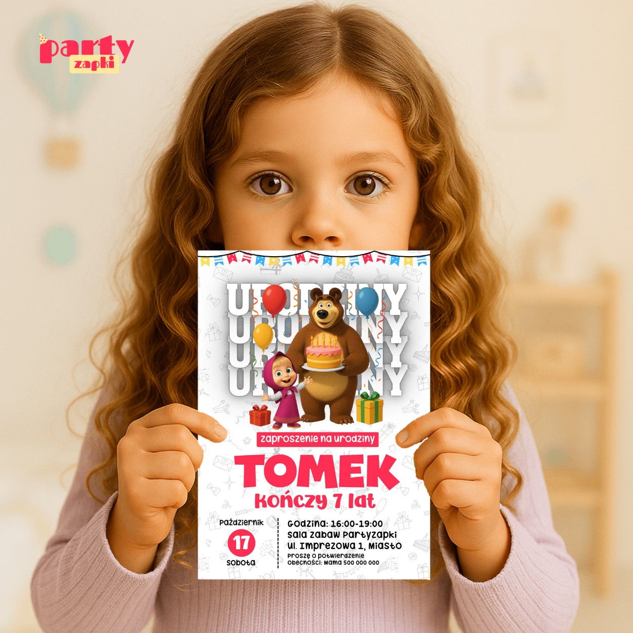 Wyjątkowe zaproszenie na urodziny z motywem Maszy i Niedźwiedzia to doskonały sposób na rozpoczęcie przygotowań do radosnego przyjęcia w prawdziwie leśnym klimacie.