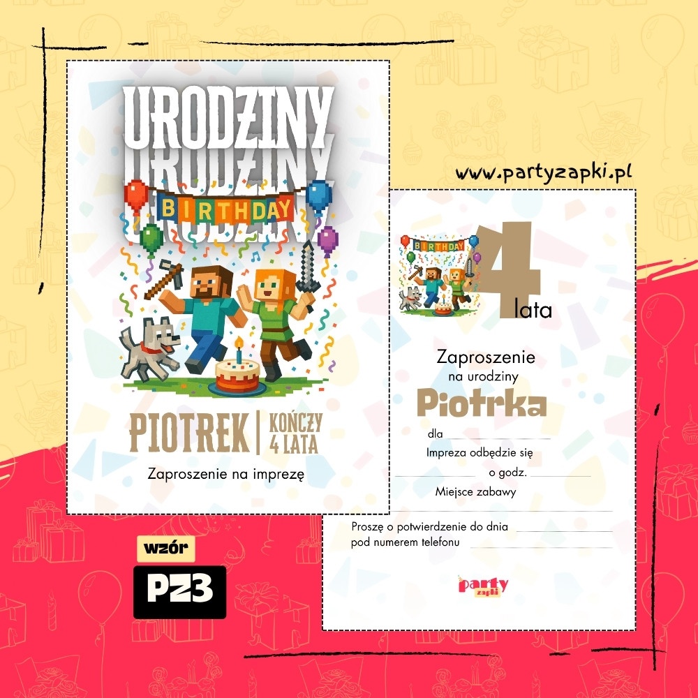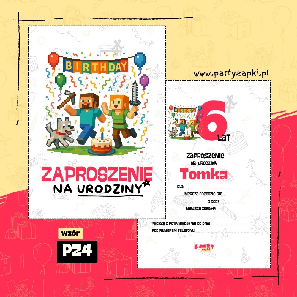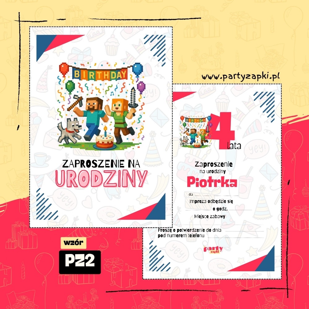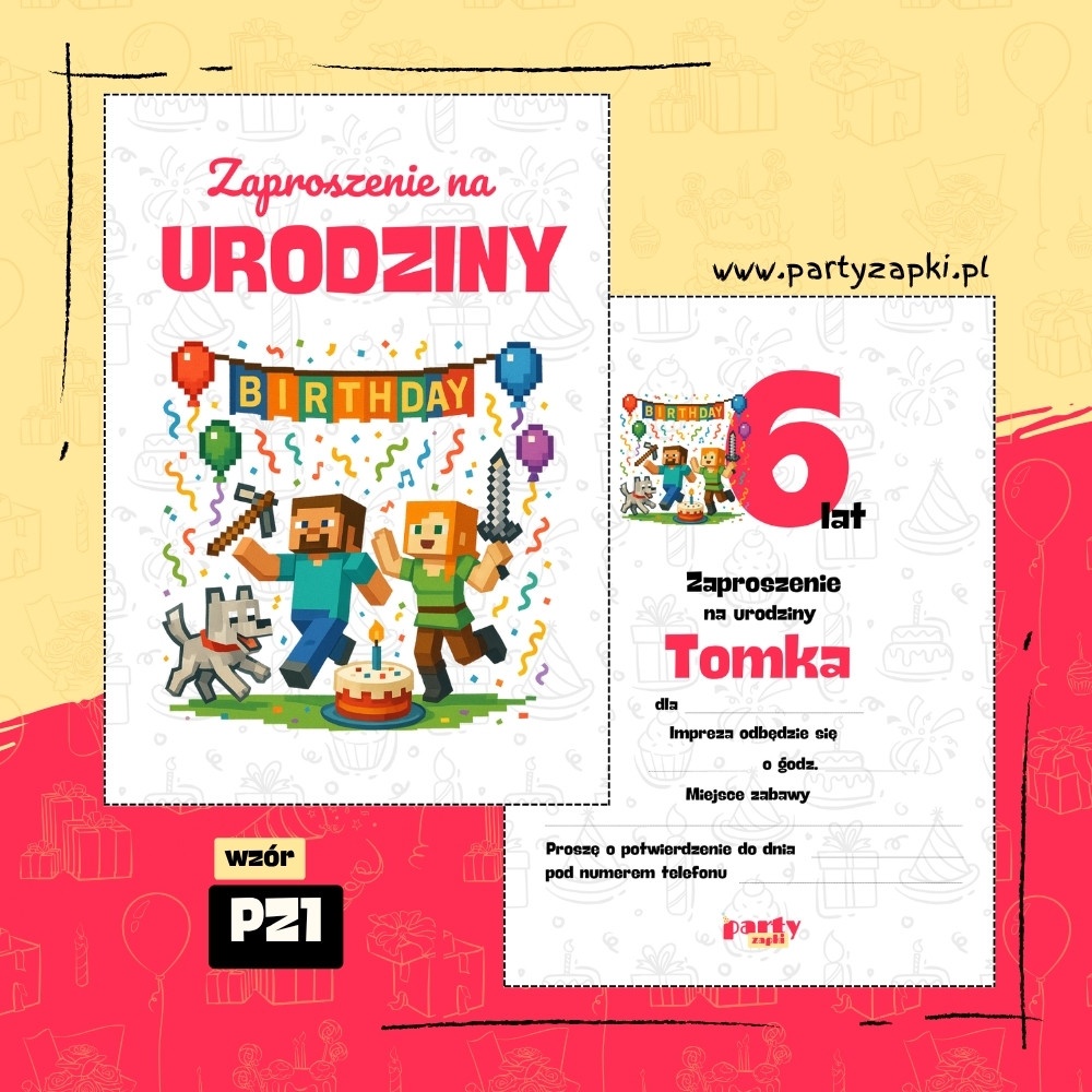 🛒 Zamów zaproszenie na urodziny do druku Minecraft od PartyZAPKI już teraz i spraw, by Twoje dziecko poczuło się wyjątkowo na własnym przyjęciu.