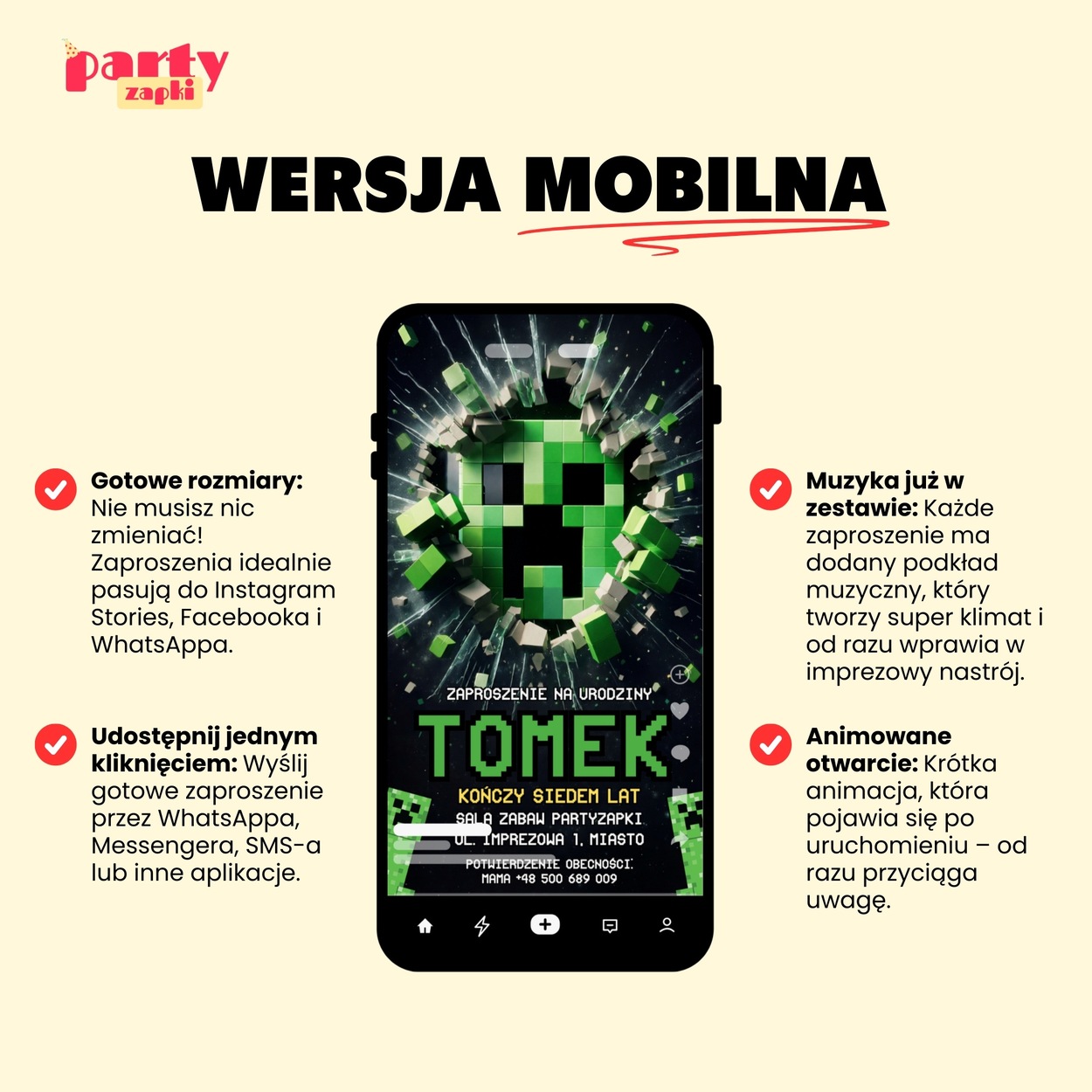 Czym wyróżnia się wersja mobilna tego zaproszenia