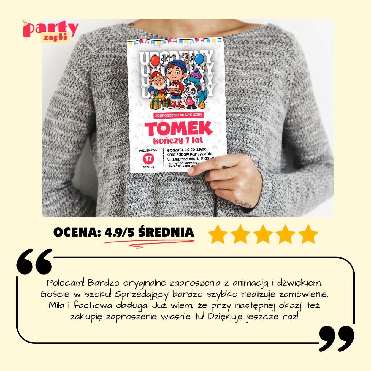 🛒 Zamów zaproszenie na urodziny od PartyZAPKI już teraz i spraw, by Twoje dziecko poczuło się wyjątkowo na własnym przyjęciu.