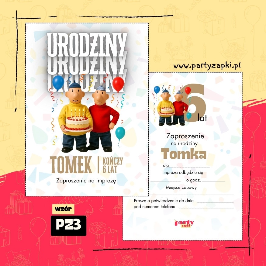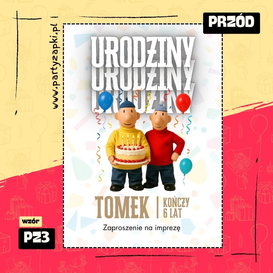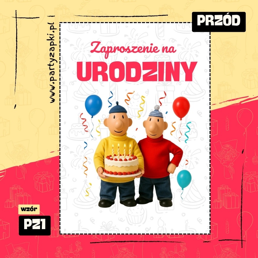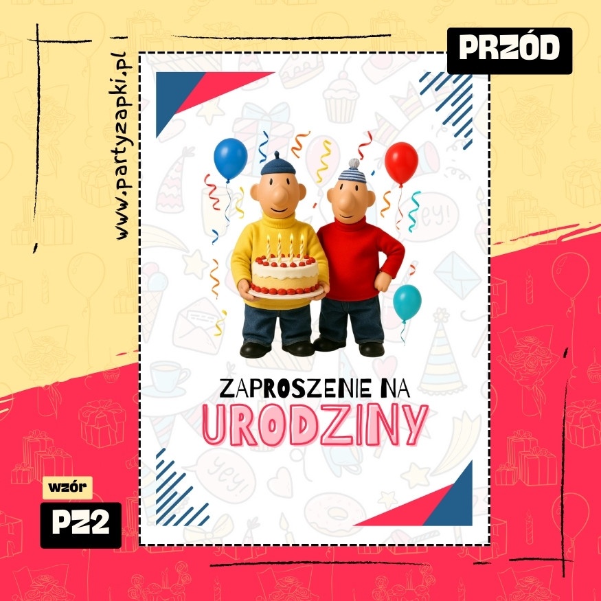 🛒 Zamów zaproszenie na urodziny do druku z Patem i Matem od PartyZAPKI już teraz i spraw, by Twoje dziecko poczuło się wyjątkowo na własnym przyjęciu.