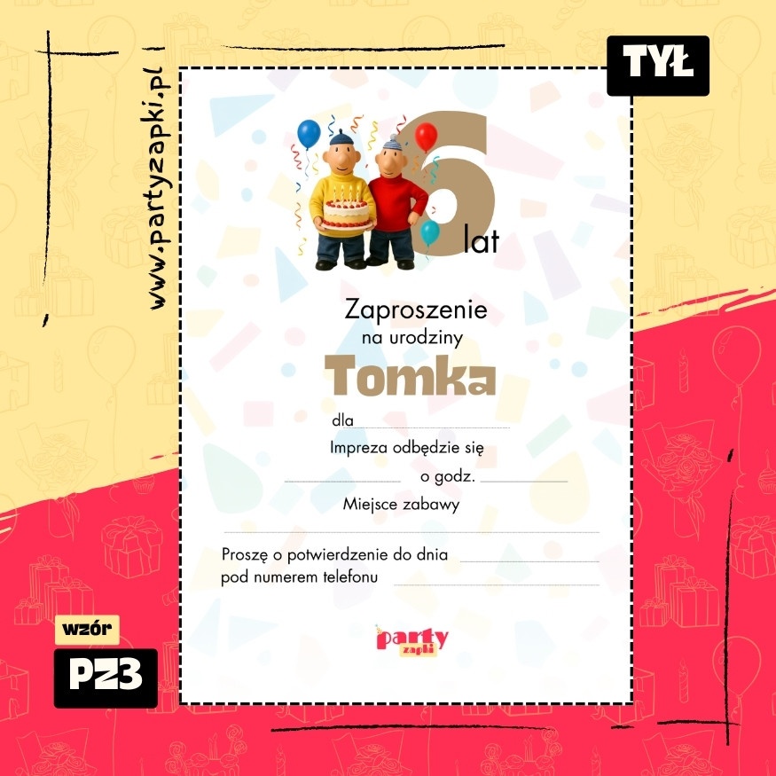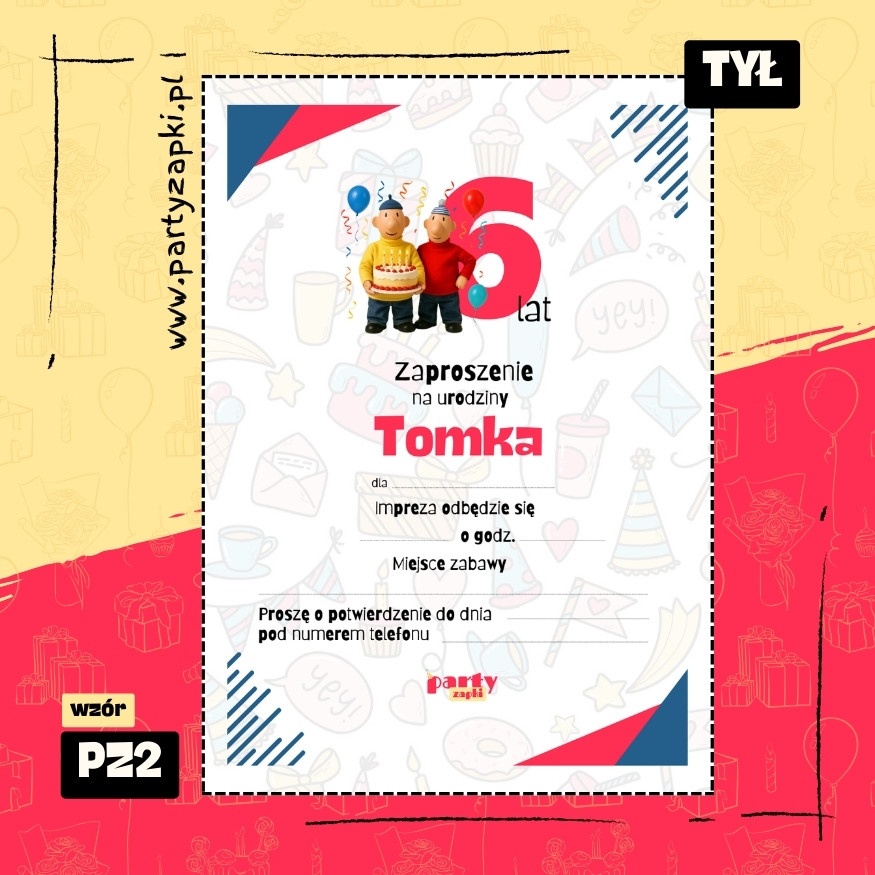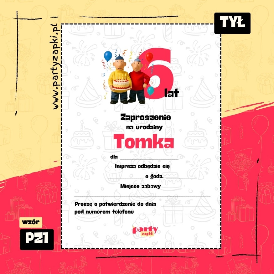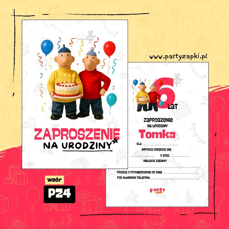 🛒 Zamów zaproszenie na urodziny do druku z Patem i Matem od PartyZAPKI już teraz i spraw, by Twoje dziecko poczuło się wyjątkowo na własnym przyjęciu.