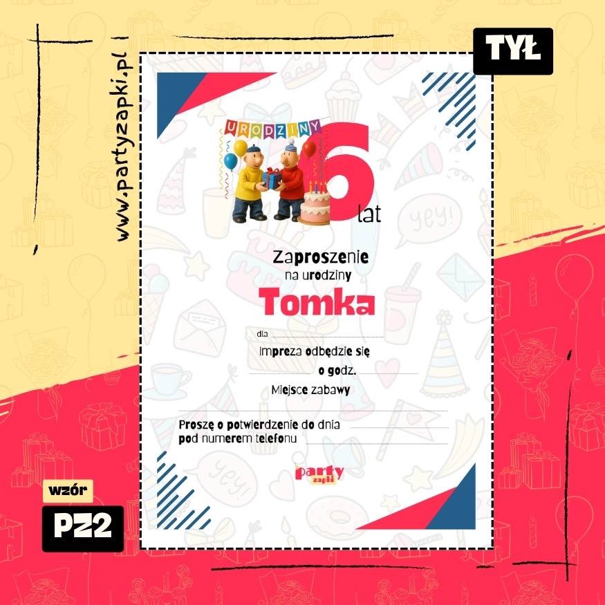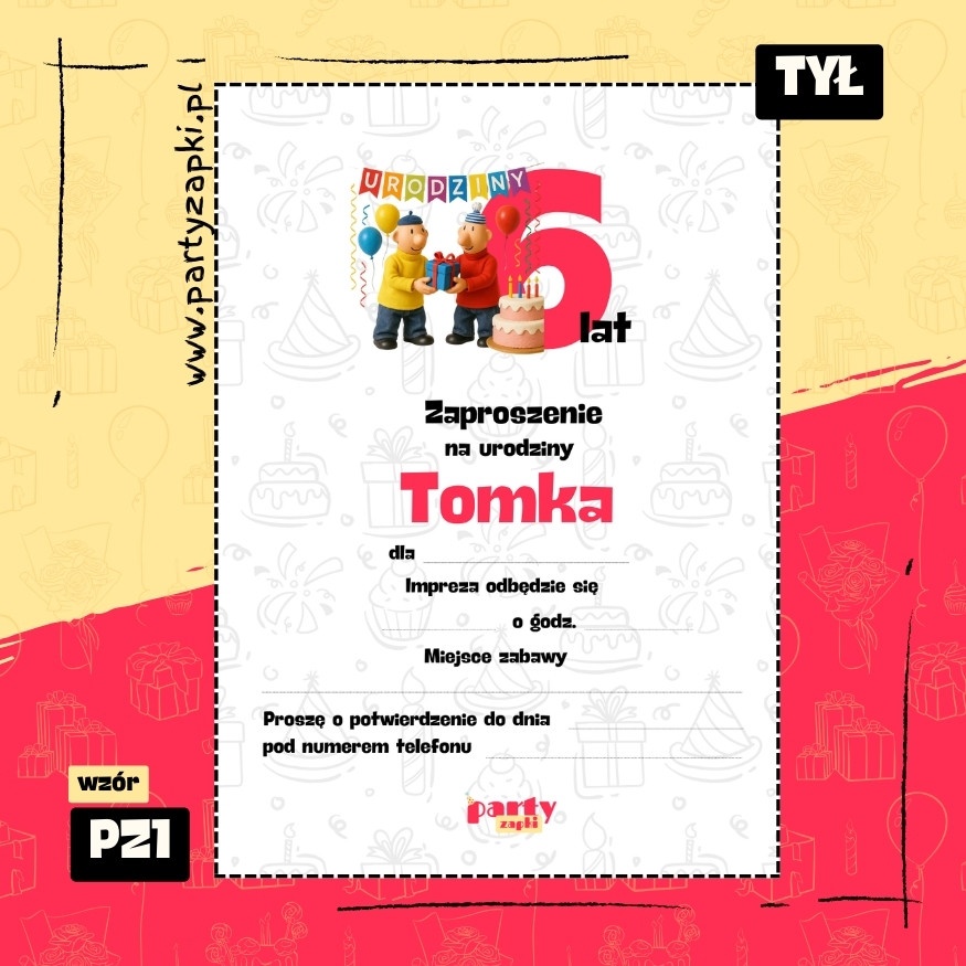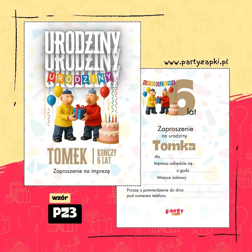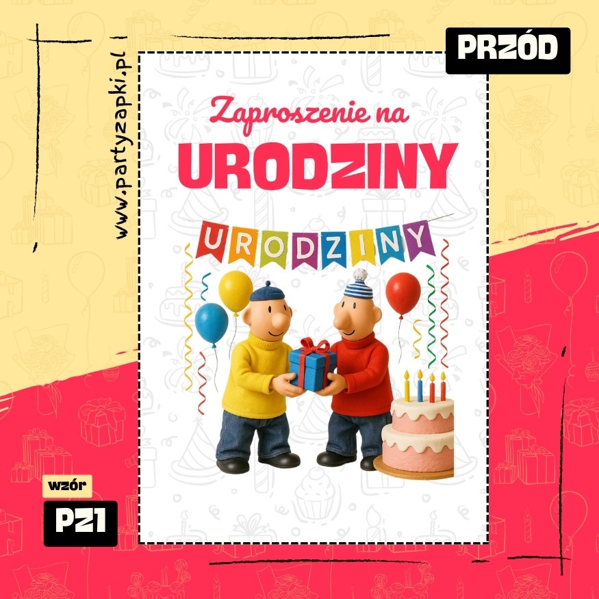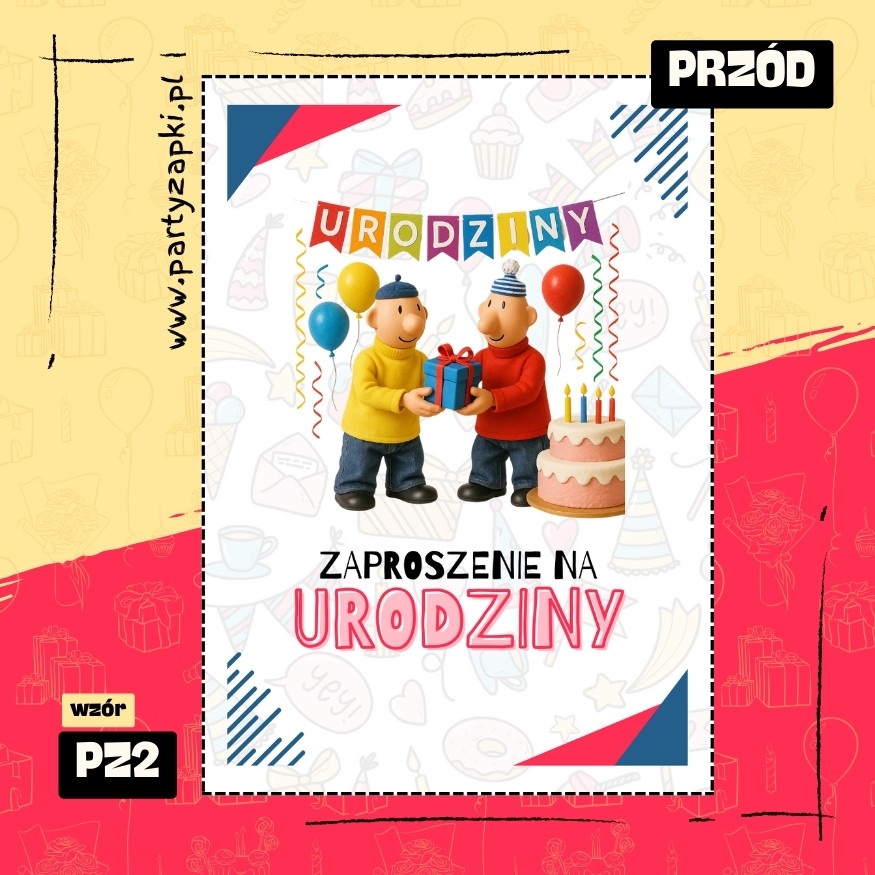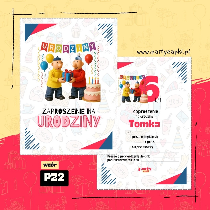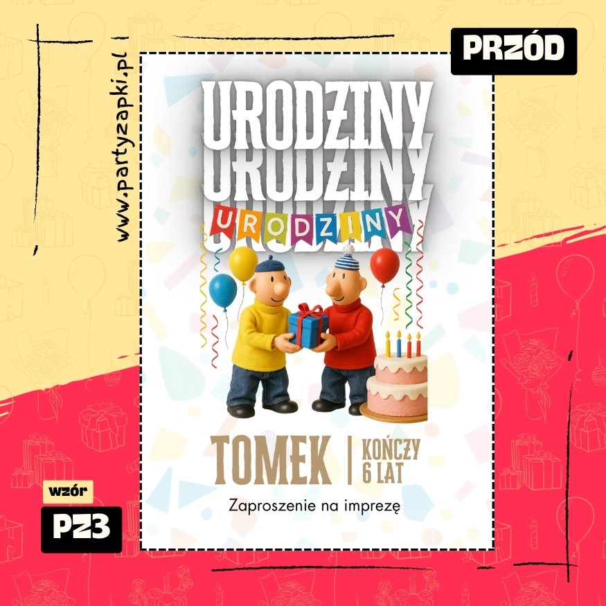 🛒 Zamów zaproszenie na urodziny do druku z Patem i Matem od PartyZAPKI już teraz i spraw, by Twoje dziecko poczuło się wyjątkowo na własnym przyjęciu.