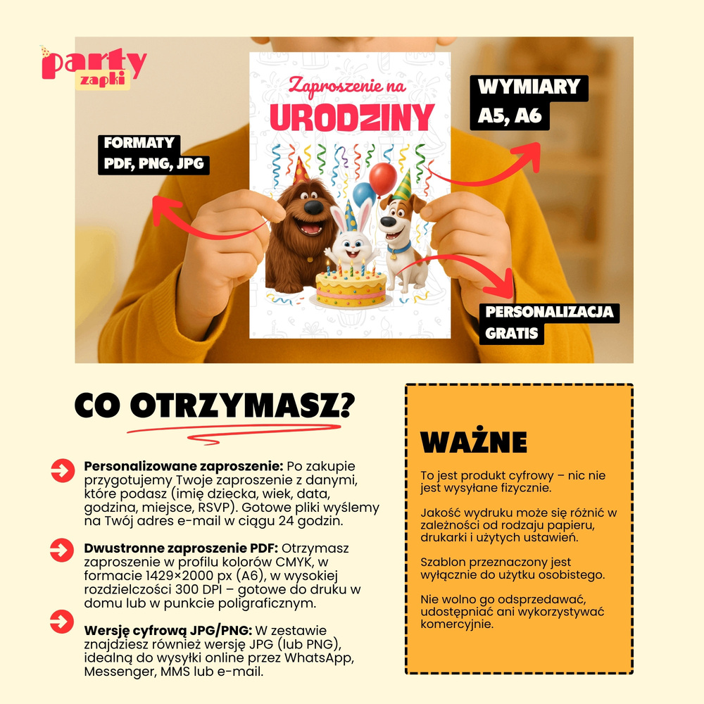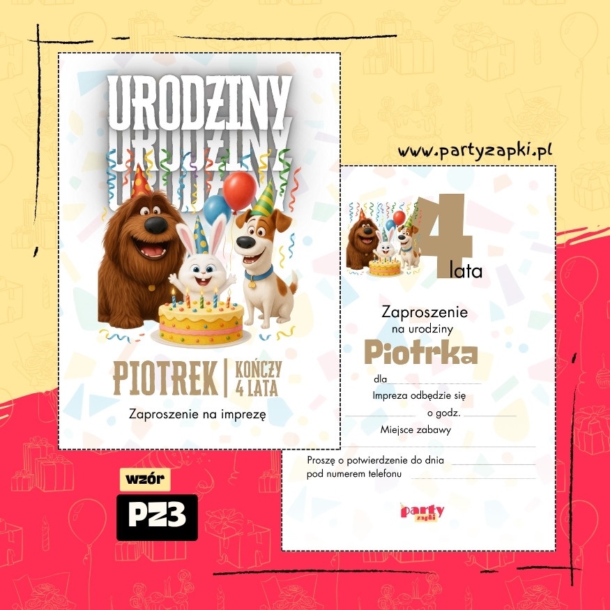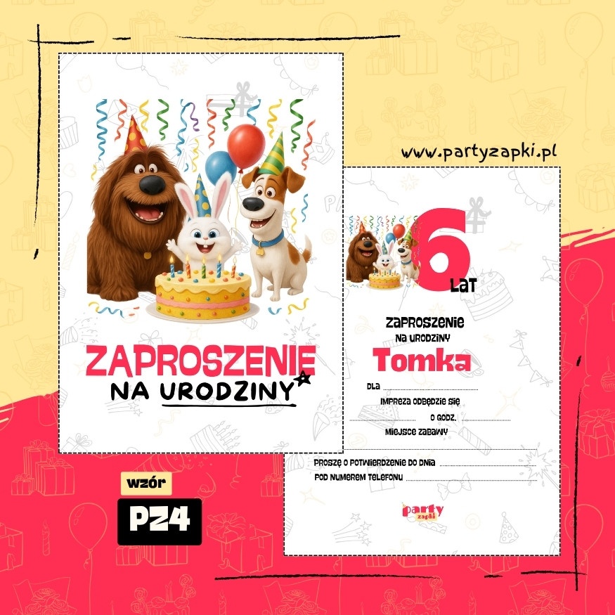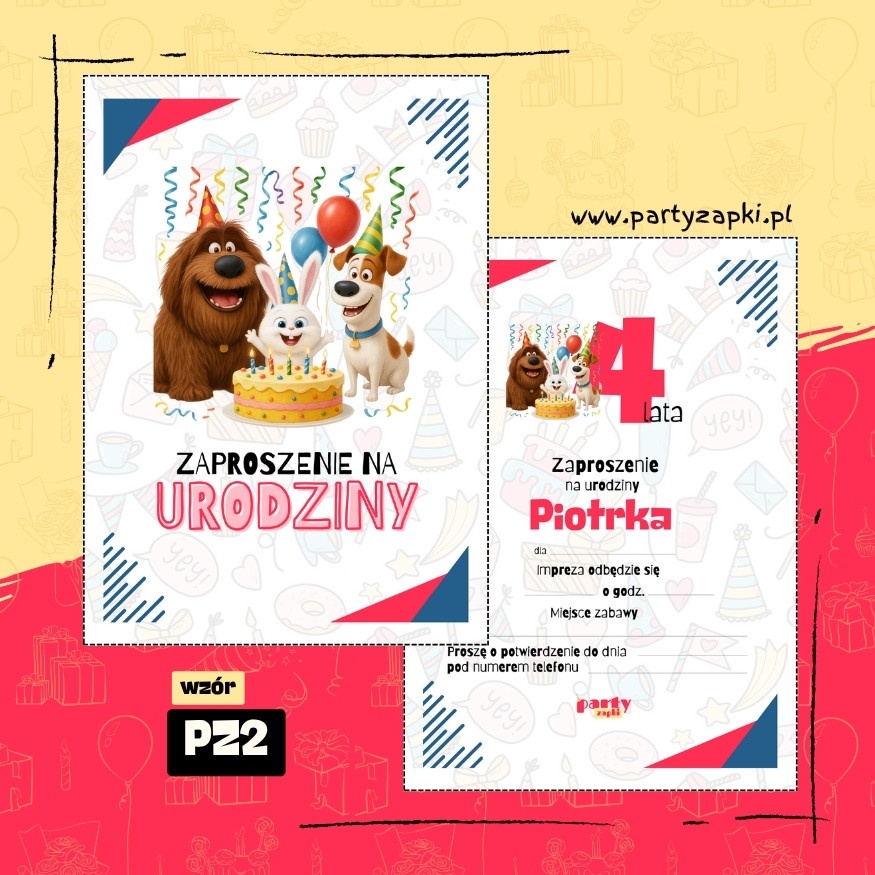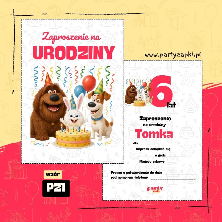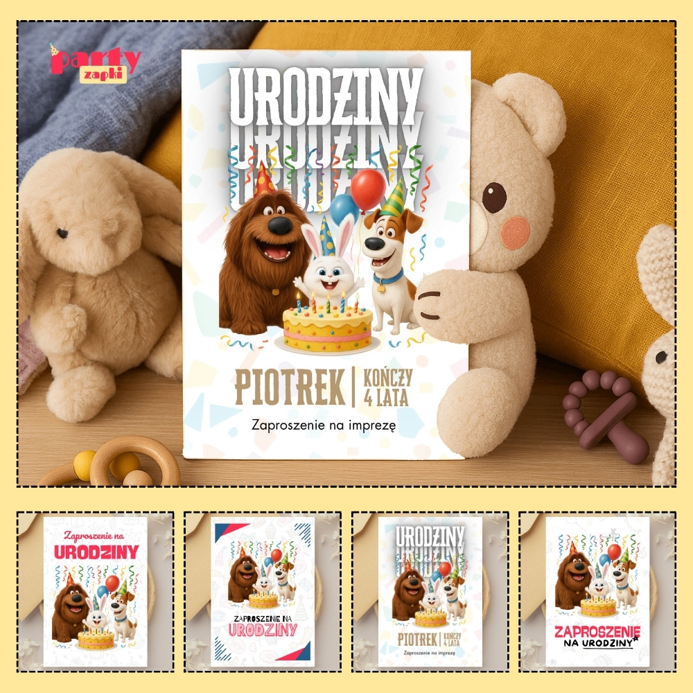🛒 Zamów zaproszenie na urodziny do druku z bohaterami filmu Sekretne Życie Zwierzaków Domowych od PartyZAPKI już teraz i spraw, by Twoje dziecko poczuło się wyjątkowo na własnym przyjęciu.