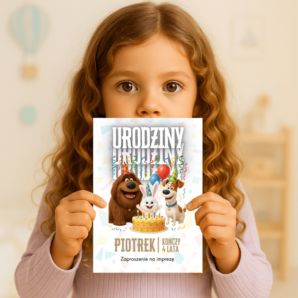 Zaproszenie urodzinowe z motywem „Sekretnego Życia Zwierzaków Domowych” to wybór dla rodziców, którzy chcą uczynić urodziny swojego dziecka jeszcze bardziej wyjątkowymi.