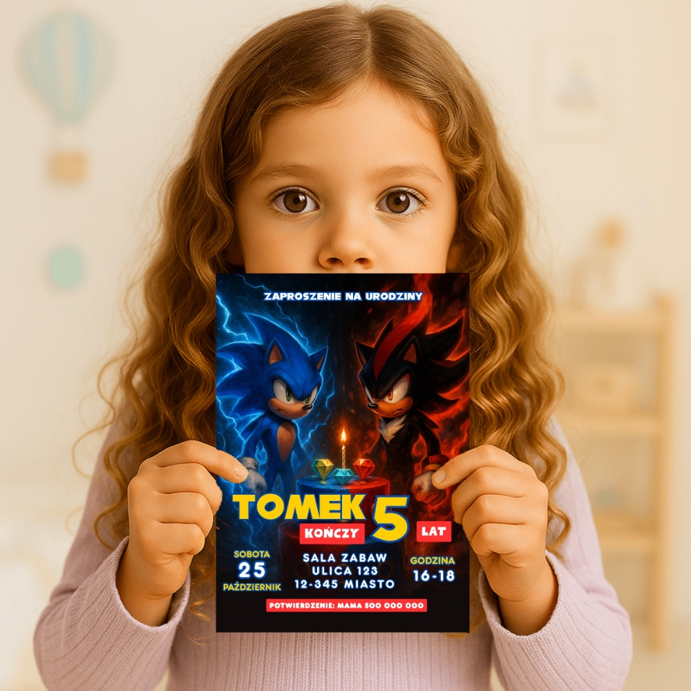 Zaproszenie urodzinowe Sonic – dla najszybszych fanów!