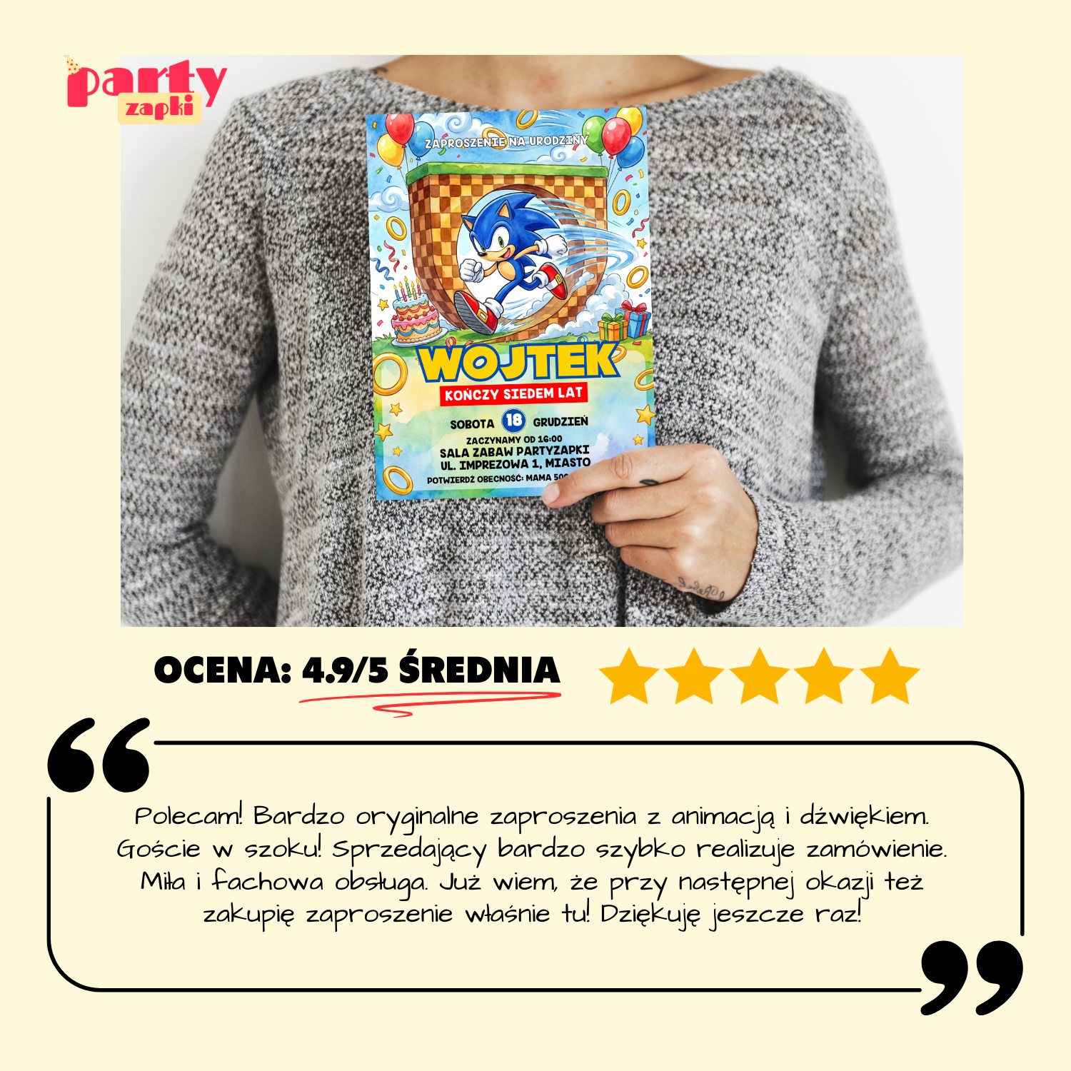 Zaproszenie urodzinowe Sonic – dla najszybszych fanów!