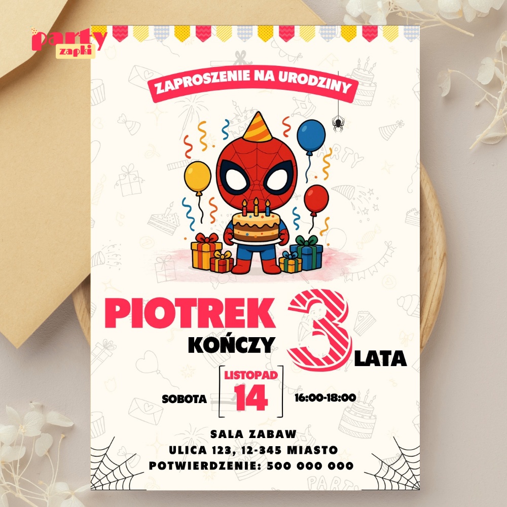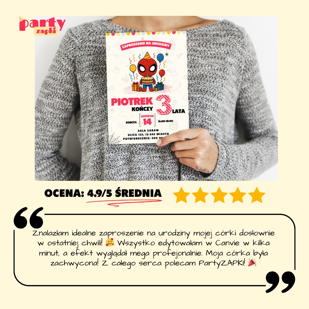 🛒 Zamów zaproszenie na urodziny do druku Spidey od PartyZAPKI już teraz i spraw, by Twoje dziecko poczuło się wyjątkowo na własnym przyjęciu.