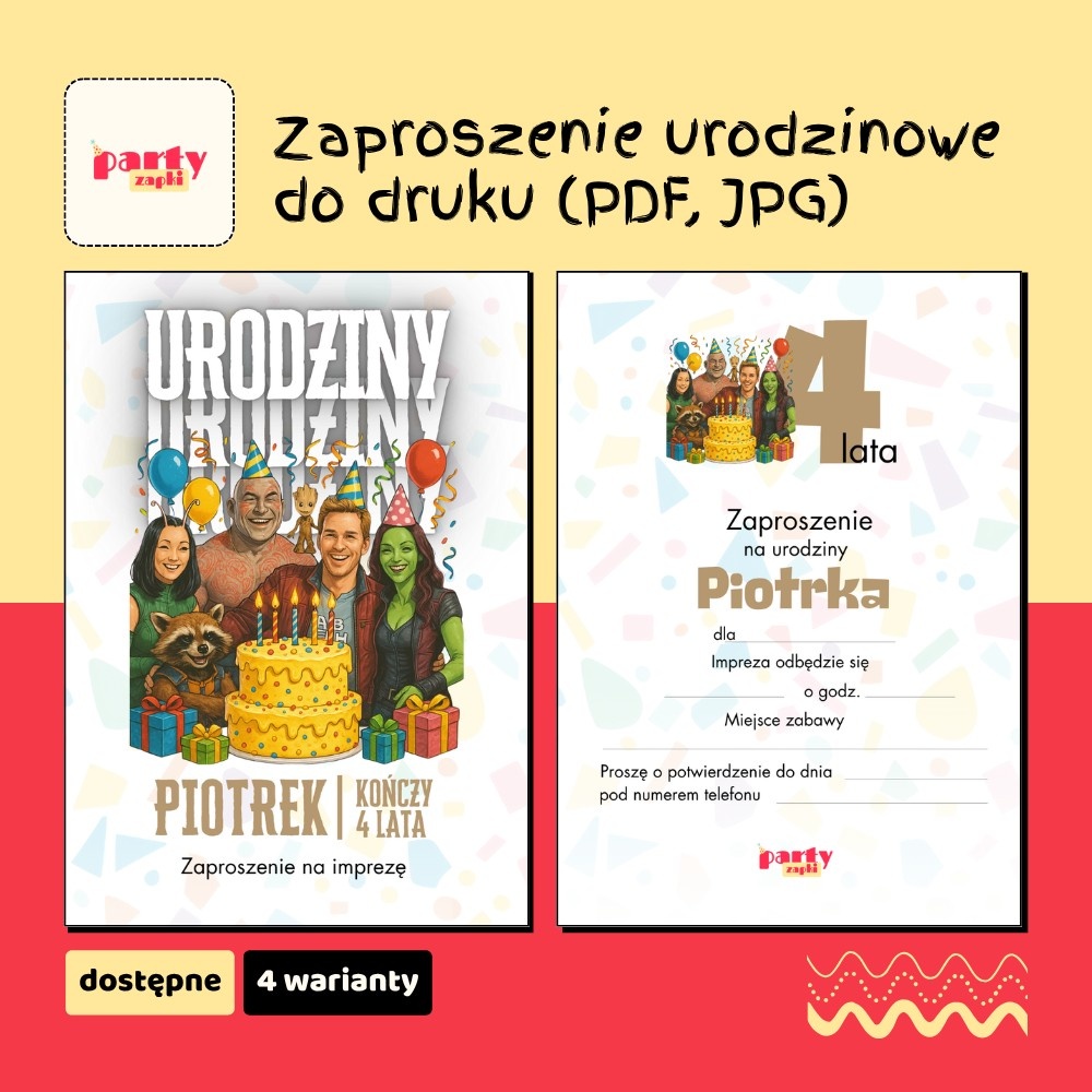 🛒 Zamów zaproszenie na urodziny do druku z Grootem od PartyZAPKI już teraz i spraw, by Twoje dziecko poczuło się wyjątkowo na własnym przyjęciu.