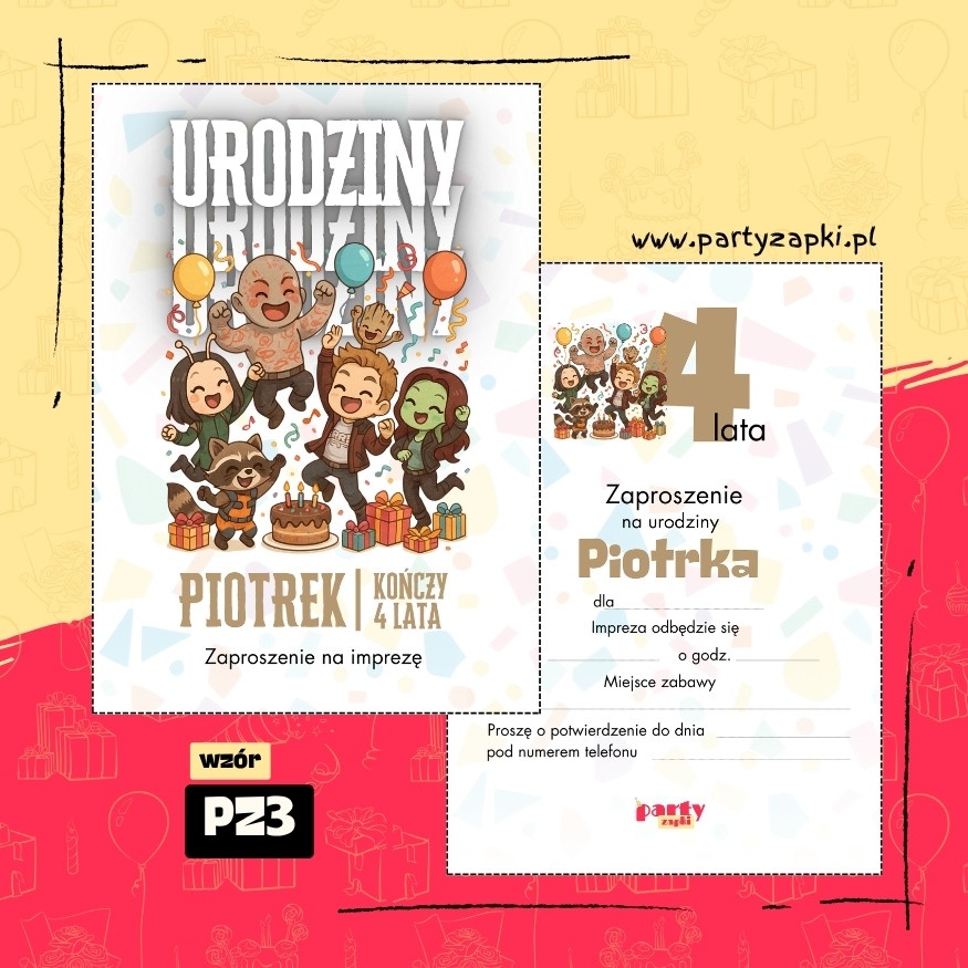 🛒 Zamów zaproszenie na urodziny do druku z Grootem od PartyZAPKI już teraz i spraw, by Twoje dziecko poczuło się wyjątkowo na własnym przyjęciu.