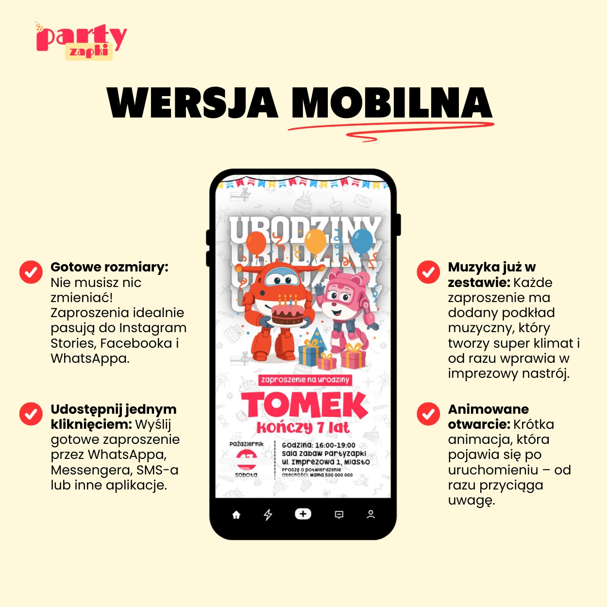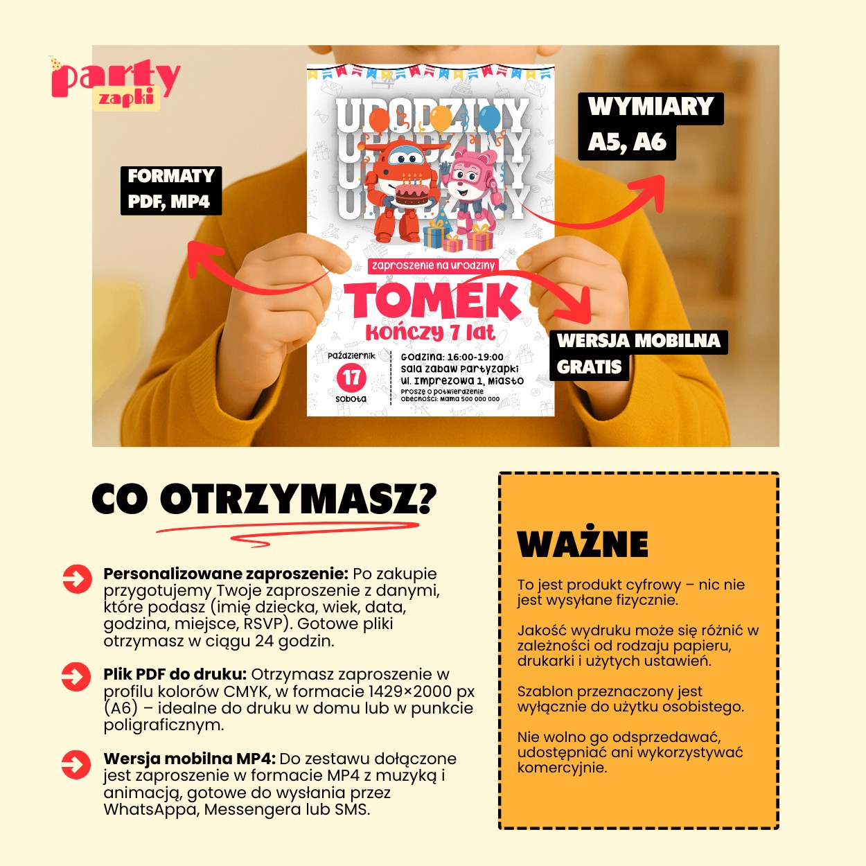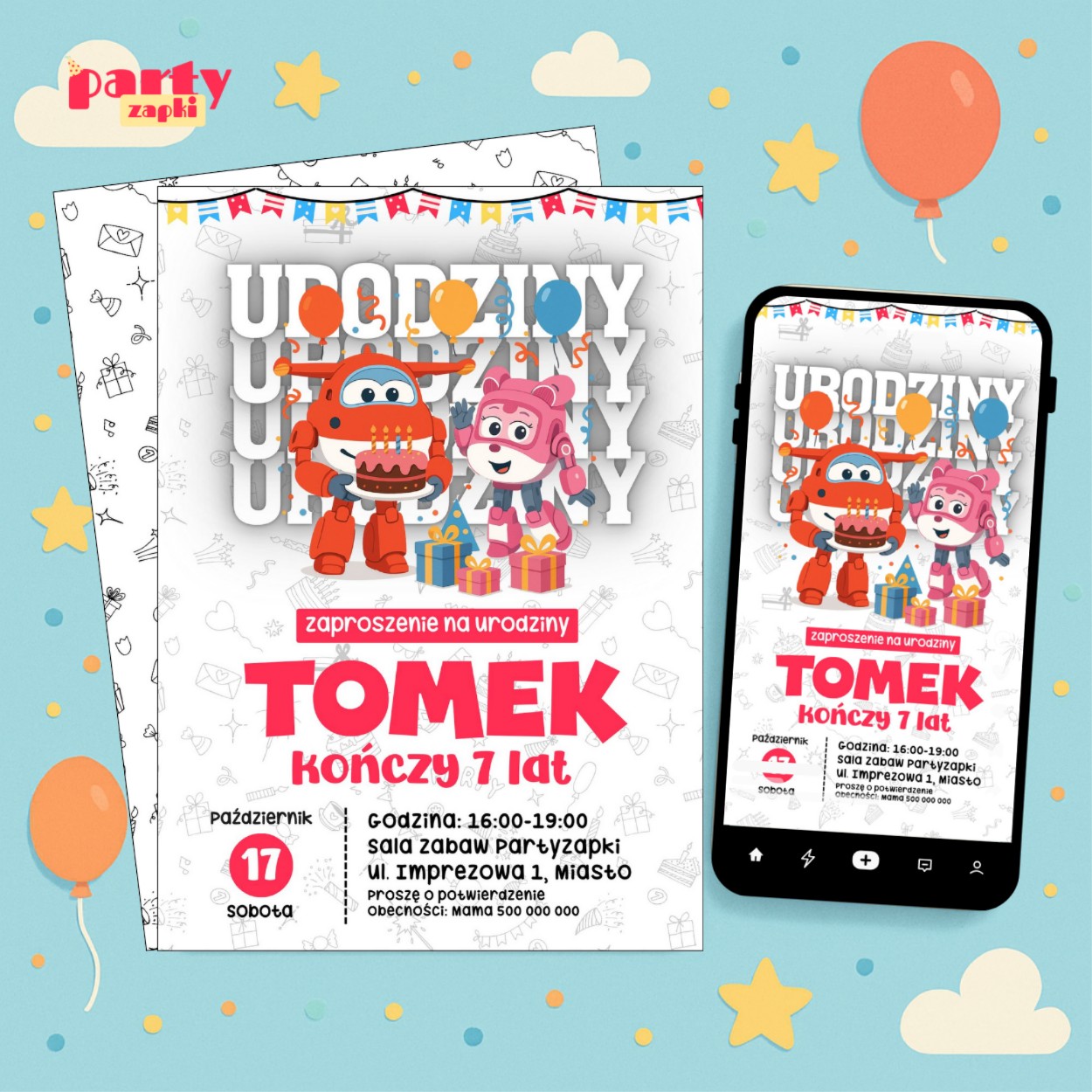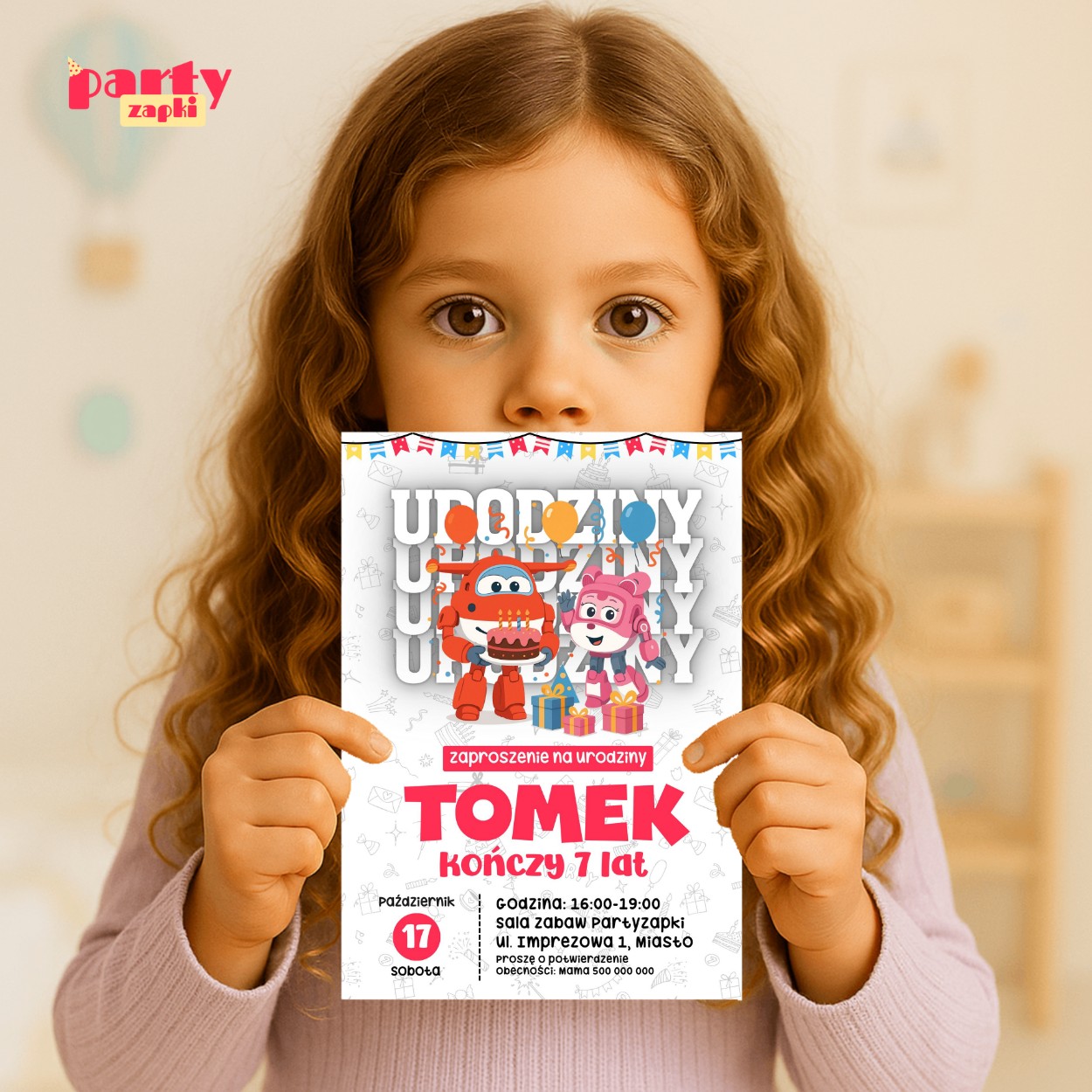 Wyjątkowe zaproszenie na urodziny z motywem Super Wings to fantastyczny początek wielkiej podniebnej przygody, która zachwyci wszystkich zaproszonych gości.