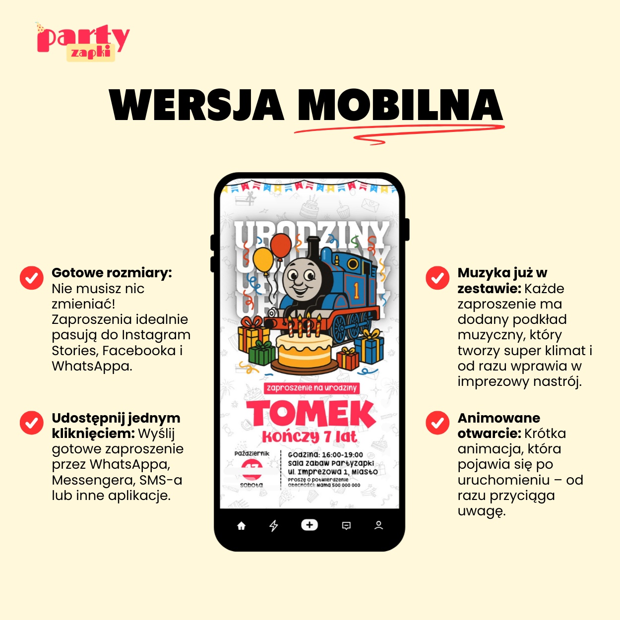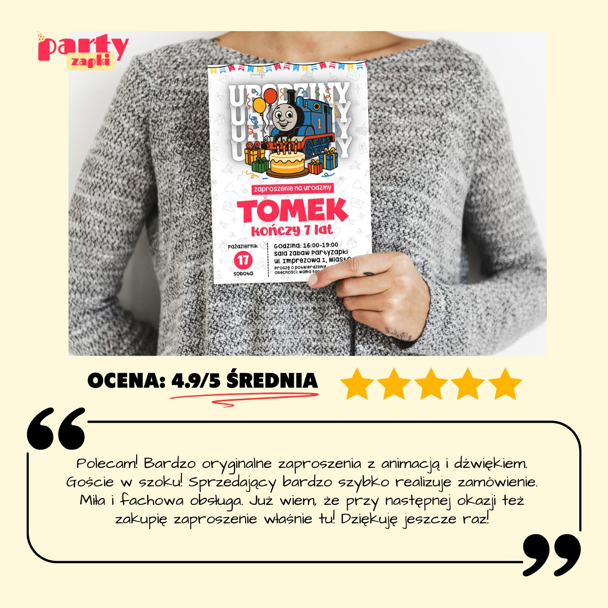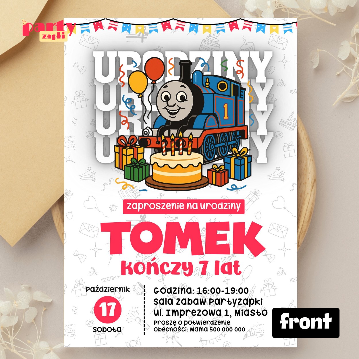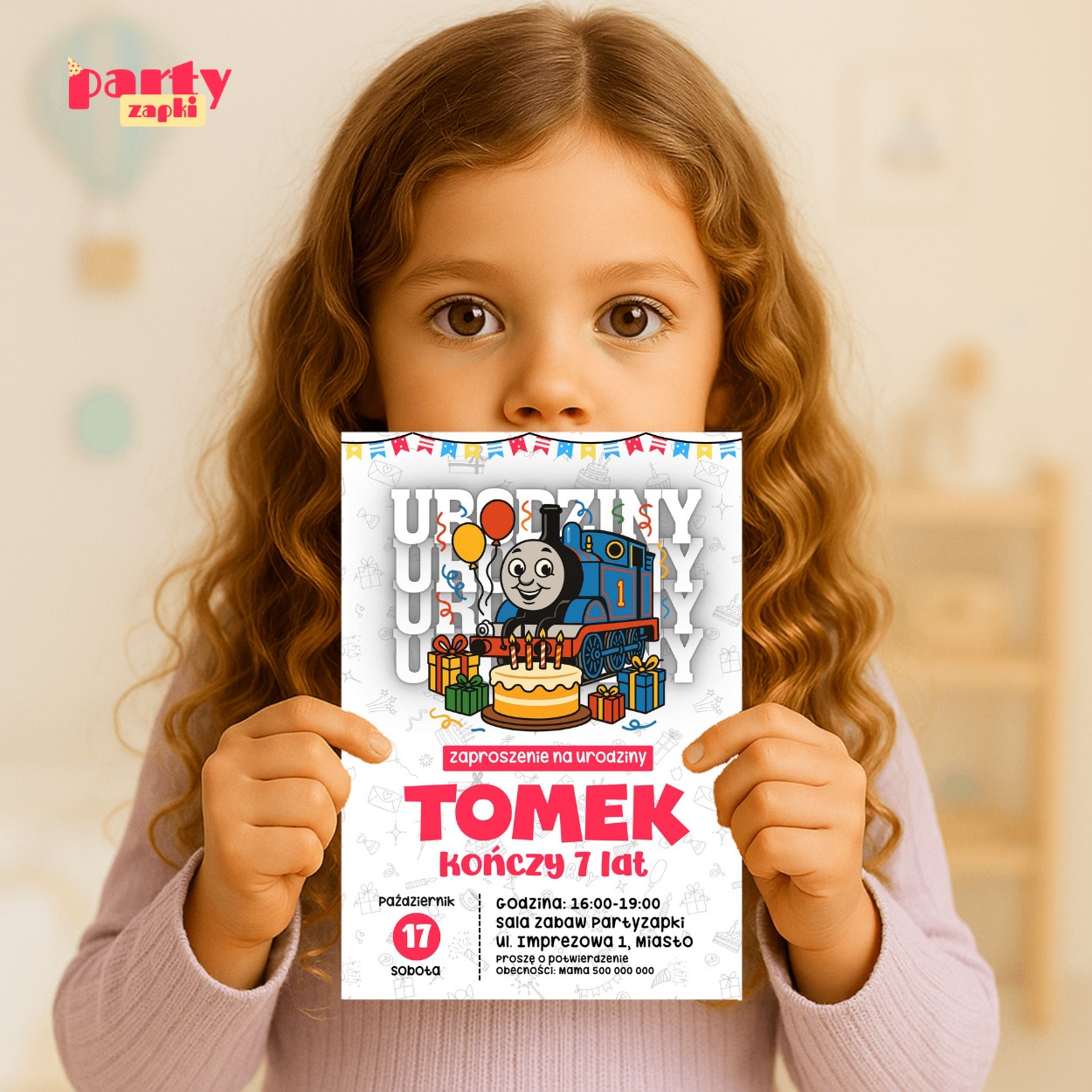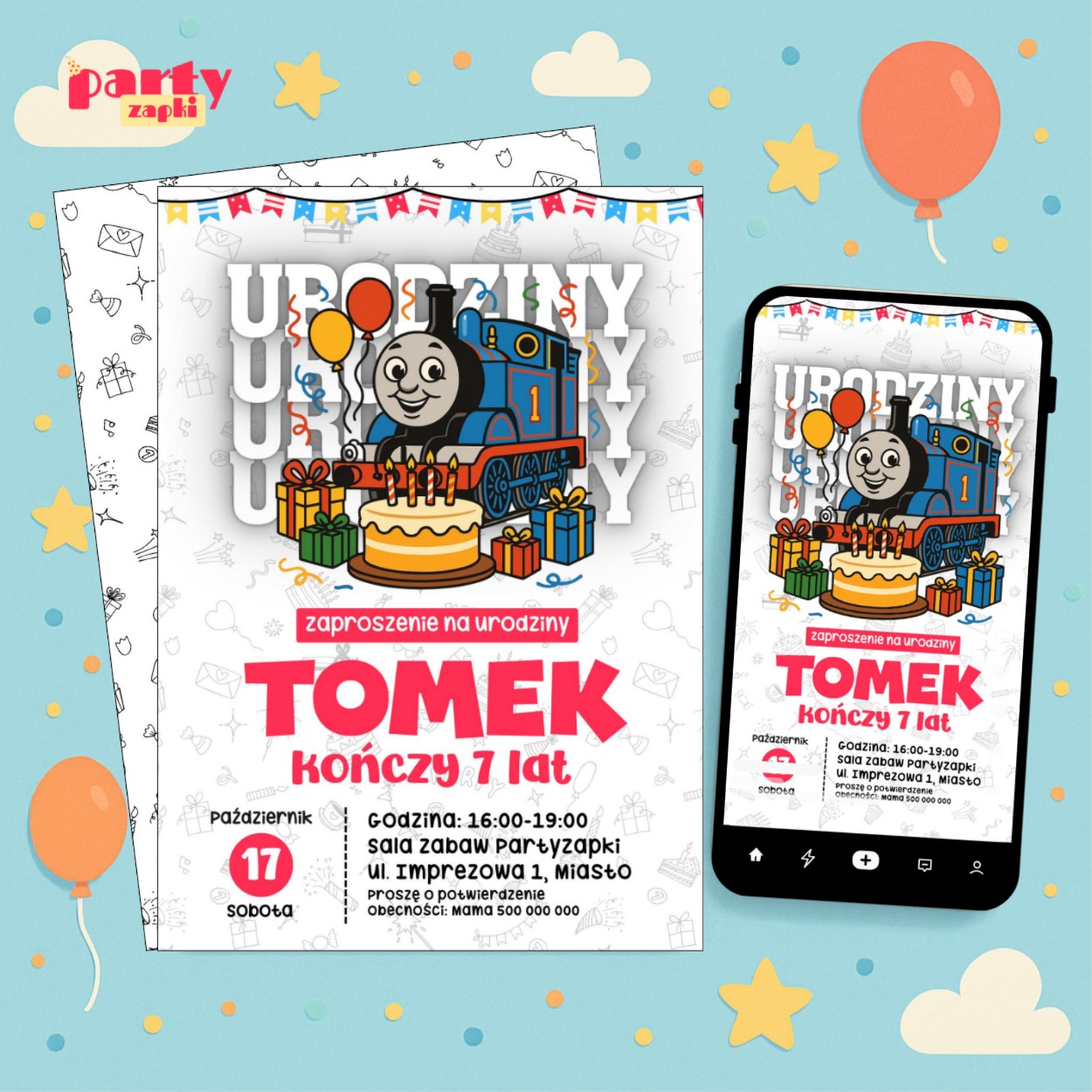 Wyjątkowe zaproszenie na urodziny z motywem Tomka i Przyjaciół to wspaniały sposób na powitanie gości w świecie radosnych lokomotyw i wielkich przygód.