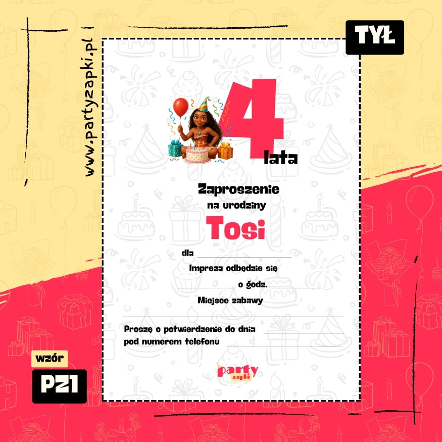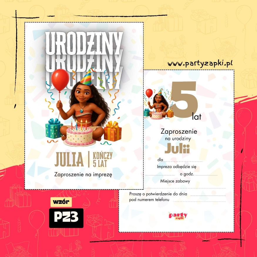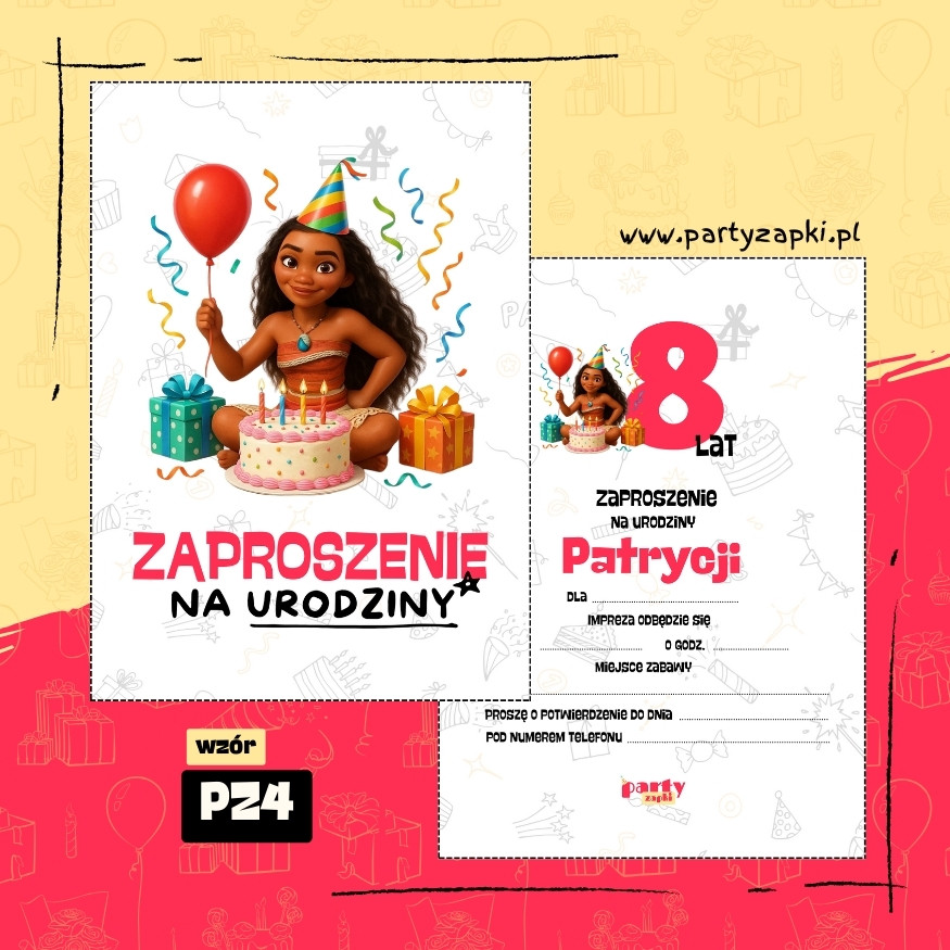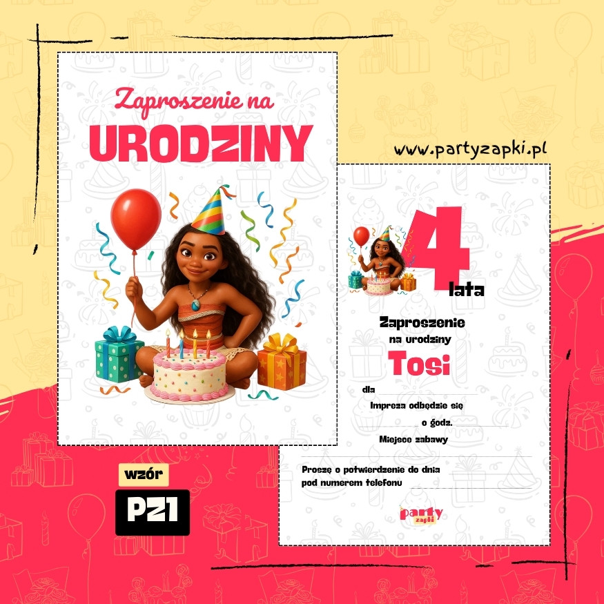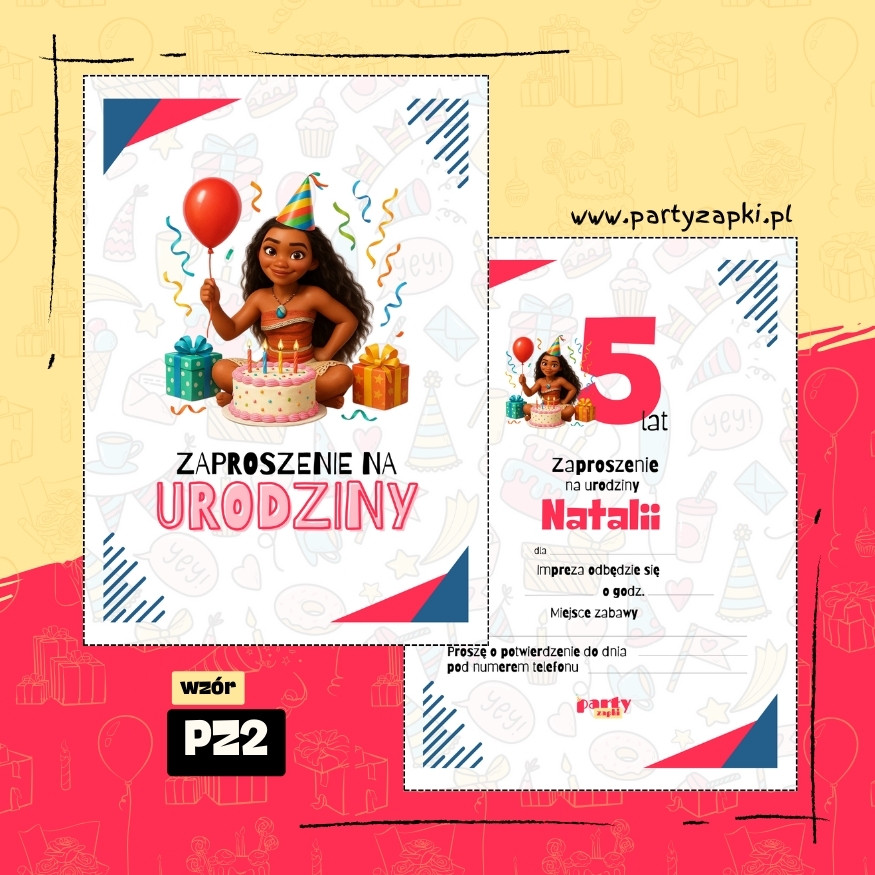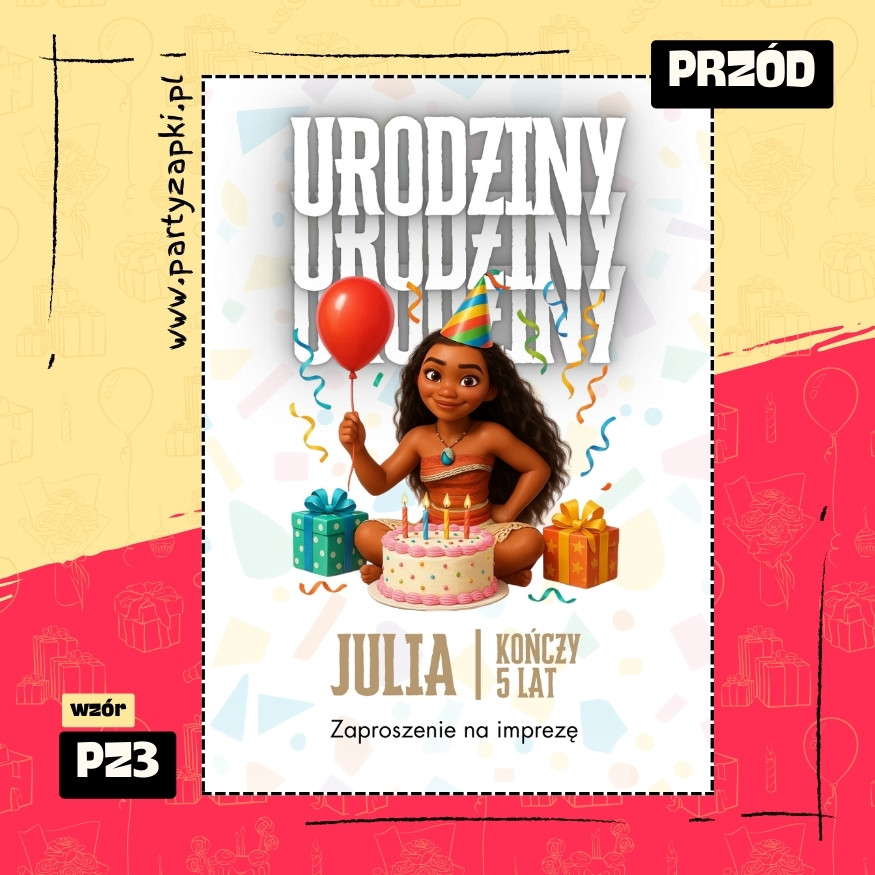 🛒 Zamów zaproszenie na urodziny do druku z Vaianą od PartyZAPKI już teraz i spraw, by Twoje dziecko poczuło się wyjątkowo na własnym przyjęciu.