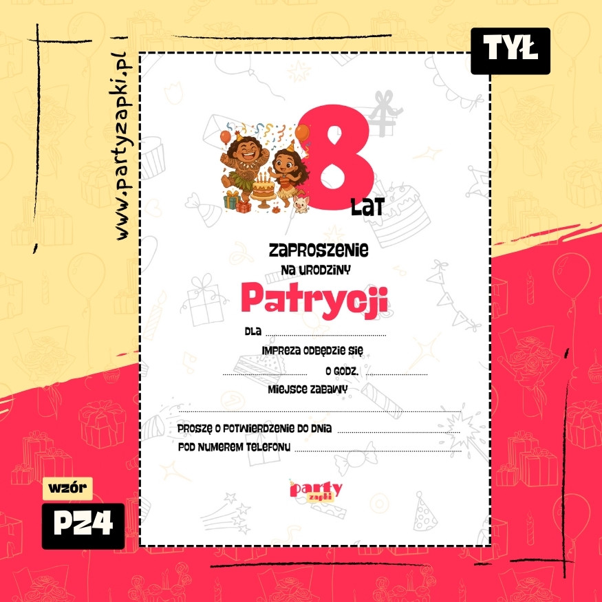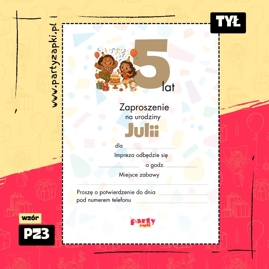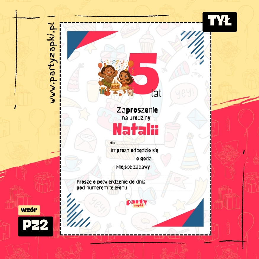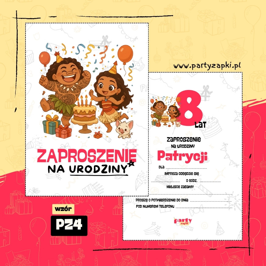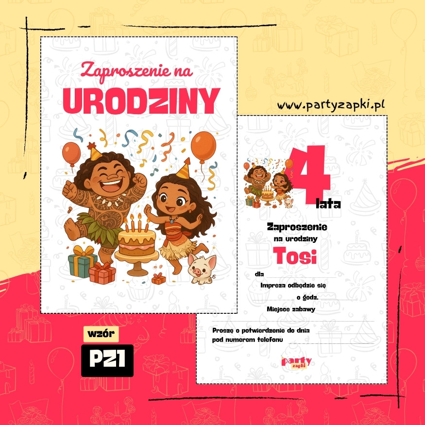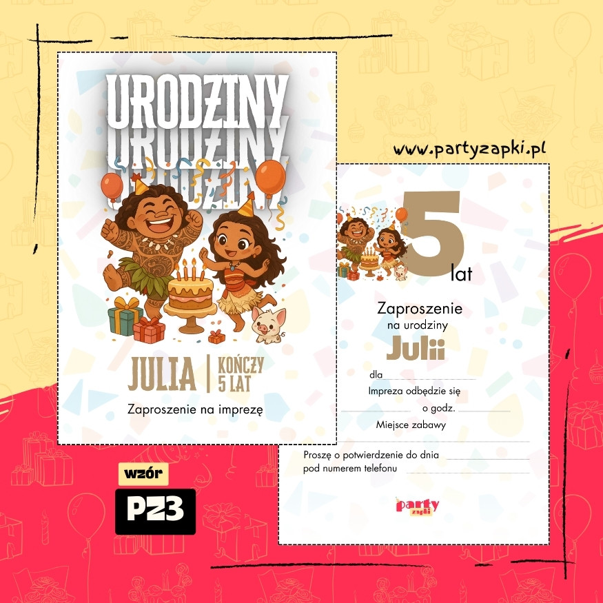 🛒 Zamów zaproszenie na urodziny do druku z Vaianą od PartyZAPKI już teraz i spraw, by Twoje dziecko poczuło się wyjątkowo na własnym przyjęciu.