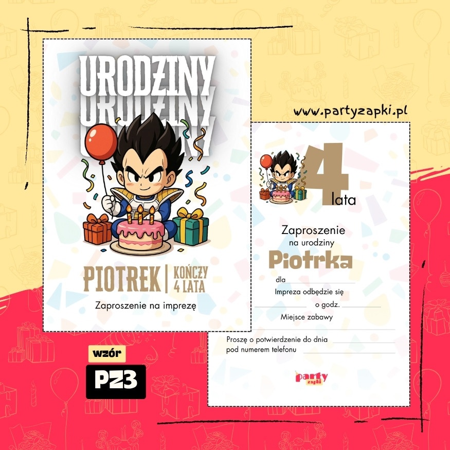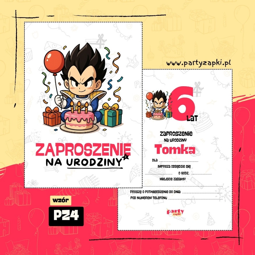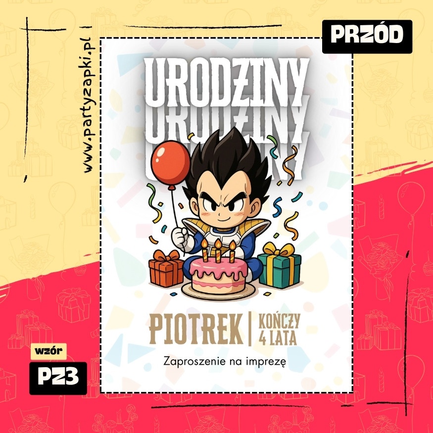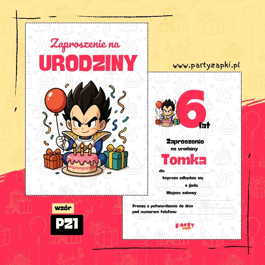 🛒 Zamów zaproszenie na urodziny do druku z Vegetą od PartyZAPKI już teraz i spraw, by Twoje dziecko poczuło się wyjątkowo na własnym przyjęciu.