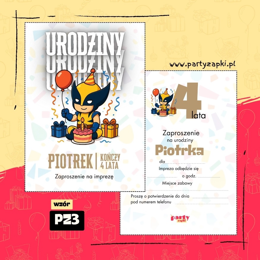🛒 Zamów zaproszenie na urodziny do druku z Wolverinem od PartyZAPKI już teraz i spraw, by Twoje dziecko poczuło się wyjątkowo na własnym przyjęciu.