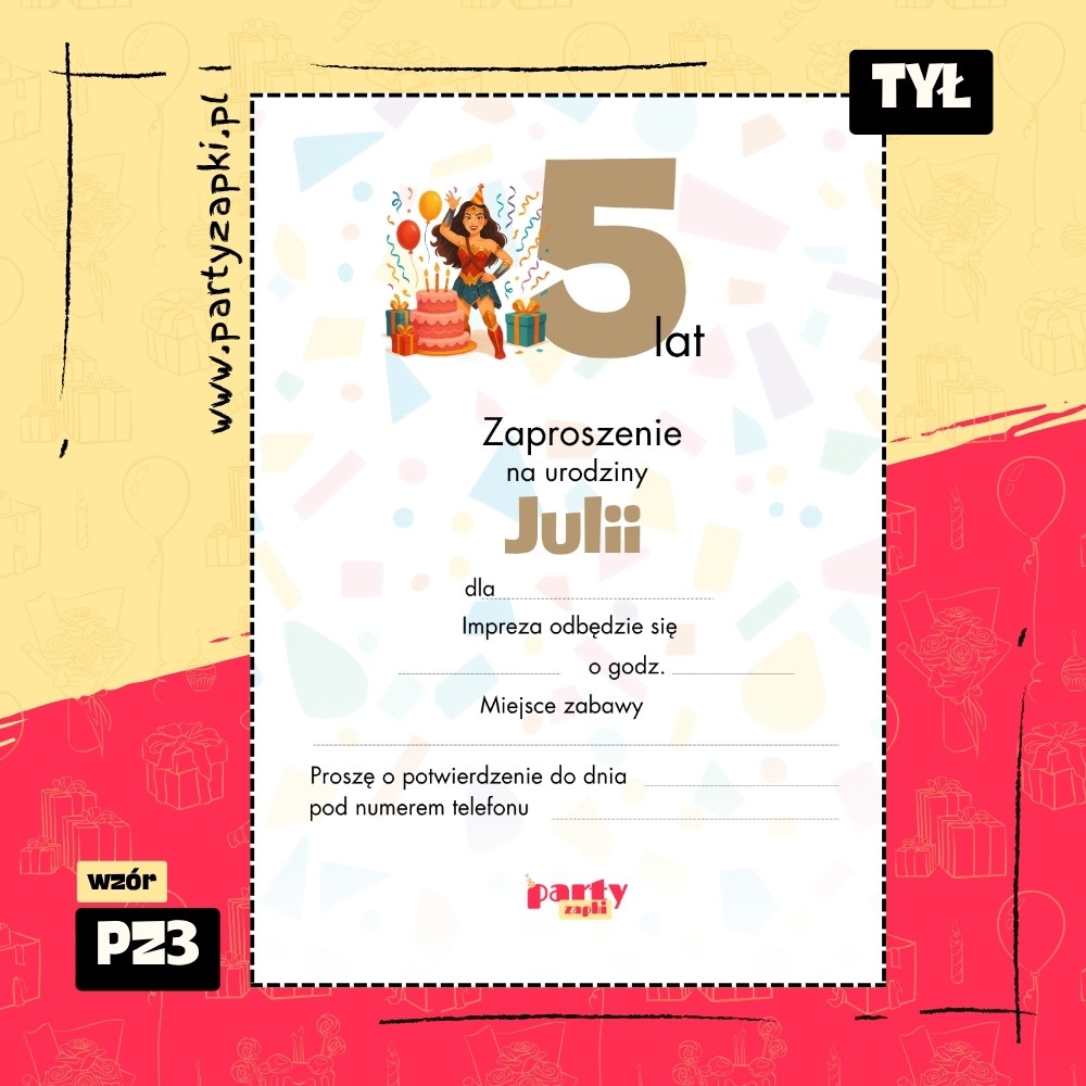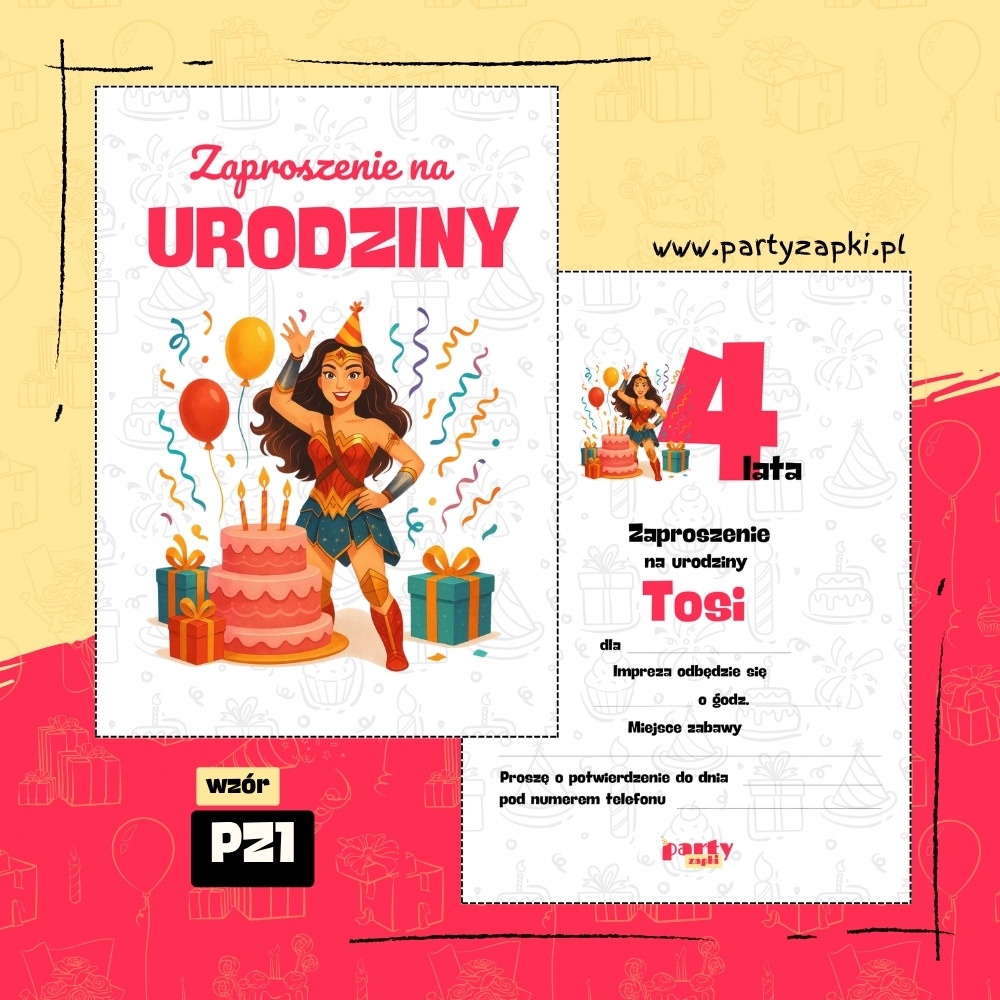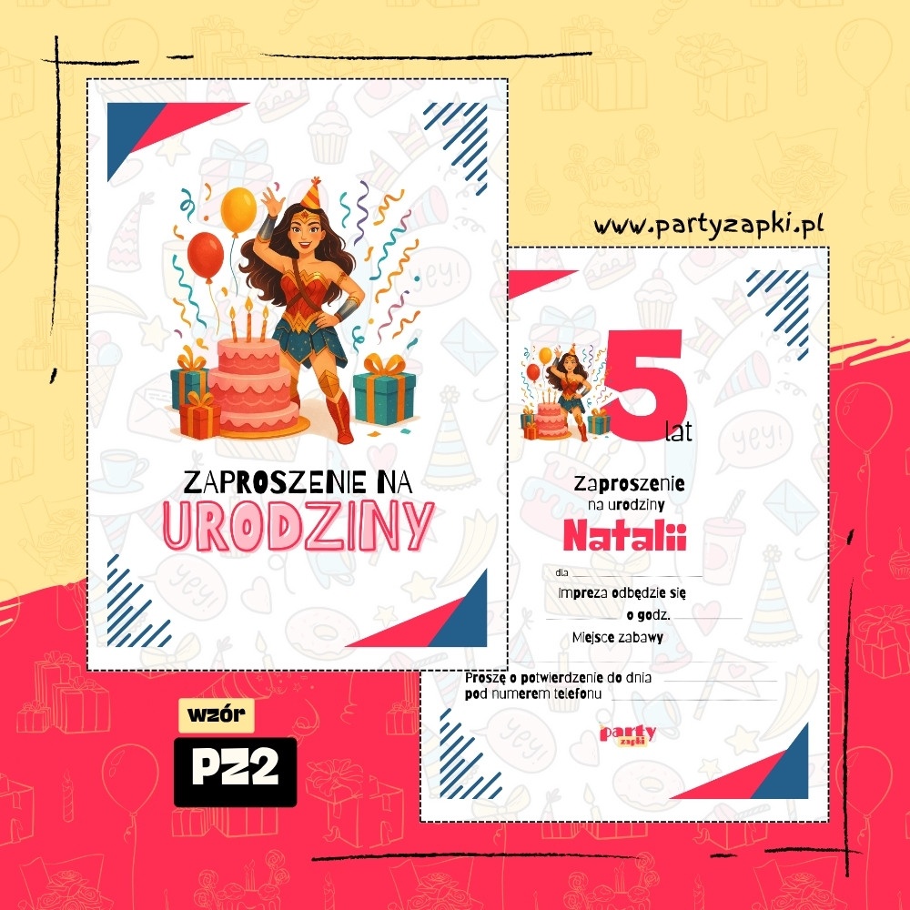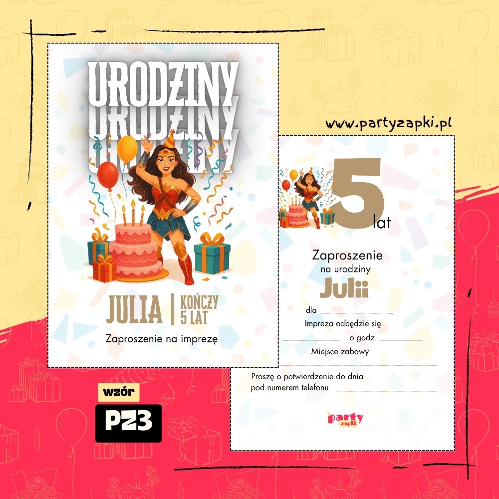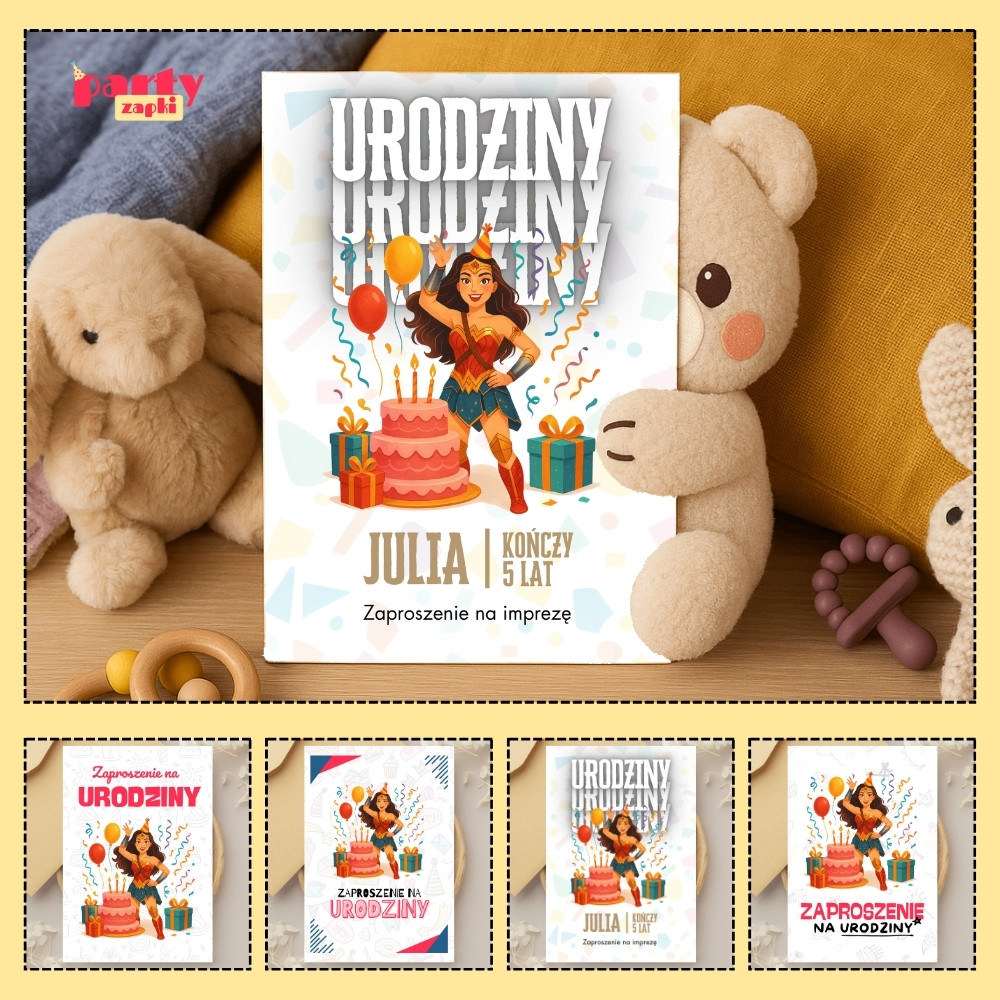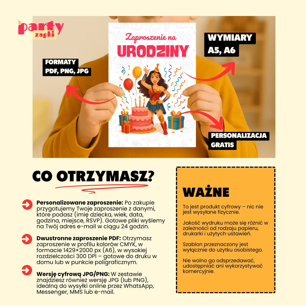 🛒 Zamów zaproszenie na urodziny do druku z Wonder Woman od PartyZAPKI już teraz i spraw, by Twoje dziecko poczuło się wyjątkowo na własnym przyjęciu.