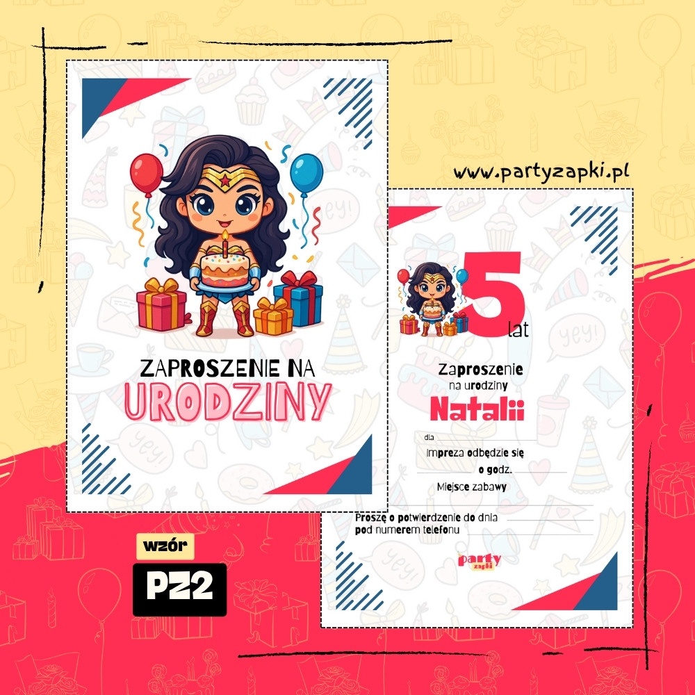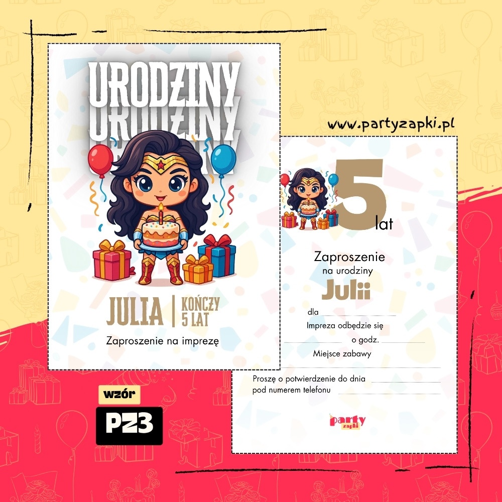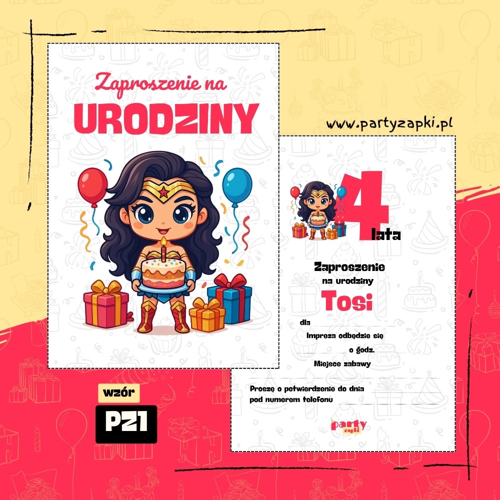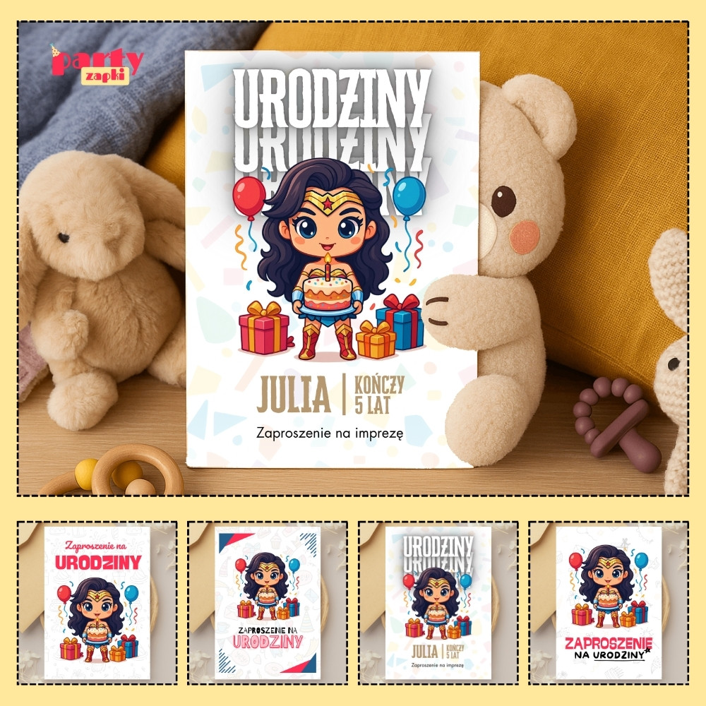 🛒 Zamów zaproszenie na urodziny do druku z Wonder Woman od PartyZAPKI już teraz i spraw, by Twoje dziecko poczuło się wyjątkowo na własnym przyjęciu.