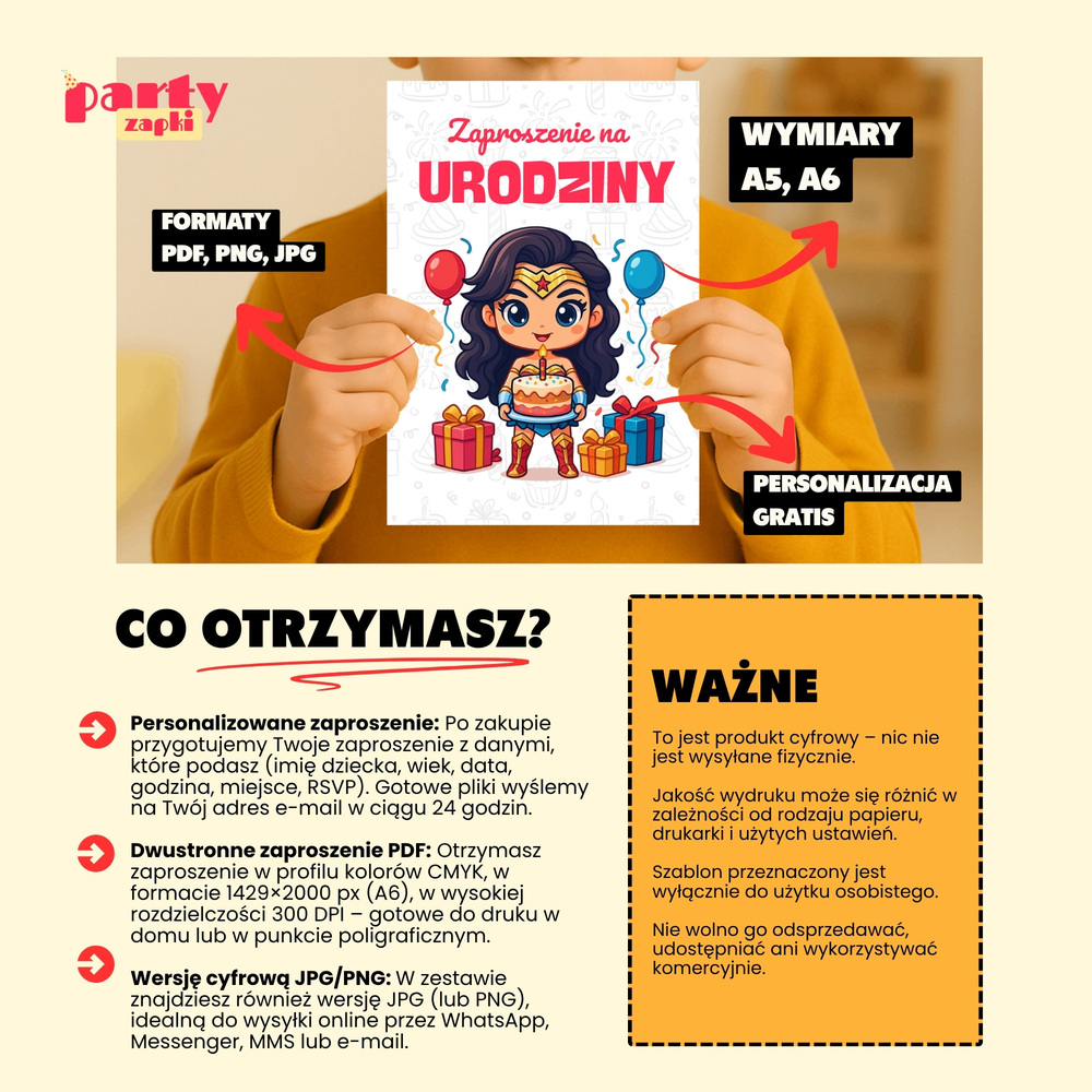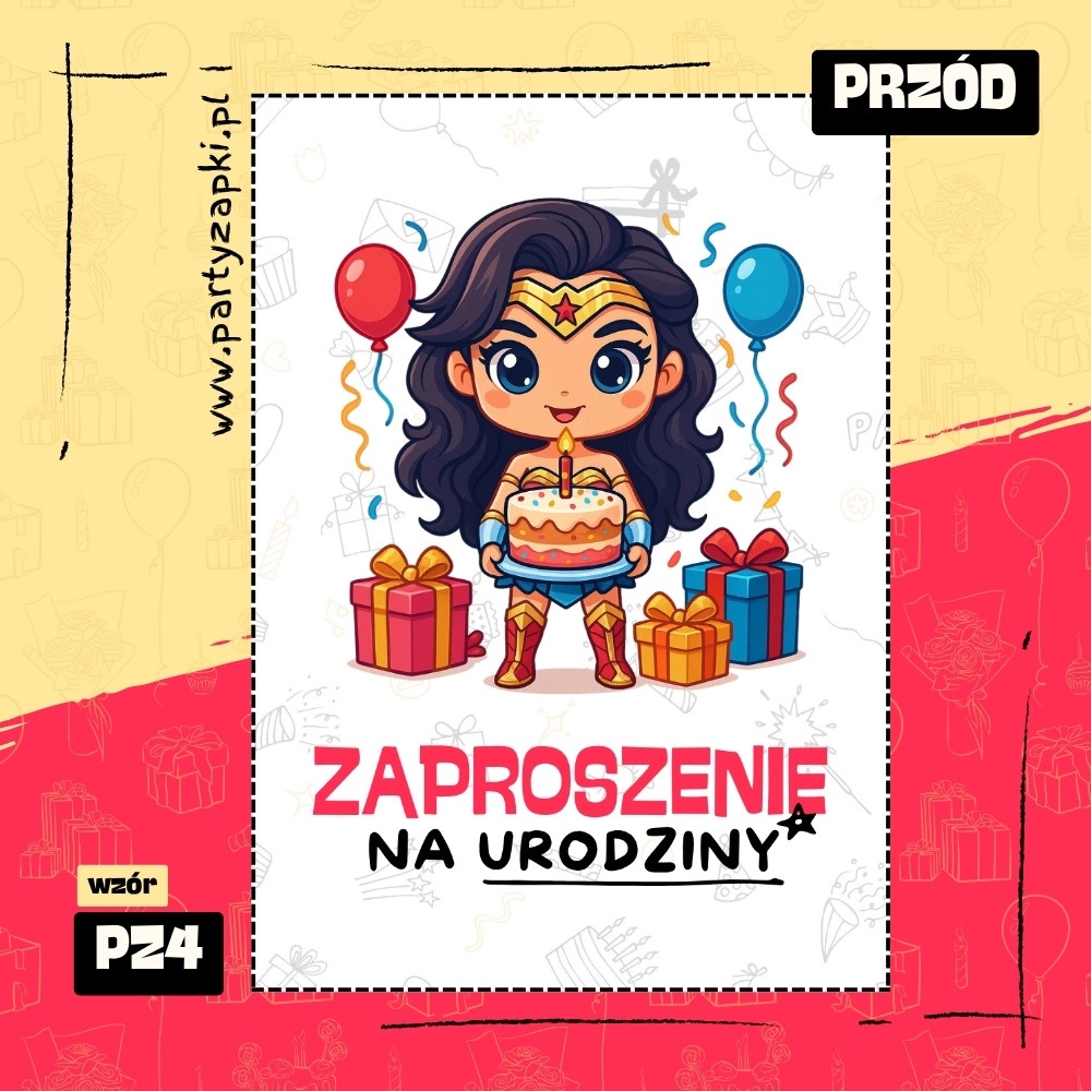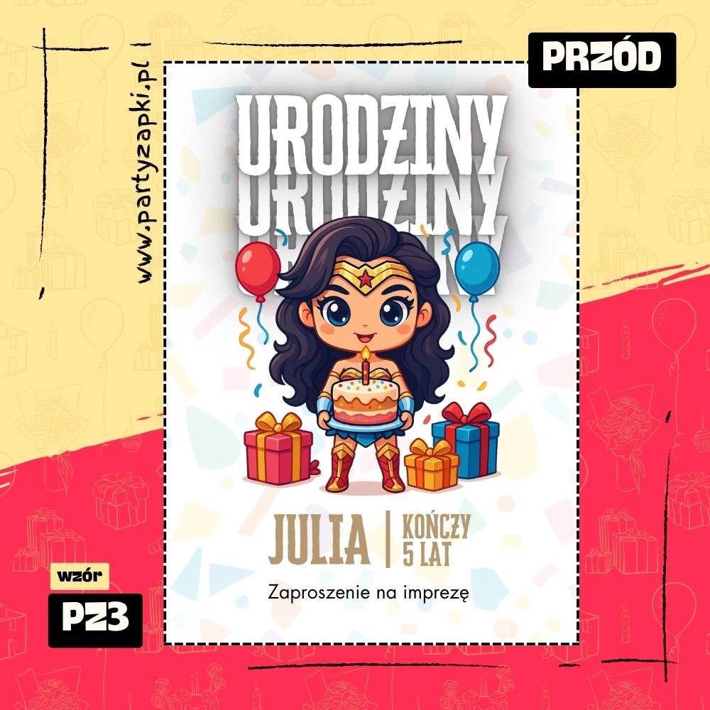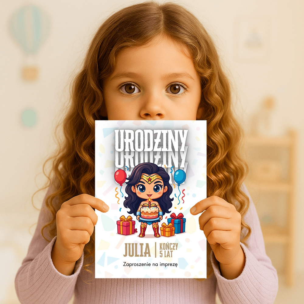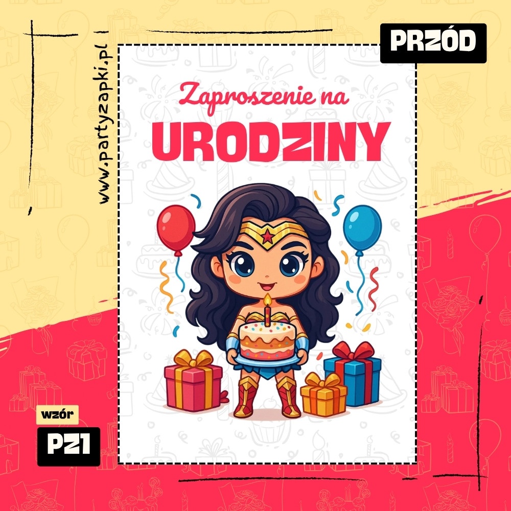 🛒 Zamów zaproszenie na urodziny do druku z Wonder Woman od PartyZAPKI już teraz i spraw, by Twoje dziecko poczuło się wyjątkowo na własnym przyjęciu.
