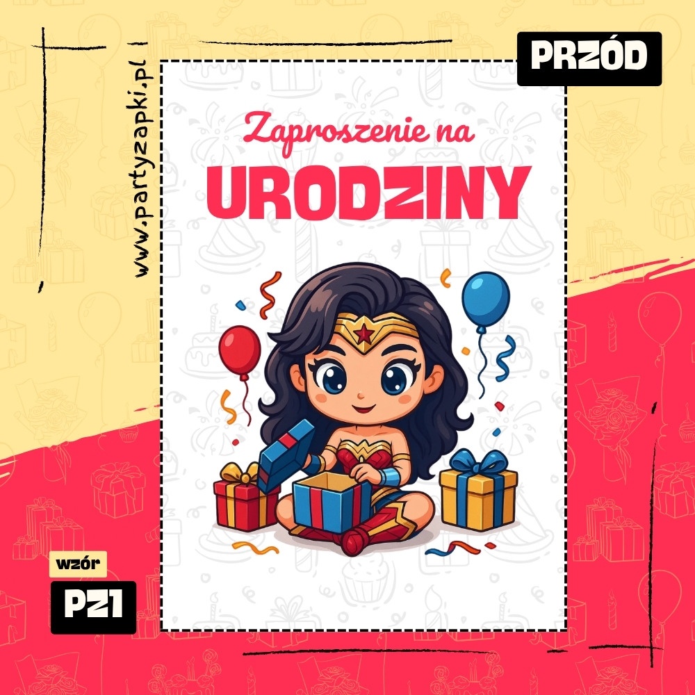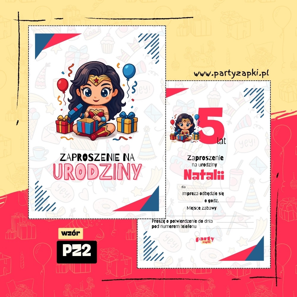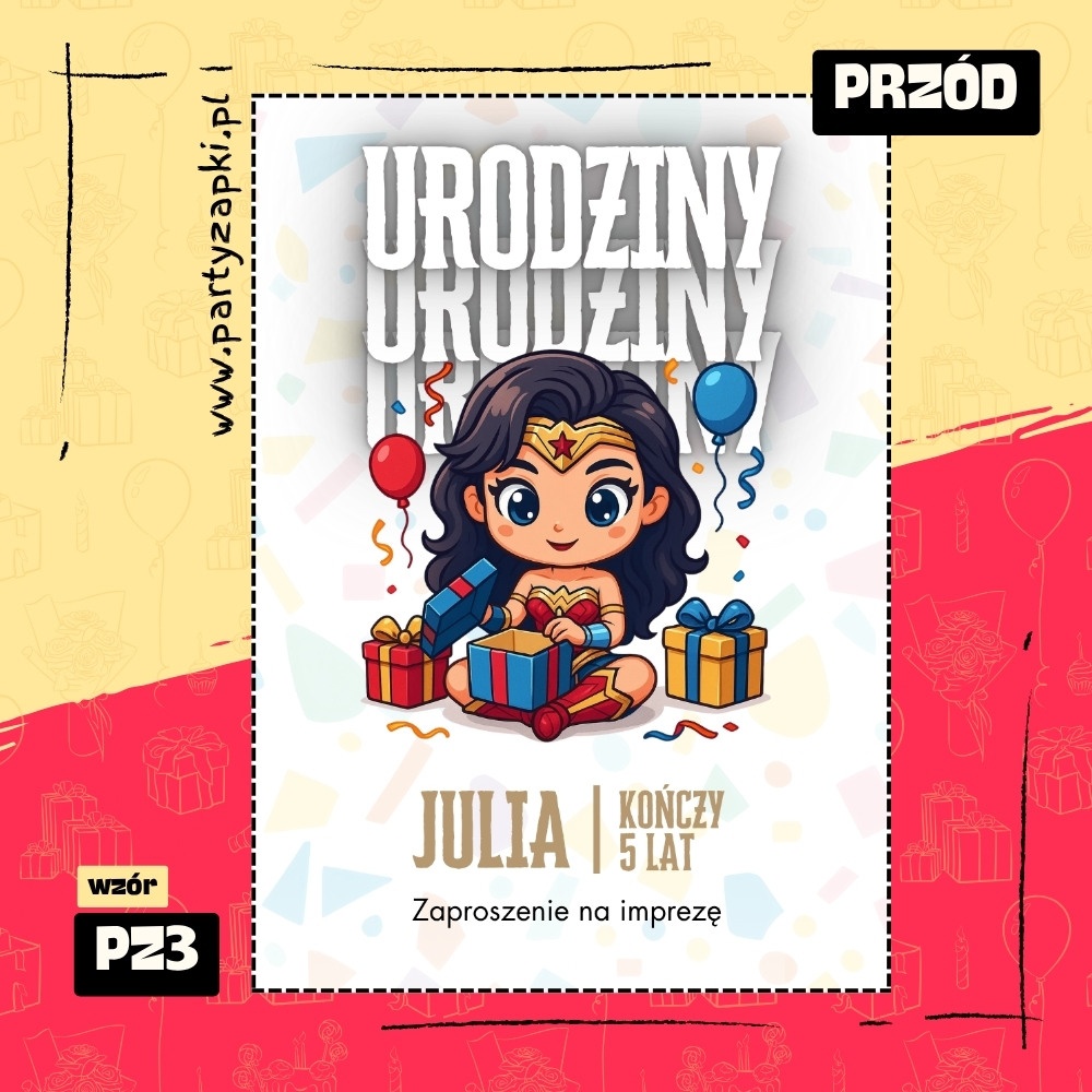 🛒 Zamów zaproszenie na urodziny do druku z Wonder Woman od PartyZAPKI już teraz i spraw, by Twoje dziecko poczuło się wyjątkowo na własnym przyjęciu.
