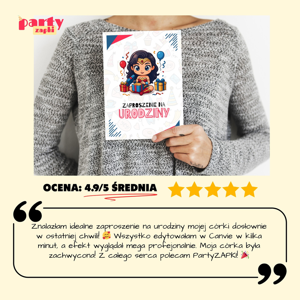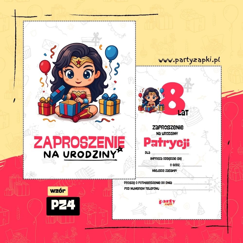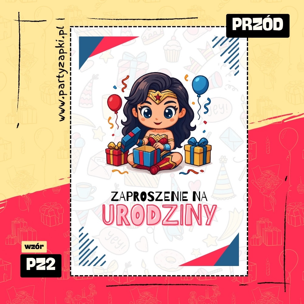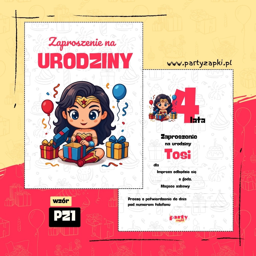 🛒 Zamów zaproszenie na urodziny do druku z Wonder Woman od PartyZAPKI już teraz i spraw, by Twoje dziecko poczuło się wyjątkowo na własnym przyjęciu.