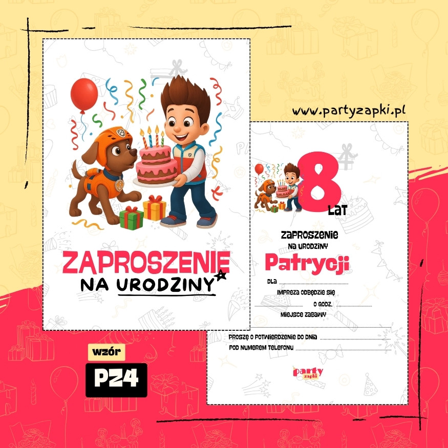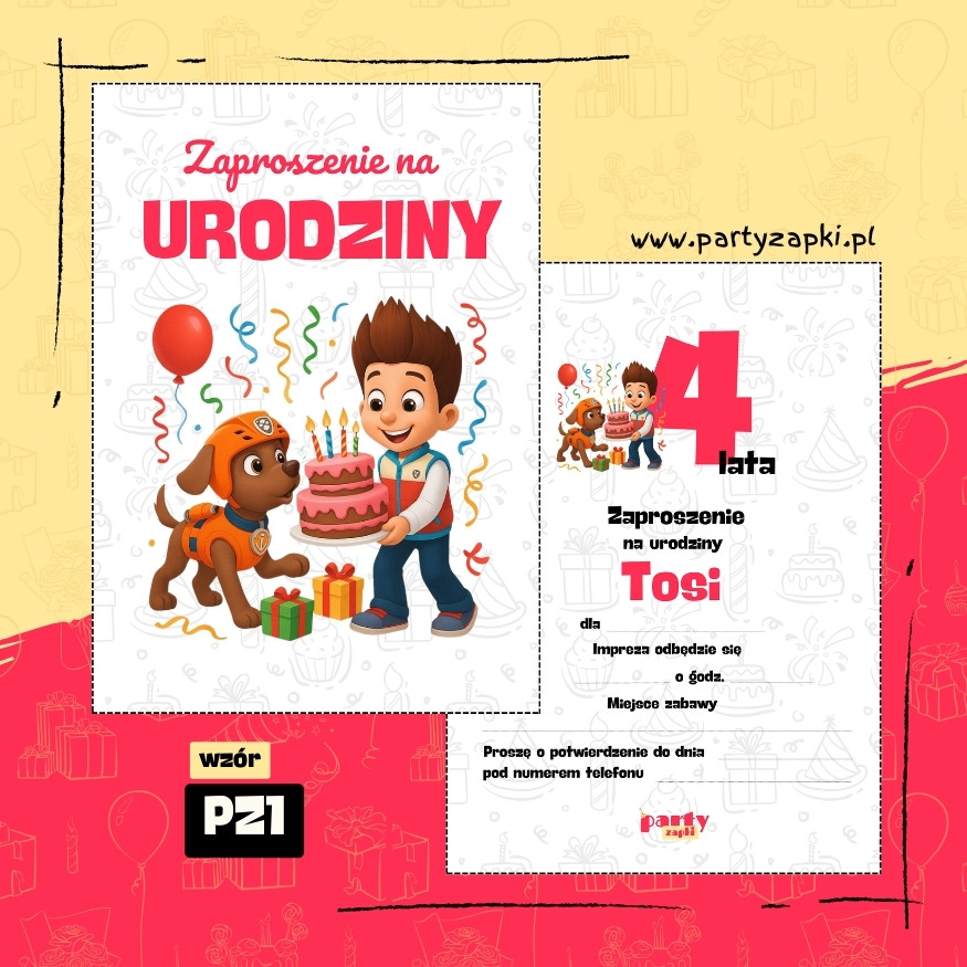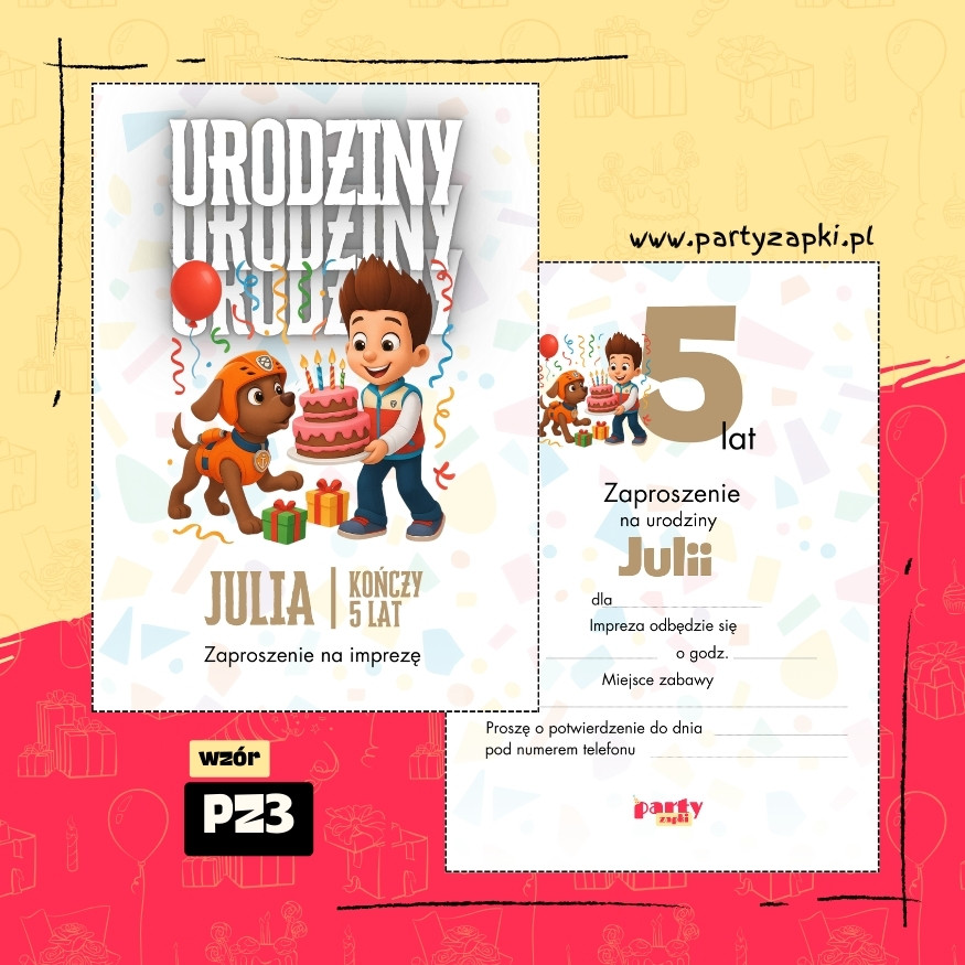🛒 Zamów zaproszenie na urodziny do druku z Zumą od PartyZAPKI już teraz i spraw, by Twoje dziecko poczuło się wyjątkowo na własnym przyjęciu.